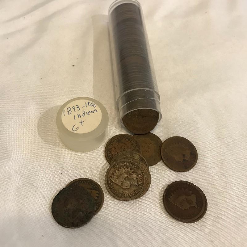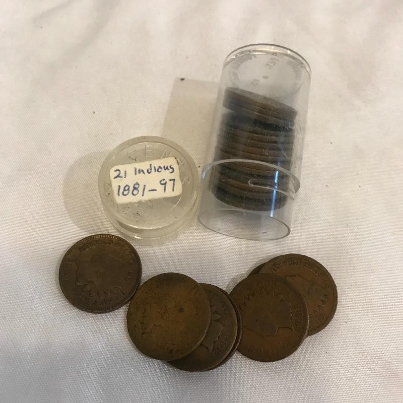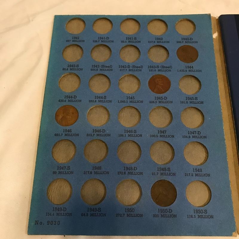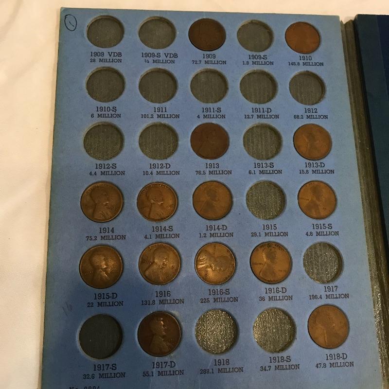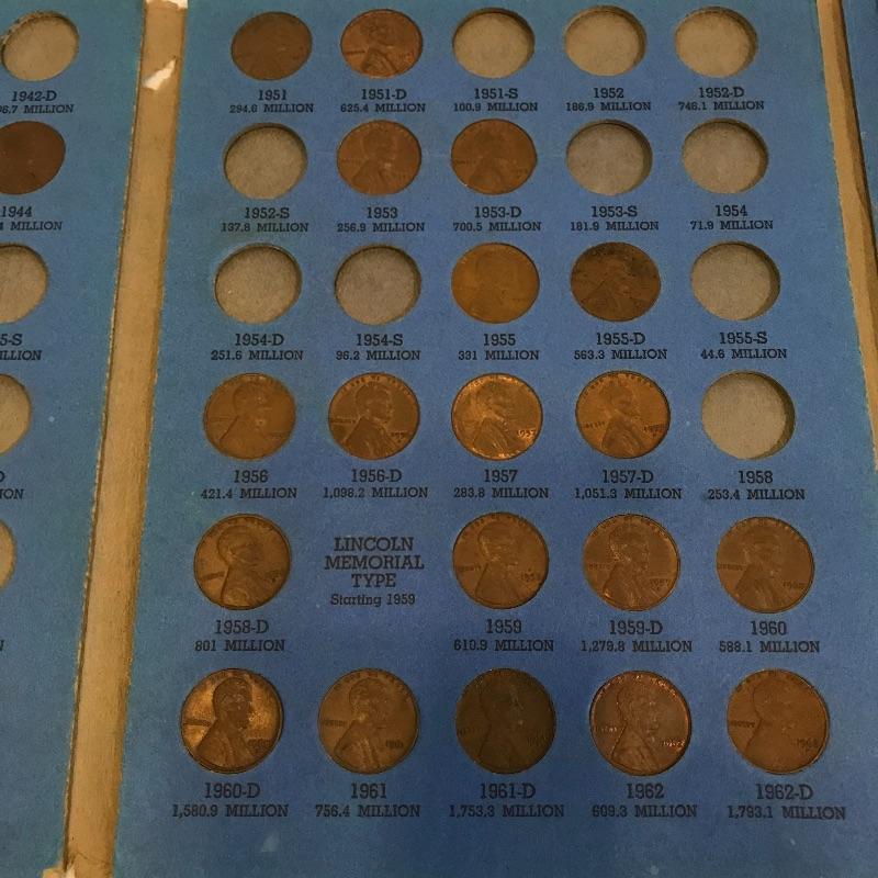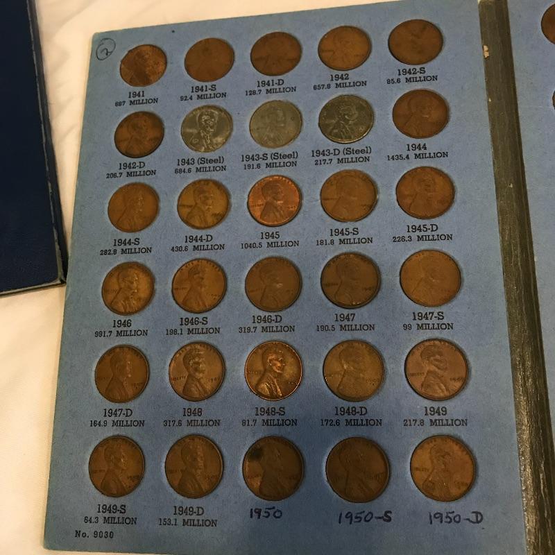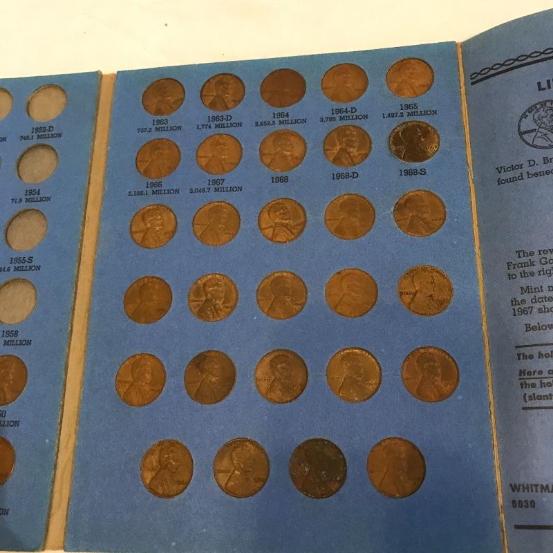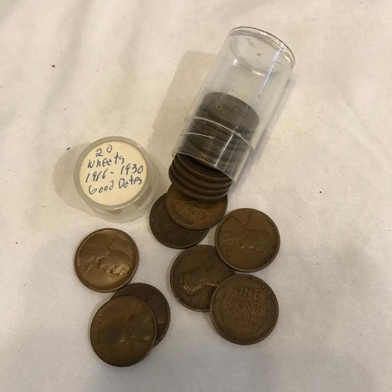 Here’s a large lot of pennies for your collection! Lot features three Whitman Blue Folders, tubes, two bags, and fifteen in sleeves. Of the fifteen, eleven are from the last half of the 1800s, two are 1909 Lincolns and two more Indian Heads from the start of that century. The tubes are partial to mostly full with wheat, Indian head, zinc and Lincoln 1960 pennies. Tubes are labeled, but we did not verify each penny as correctly organized. See photos for more details and make an appointment for the preview to see all in person. Shipping available. * Please note, there are no refunds or returns for items purchased at auction. Please be sure to review carefully prior to bidding. We can not verify or authenticate these coins.