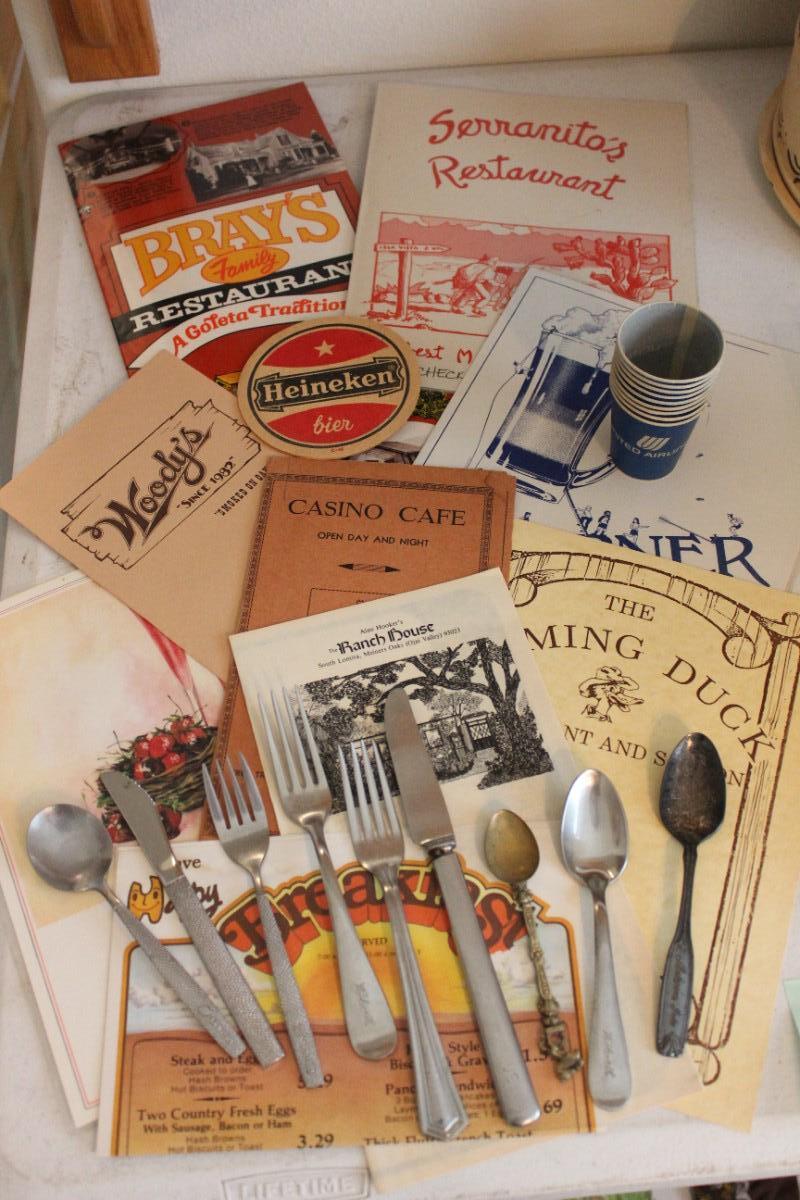 Lot 68 Collectible Vintage Menus & Flatware from Restaurants