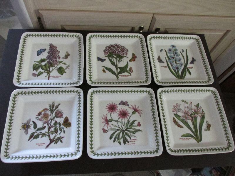 Set of 6 different Portmeirion Botanical Garden Square Plates. Plates measure roughly 8.5" x 8.5". No chips or cracks. In beautiful condition, used only for display never for food use.