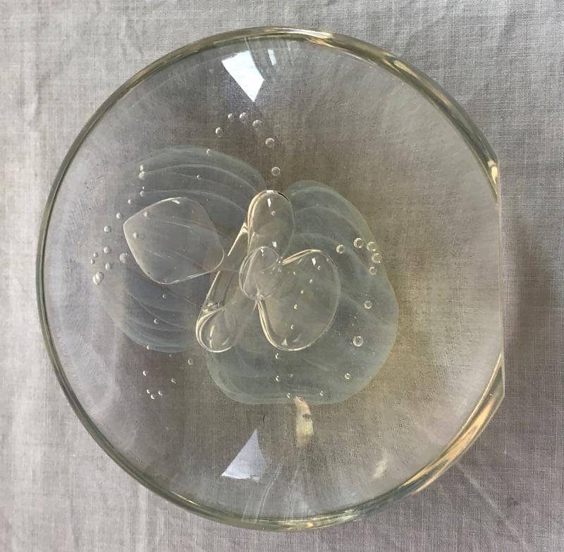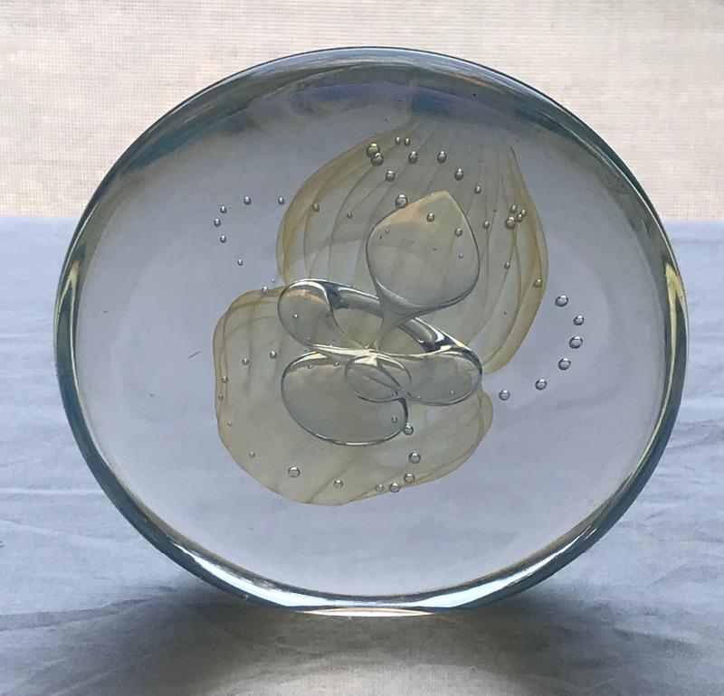 Eickholt signed 3 lb. Glass Jellyfish paperweight. Can be used standing up or laying down. Measures 5-1/2” in diameter. No chips or cracks and very minimal scratching.