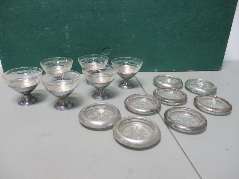 Lot 68 - Etched Glass Desert Bowls & Drink Coasters