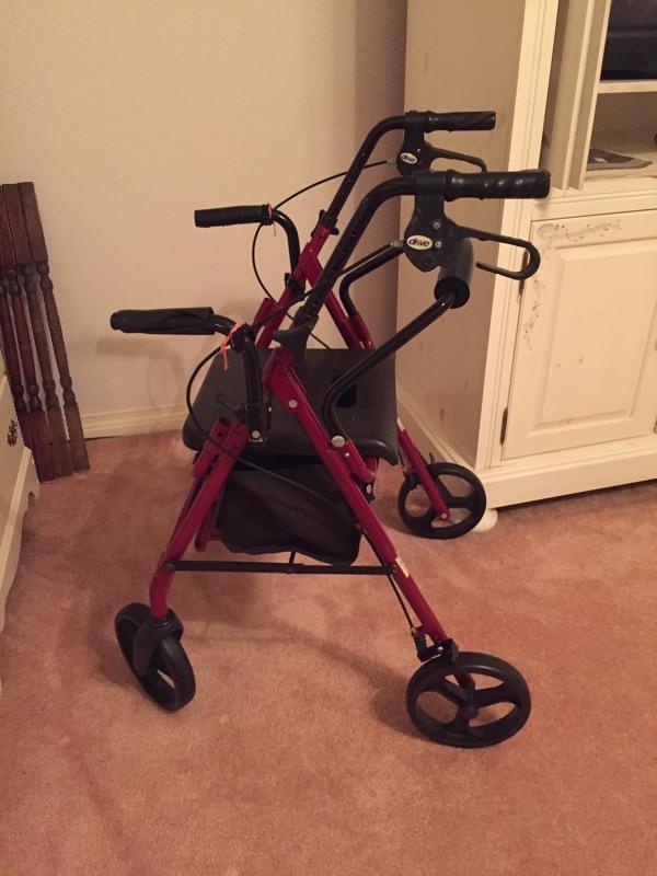 LOT #68. Four-wheel sitter/walker, w/independent rear brakes. 300 lb. max load. Manufactured by “drive”. Excellent condition.