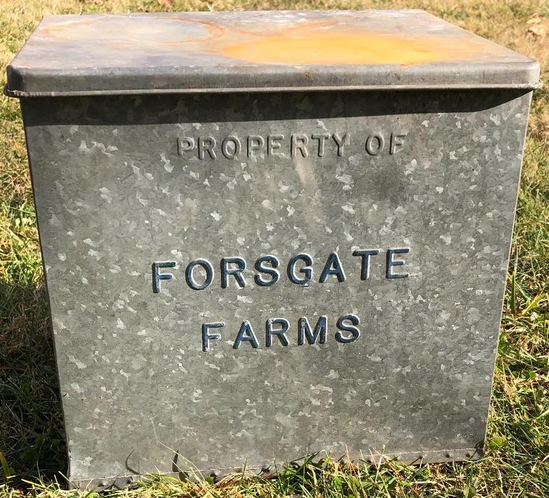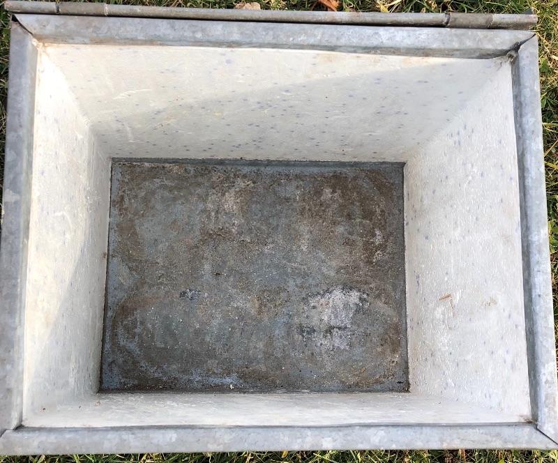 Vintage Forsgate Farms galvanized porch box. 13” L x 10” W x 11” H. Please see all pictures for content of the lot, condition of the lot, and measurements if taken. Pictures are the best representation of the items listed and items are untested unless indicated in description. Thank you for looking and have fun bidding!