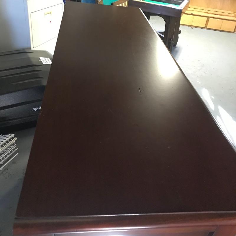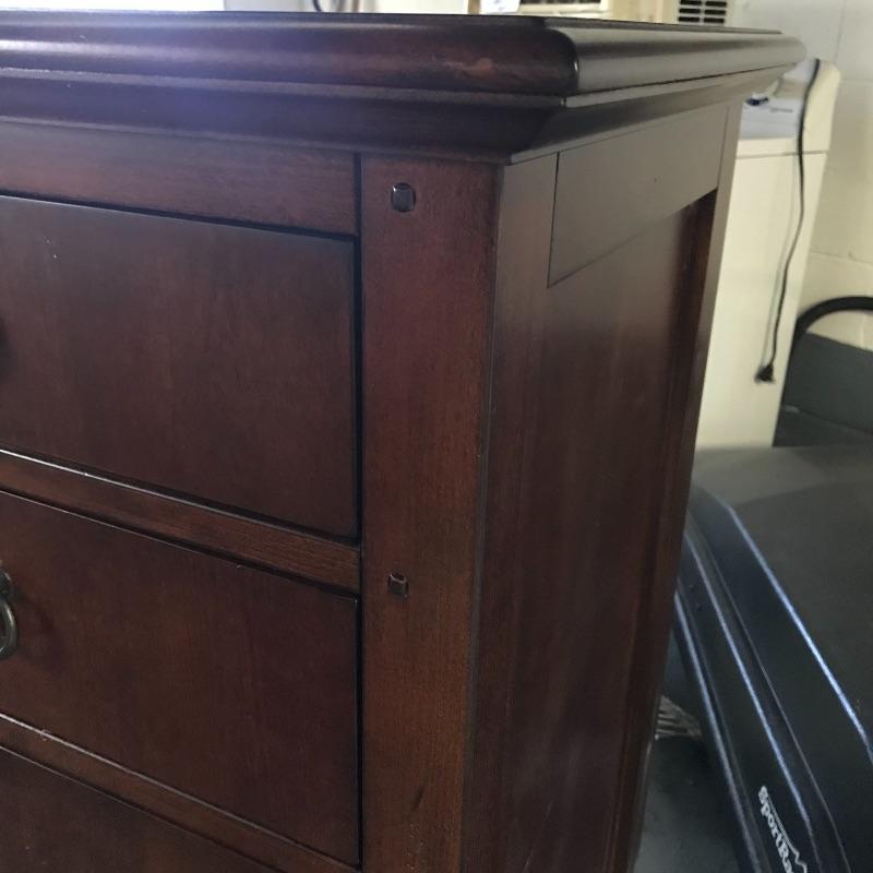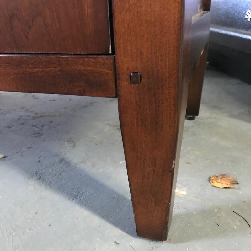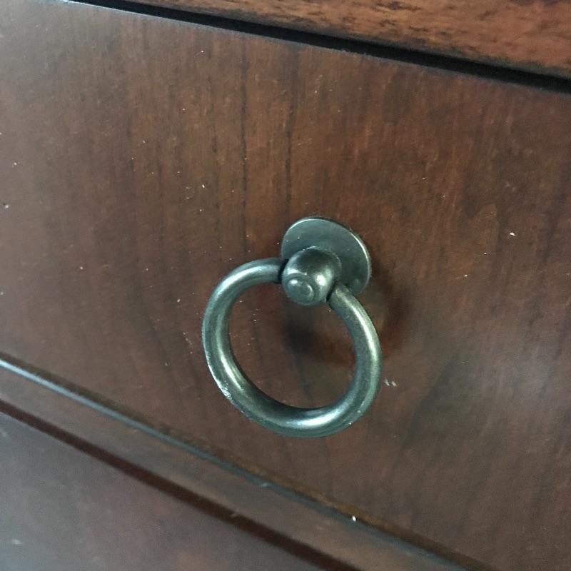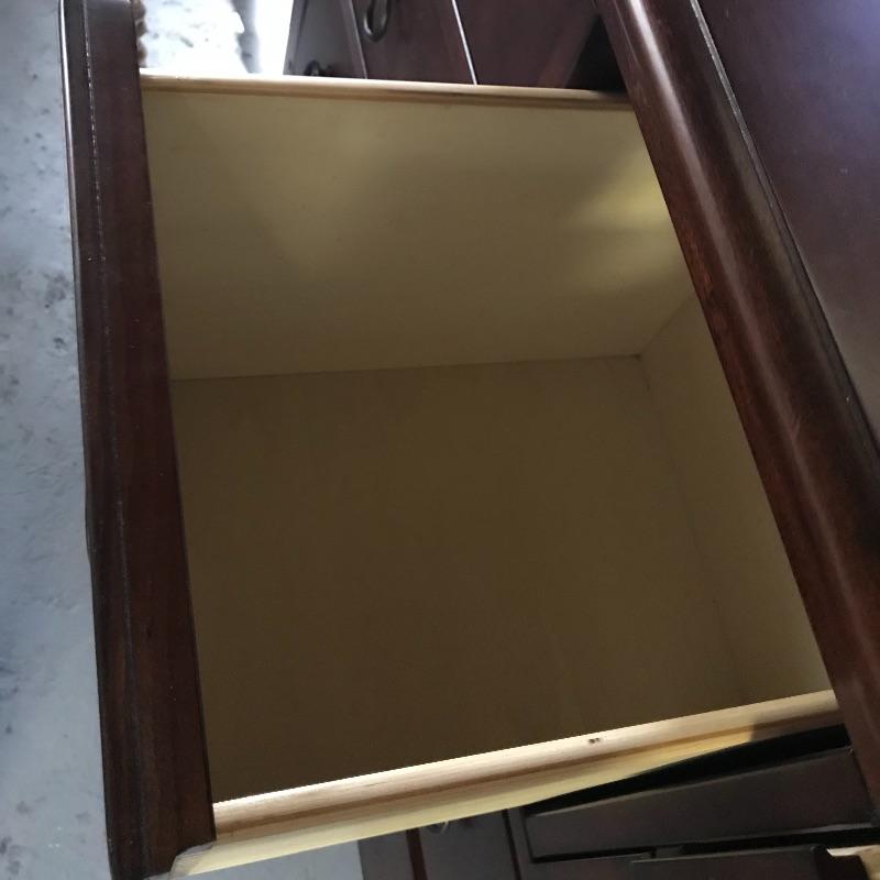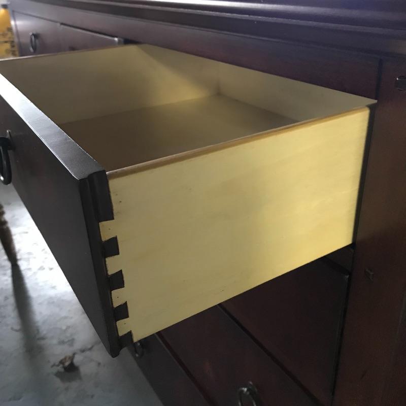Stunning nine drawer dresser by Hooker Furniture in the Albany Park Collection. Piece has beautiful dovetail drawers and slate-gray metal pulls. Piece is hardwood/cheery veneer with pressed wood back panel. So much storage, this mule chest can work perfectly in any room in the house. Dresser measures approximately 60” x 19” x 43”. Please bring help to load. Local pick up only.
