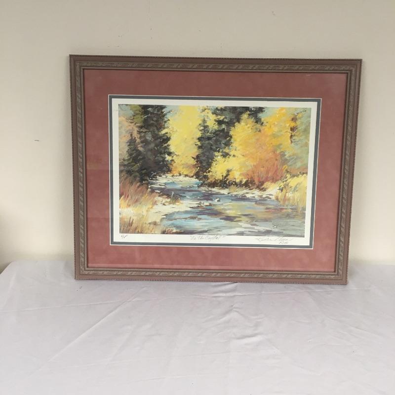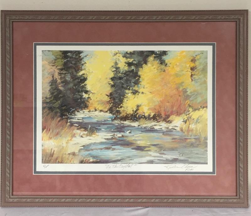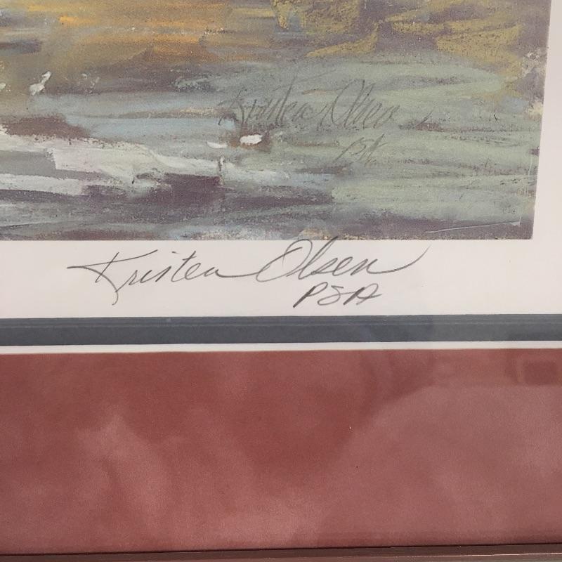 This is a Kristen Olsen Framed, matted, pencil signed print titled “On the Crystal”. Frame measures 19.25” x 23.75”.