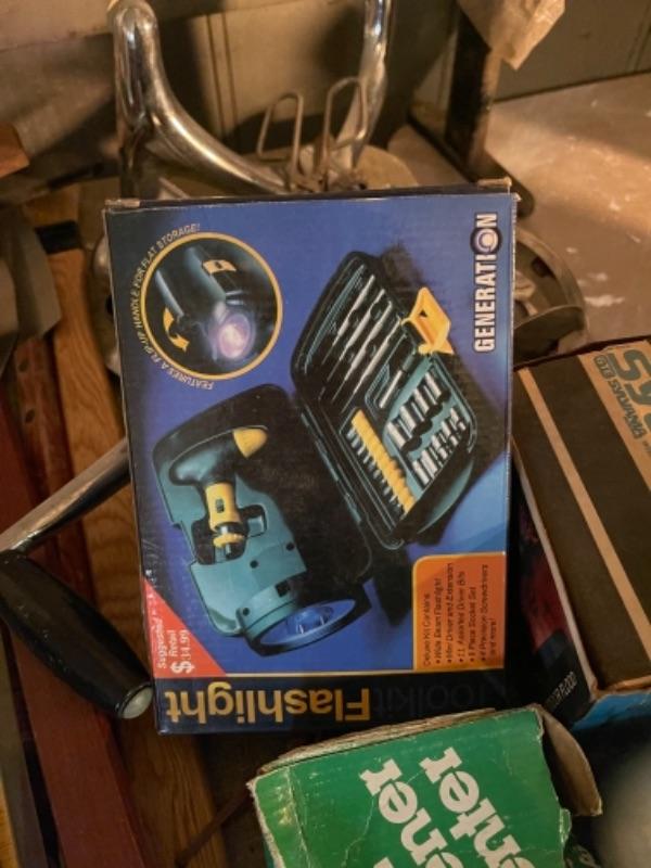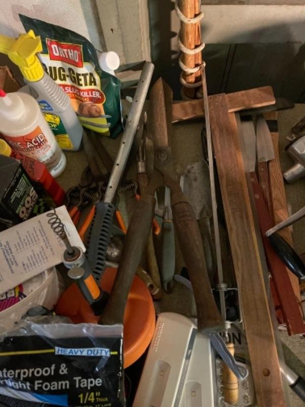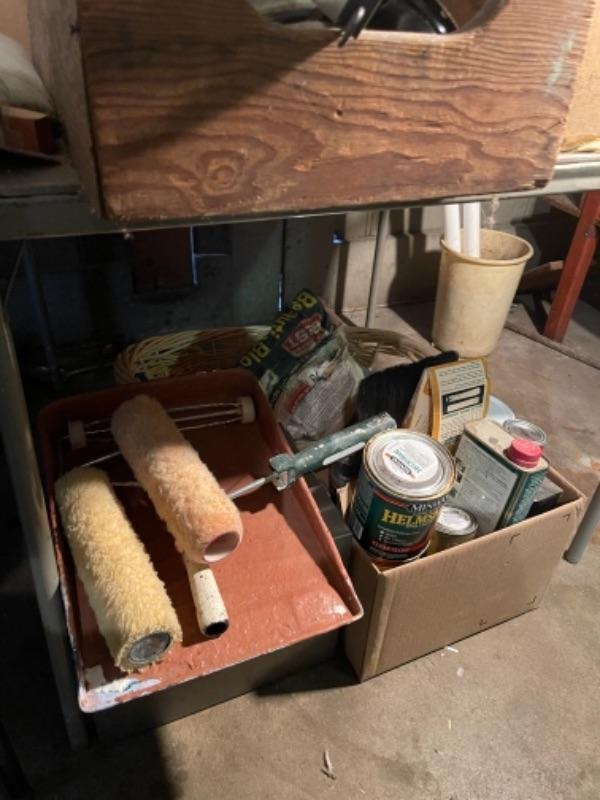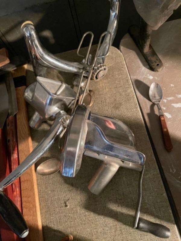 Lot 168. Large lot of hardware, cookware, vintage paper roll, BBQ utensils, plumbing snake--Was $85 - -Now $40