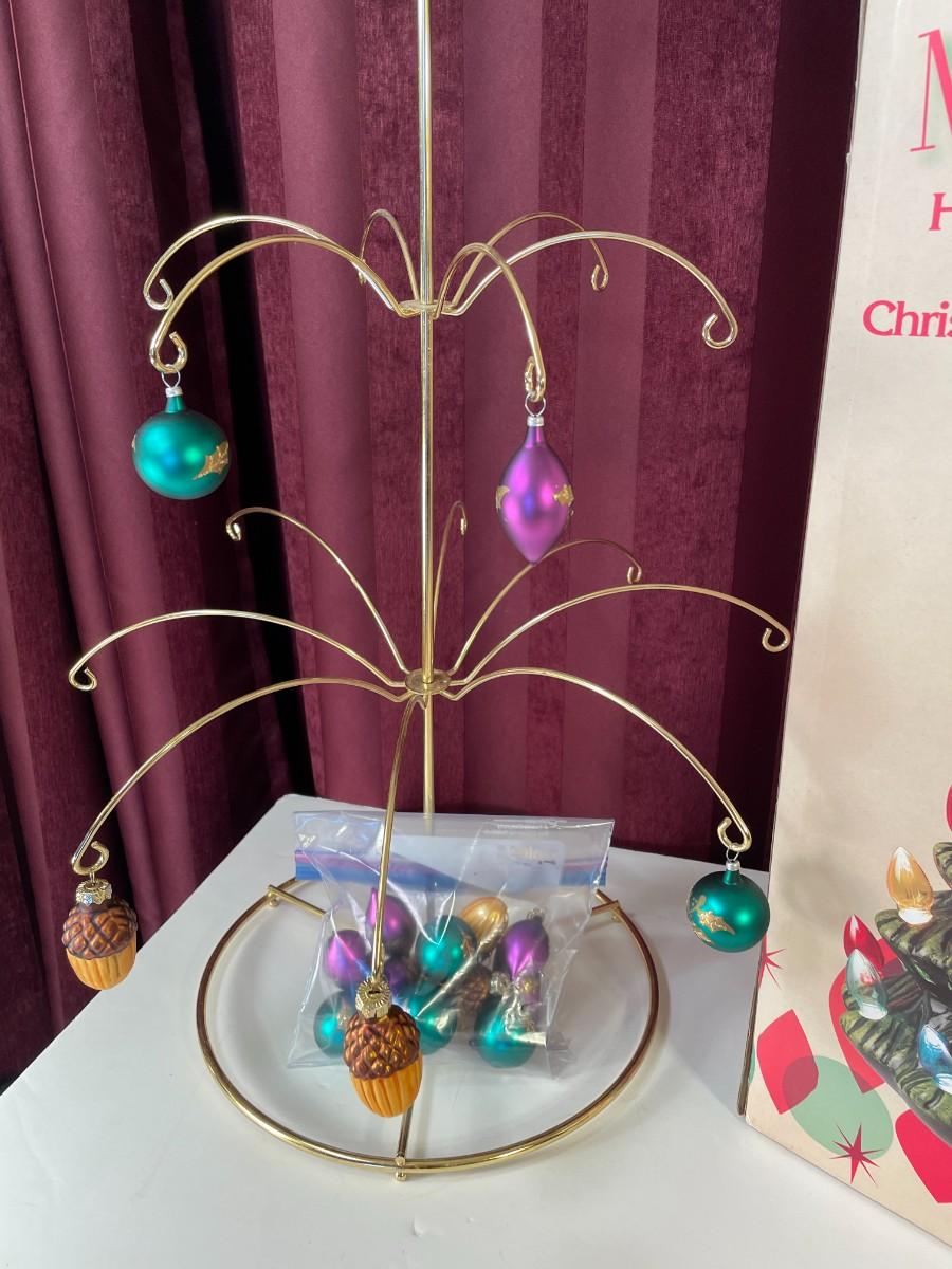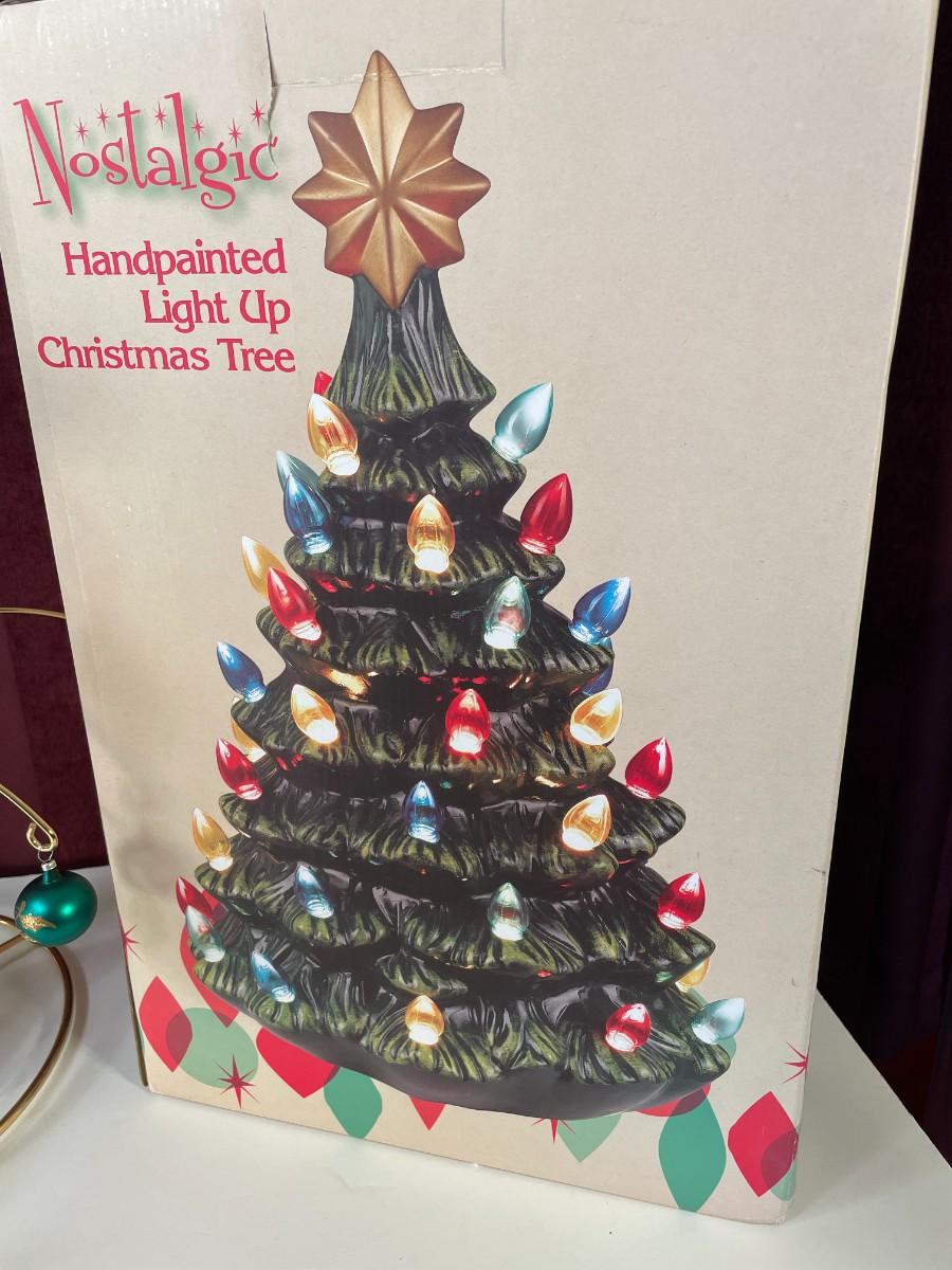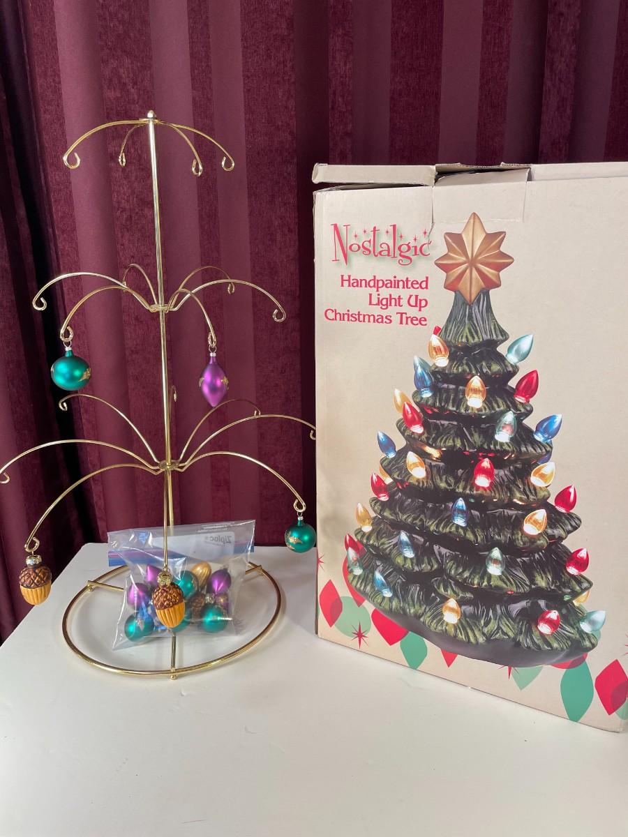 Lot 68 Nostalgic Ceramic Light-Up Tree and Wire Tree w/ Small Ornaments