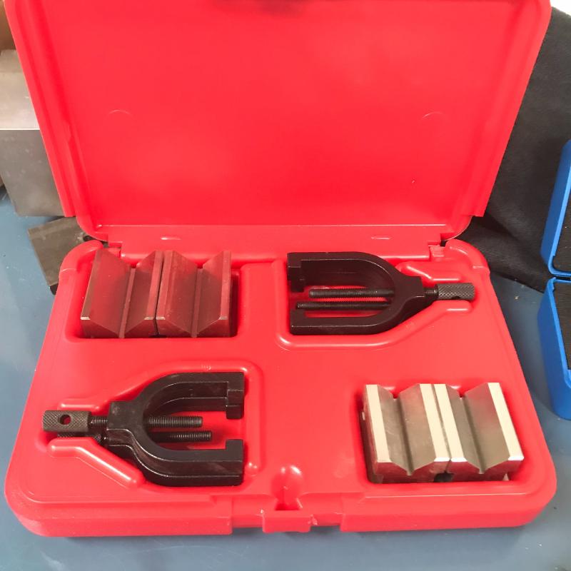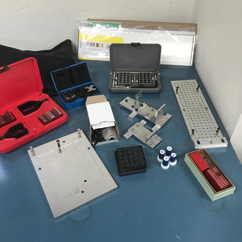 Vee Blocks, 1,2,3, Block, lathe dogs, magnetic Clamps, supports and some custom pieces. Also, metal and plastic shim sheets. Lot is available for local pick up in Asheville, NC only.