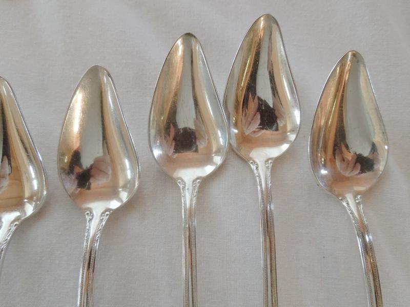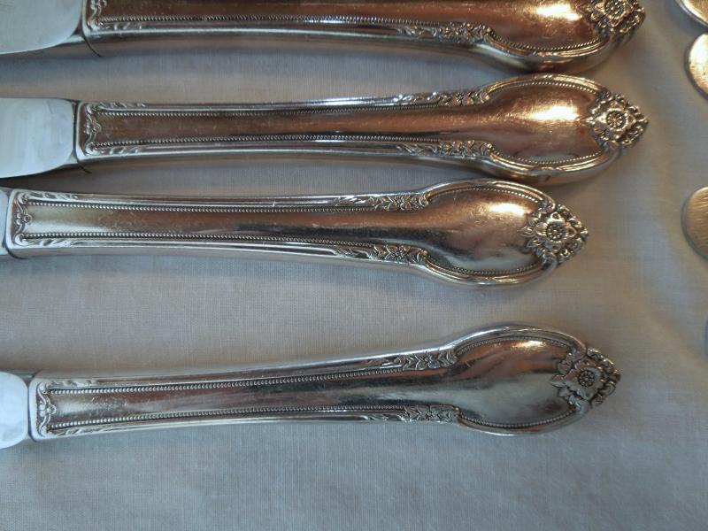 Set includes 8 cocktail forks; 1 butter knife; 9 butter spreaders; 5 sugar spoons; 8 soup spoons; 8 teaspoons; 8 grapefruit spoons; 8 knives; 2 serving spoons; 8 dinner forks; and 8 salad forks. Complete 8 piece setting plus.