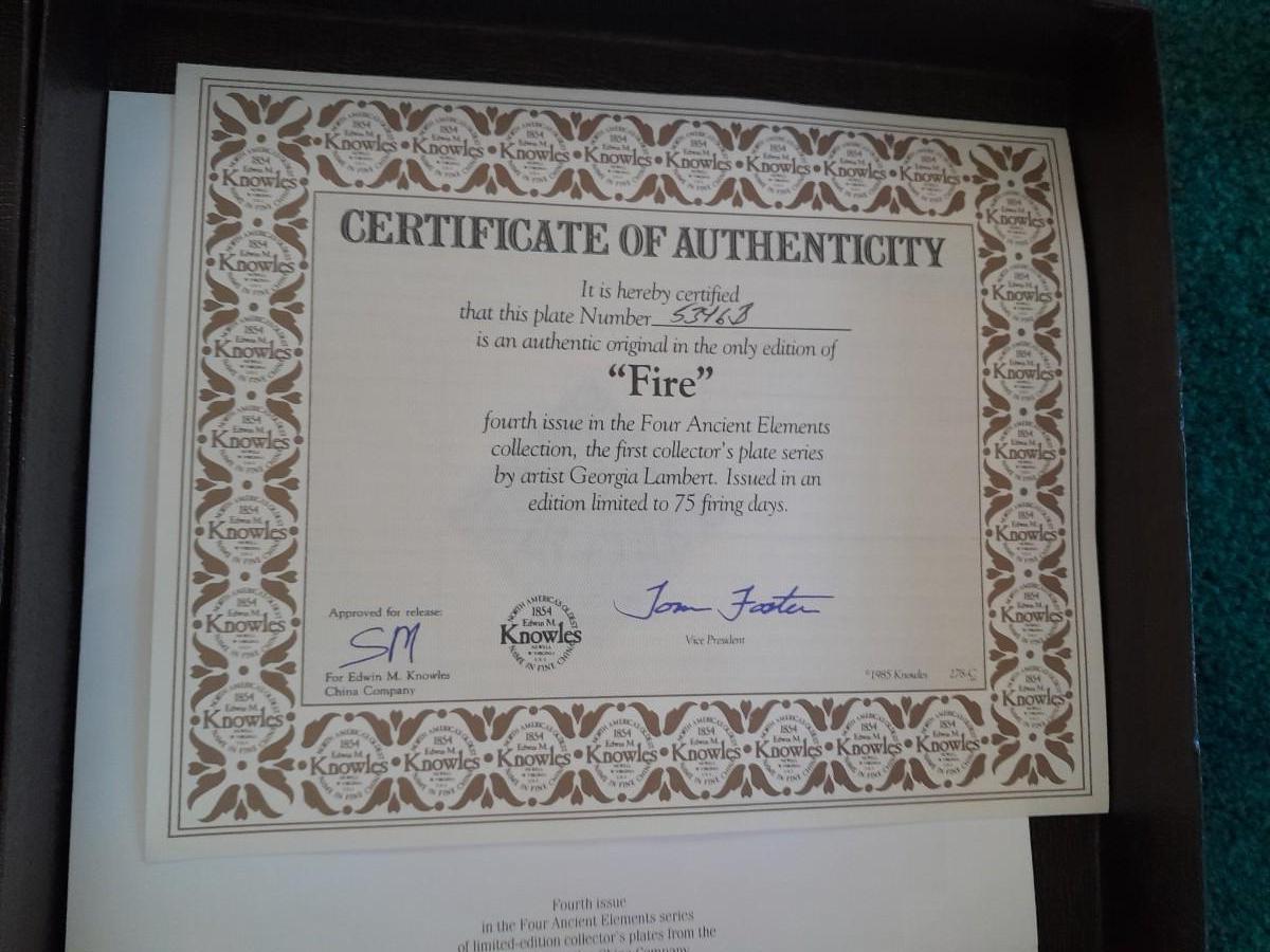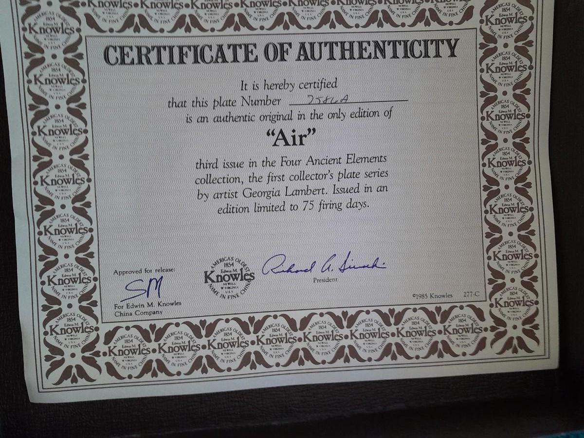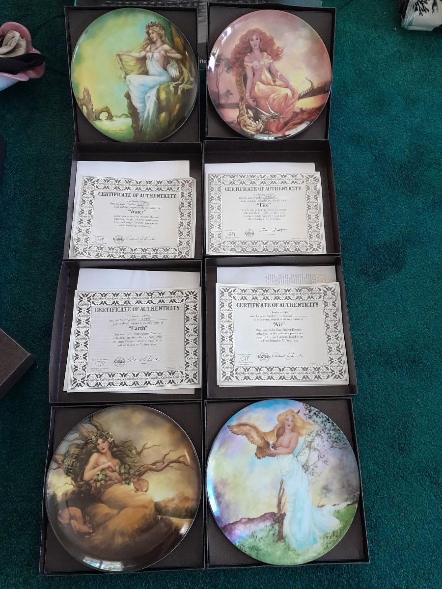 THE FOUR ELEMENTS COLLECTOR'S PLATES, AIR, EARTH, WIND AND FIRE WITH BOXES, AND CERTIFICATES OF AUTHENTICITY.