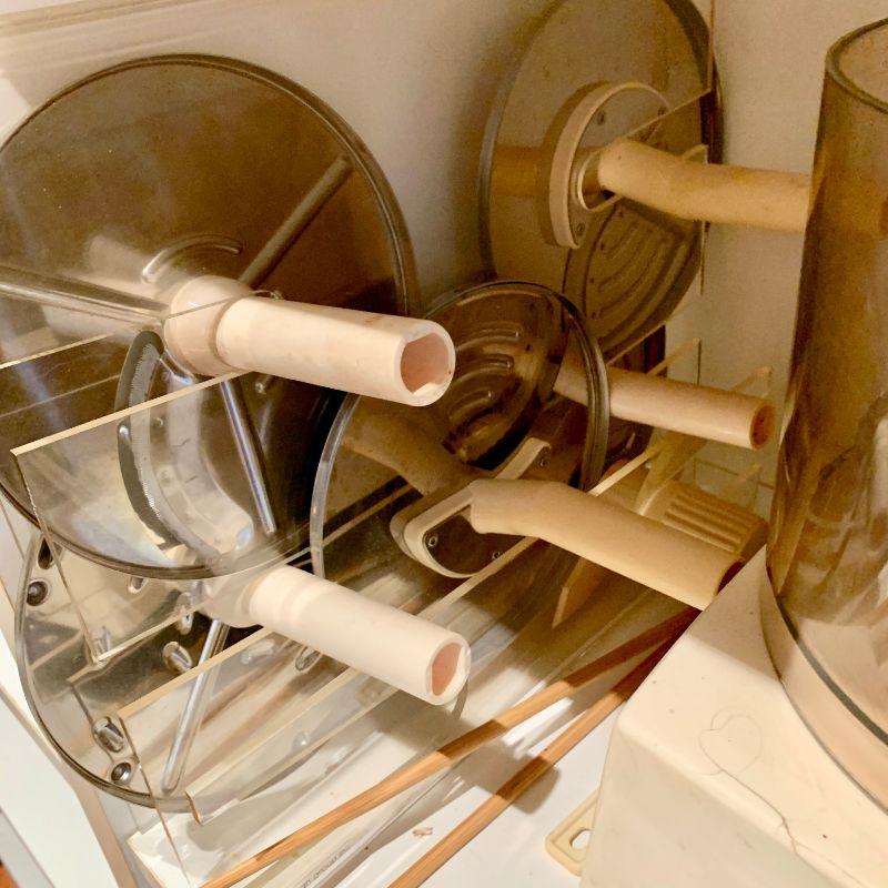 70s Cuisinart food processor with lots of attachments.