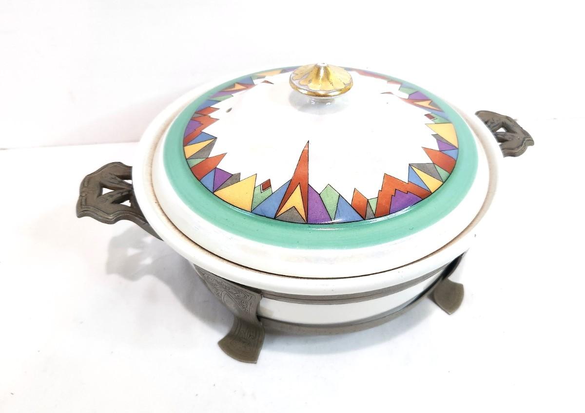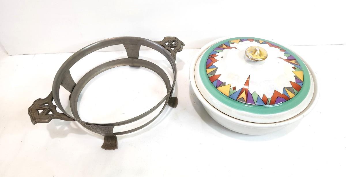 Lot #68 Vintage Hall China Covered Casserole in Holder - 1930's Art Deco