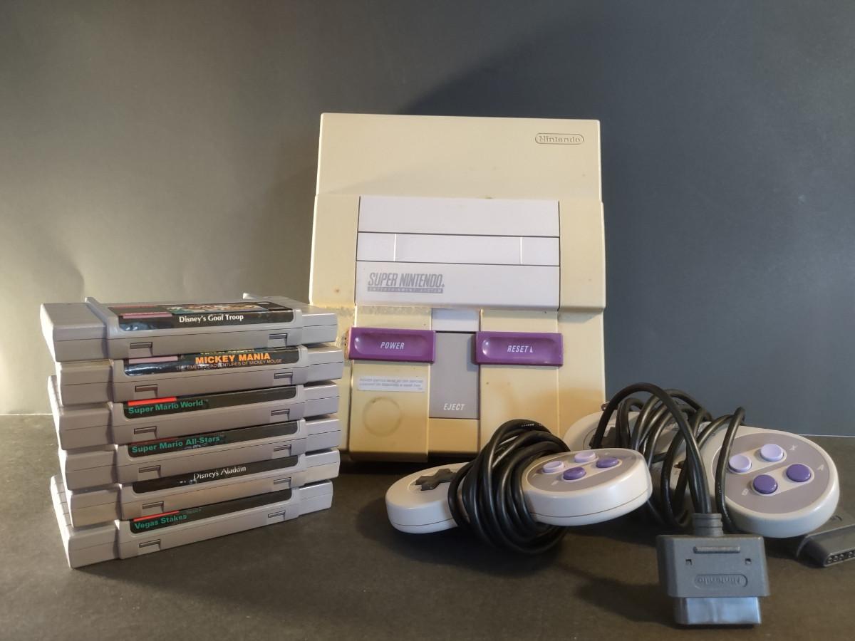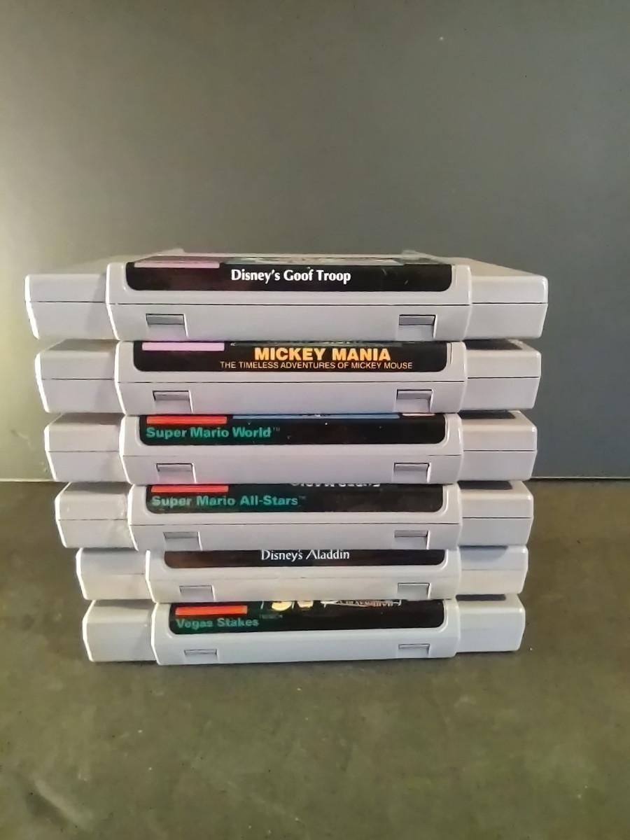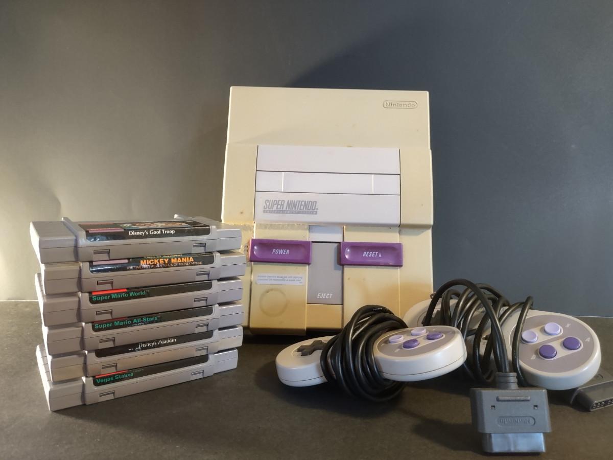 Super Nintendo W/6 Games. No Wires Included. Untested Please see all pictures as they are the best representation of the items. The pictures show condition, measurements if taken, and what is included in the lot. Due to the large amount that we photograph and the time frame, we are not always able to take measurements. All items unless noted, are pre-owned and have been used. If you purchased furniture, you must bring help. We do not allow one person to carry large furniture out on their own. Bring help, tools and a truck for the safety of our client’s homes, and your personal safety. Any damages that result to the property including walls, and floors due to moving of the furniture will be charged to the buyer. Company policy. Thank you.