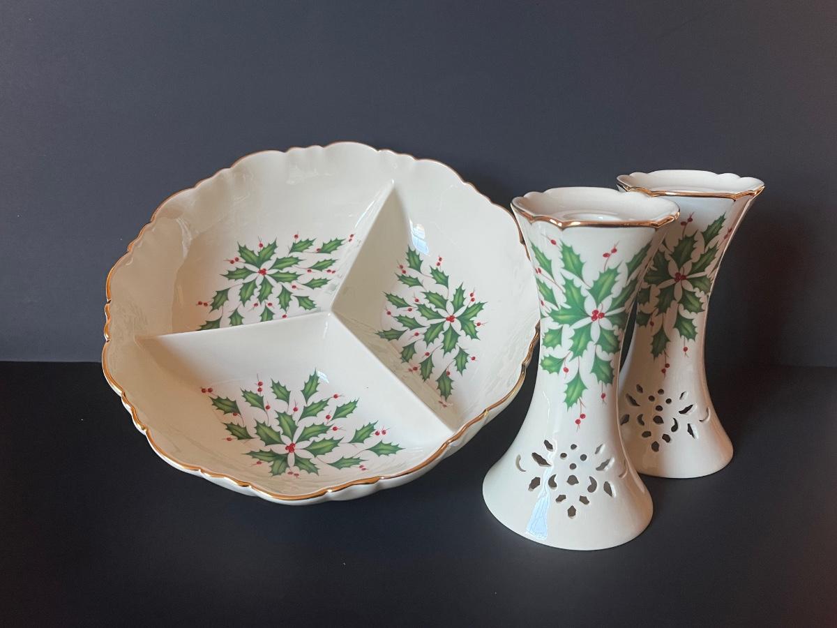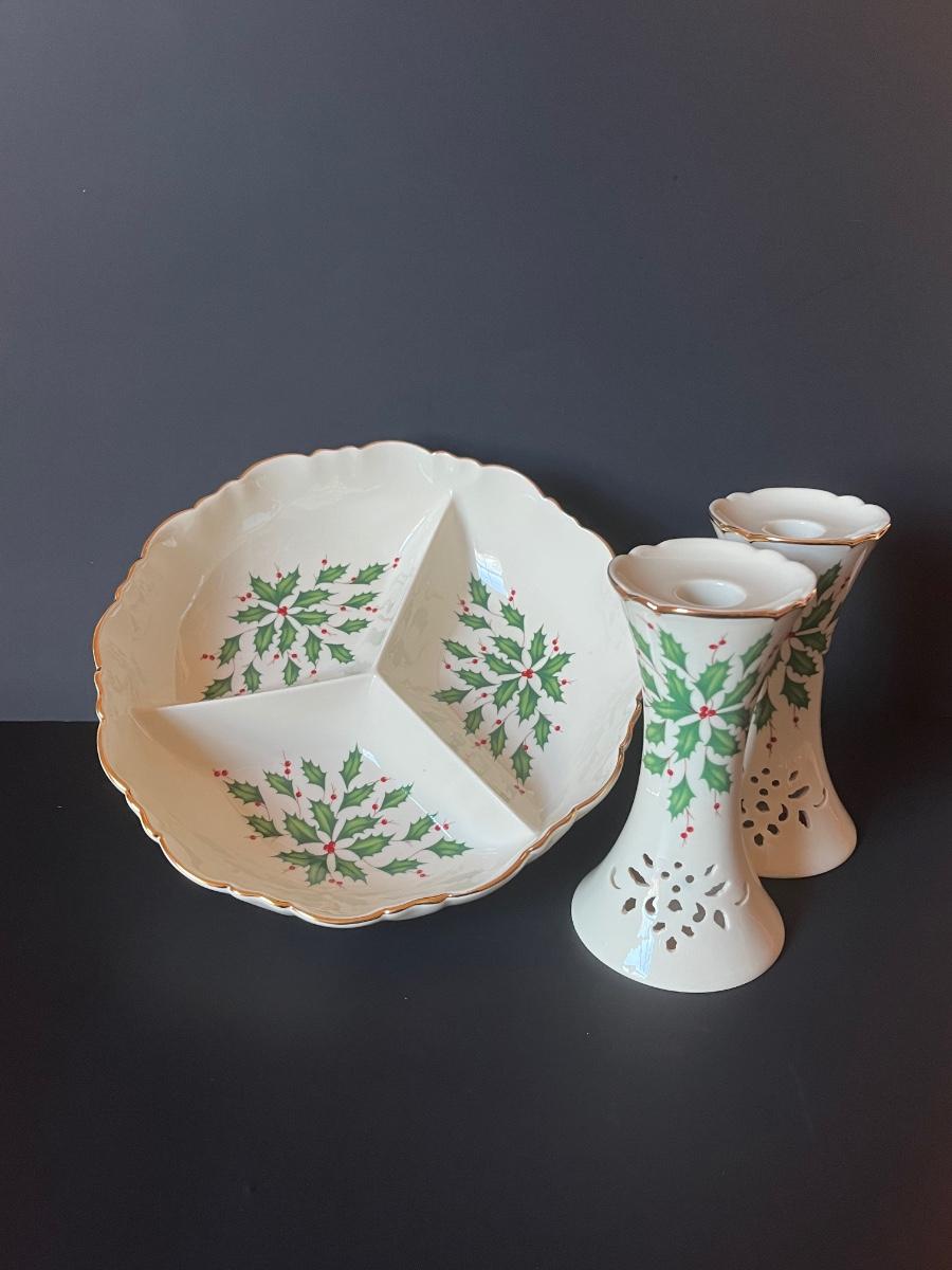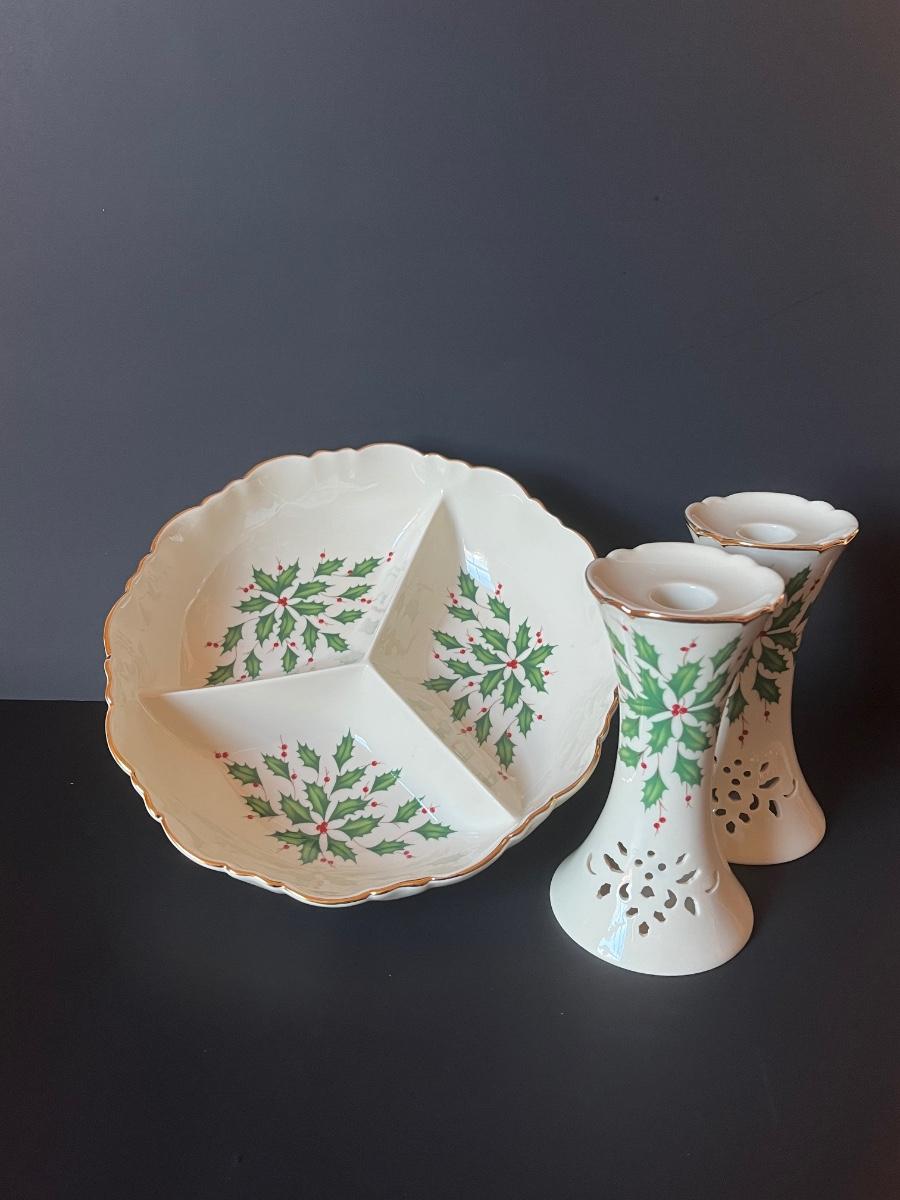 LOT 27C: Lenox Holiday Platter and Candlesticks