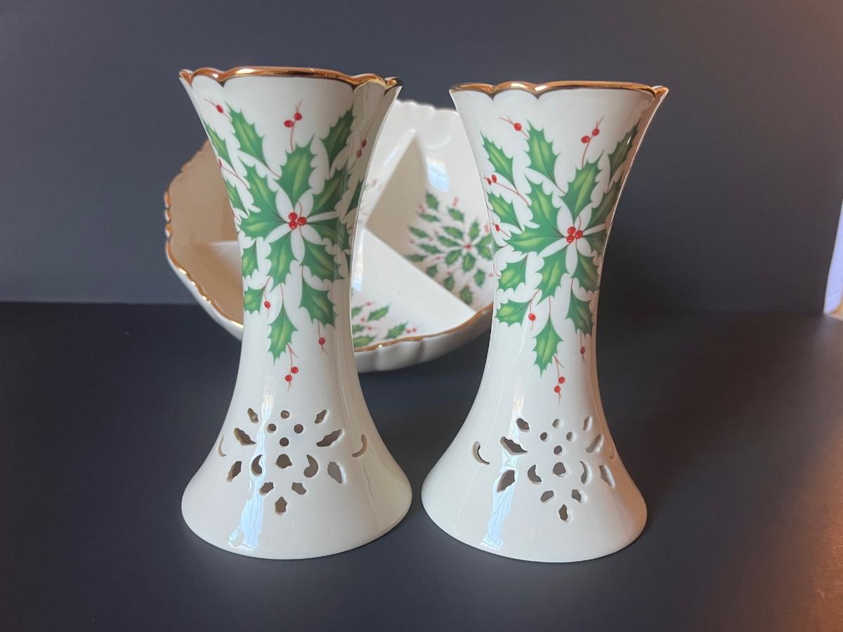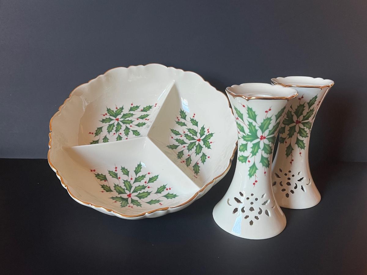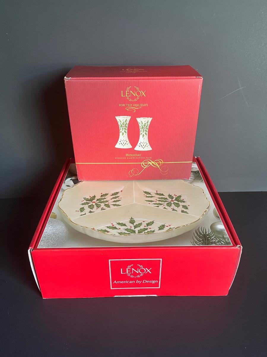 LOT 27C: Lenox Holiday Platter and Candlesticks