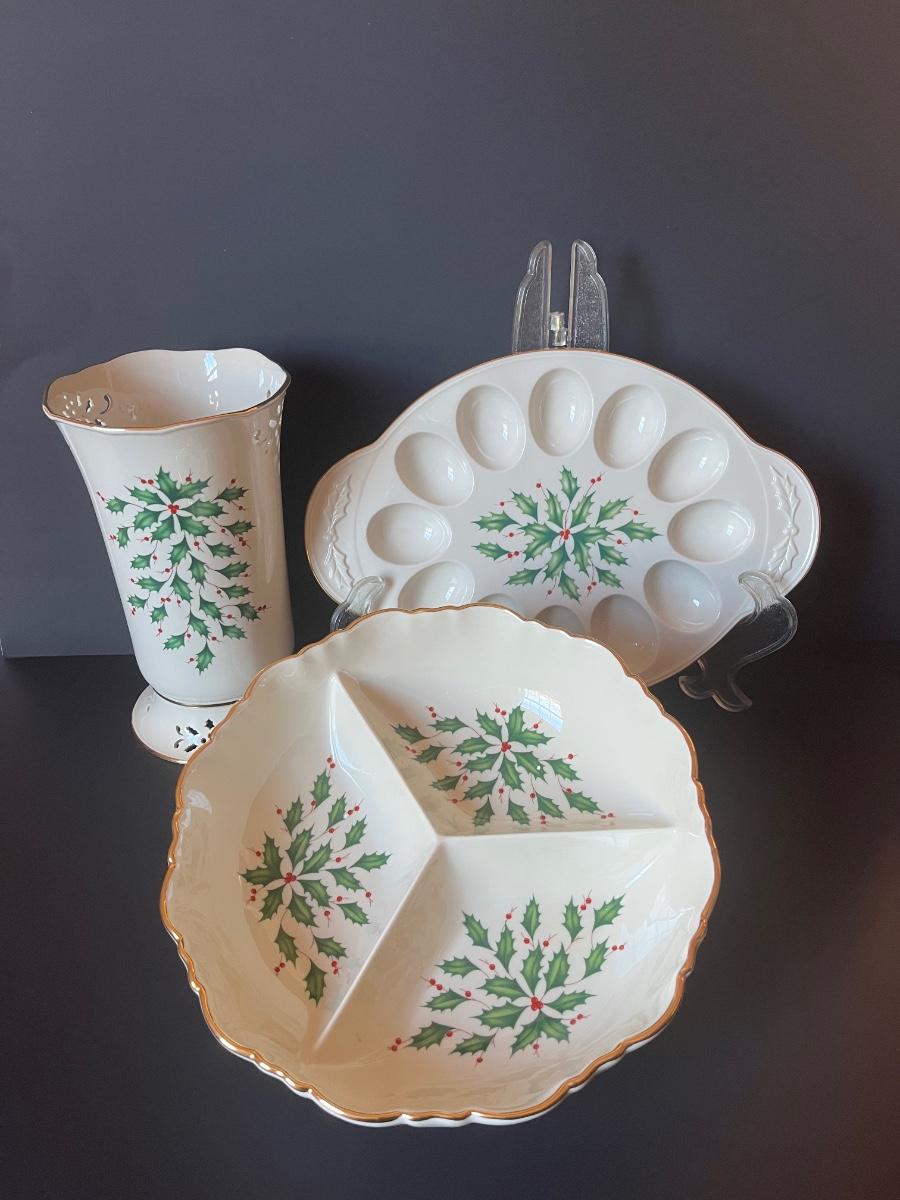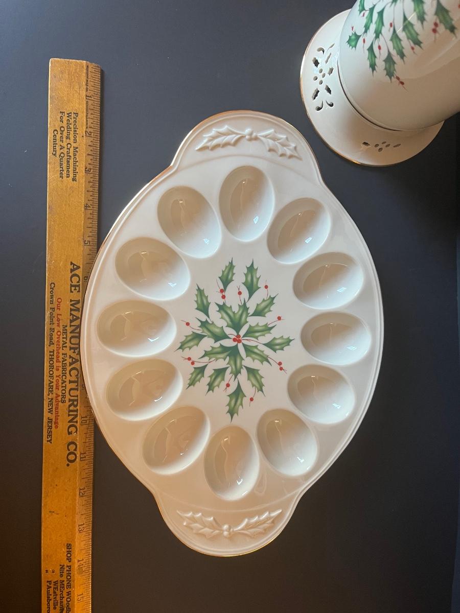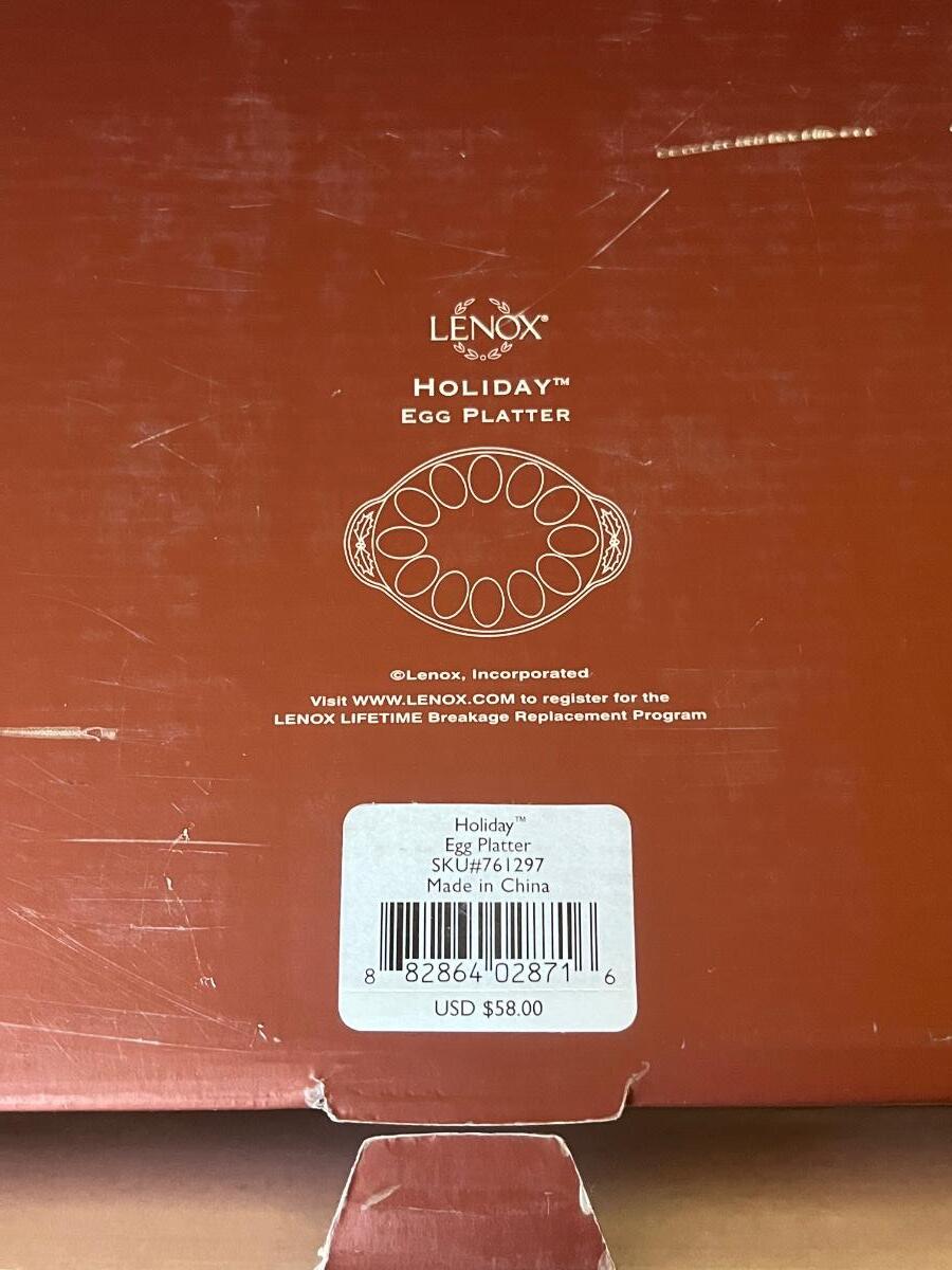 Holiday Archive Divided Platter, Pierced Holiday Vase and Holiday Egg Platter. Boxes included.Please see all pictures as they are the best representation of the items. The pictures show condition, measurements if taken, and what is included in the lot. Due to the large amount that we photograph and the time frame, we are not always able to take measurements. All items unless noted, are pre-owned and have been used. If you purchased furniture, you must bring help. We do not allow one person to carry large furniture out on their own. Bring help, tools and a truck for the safety of our client’s homes, and your personal safety. Any damages that result to the property including walls, and floors due to moving of the furniture will be charged to the buyer. Company policy. Thank you.