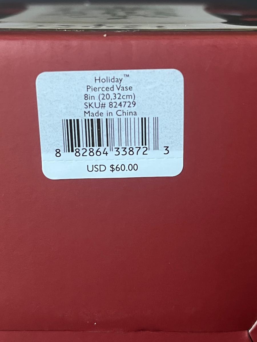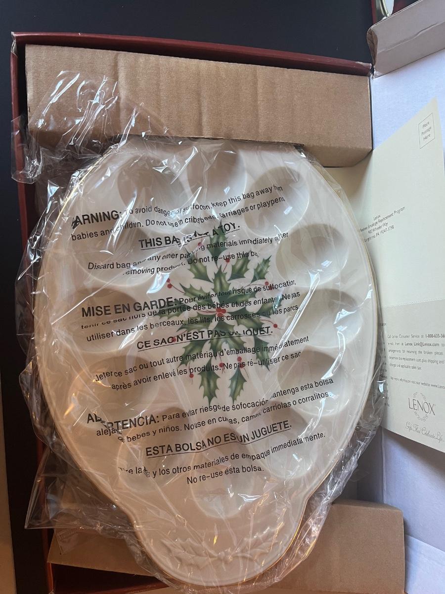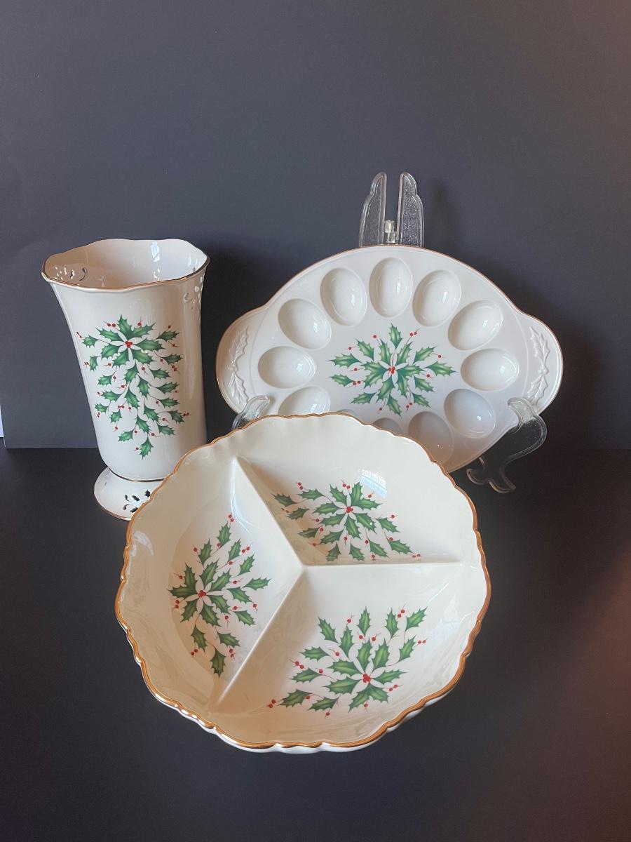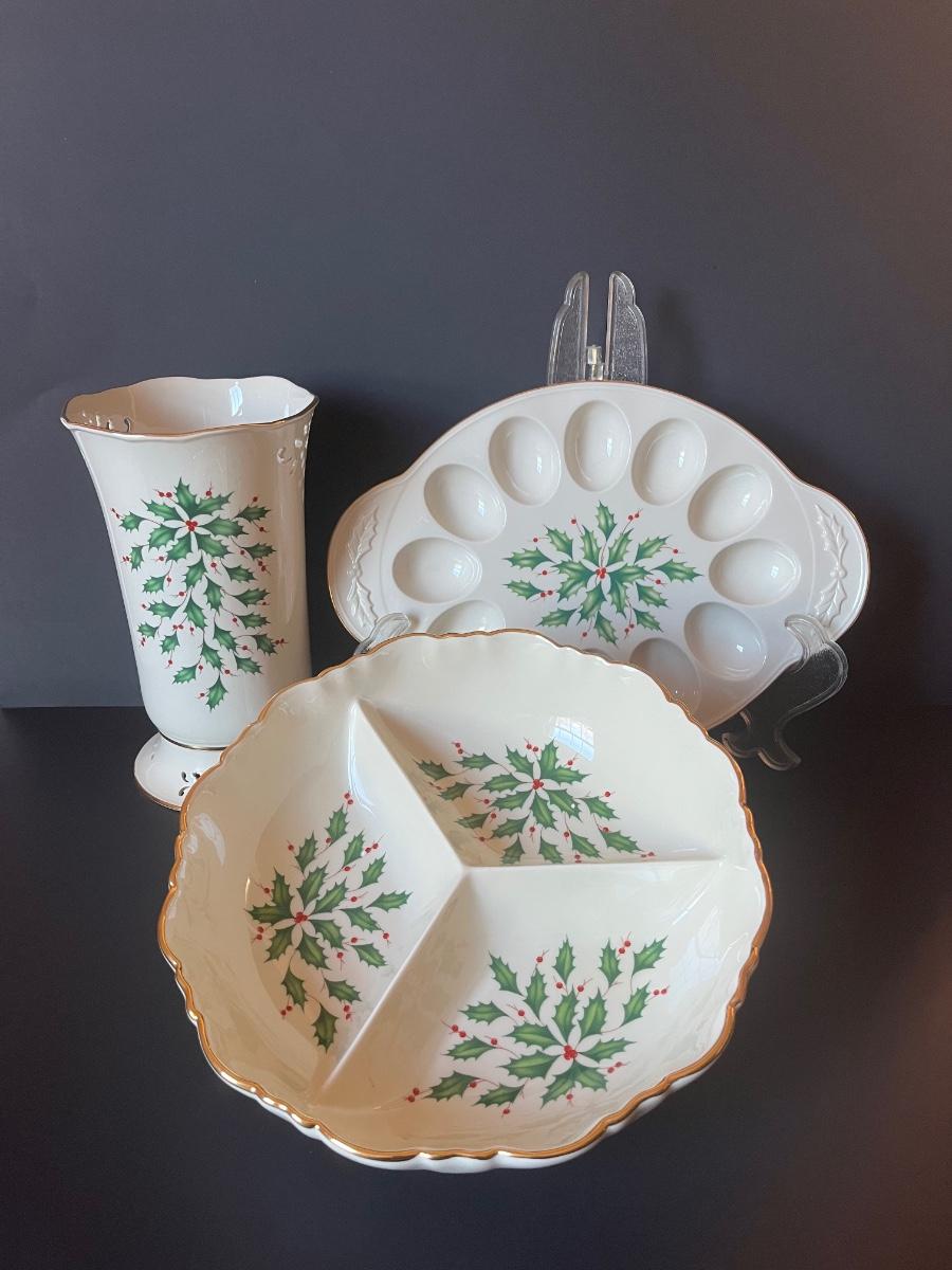 Holiday Archive Divided Platter, Pierced Holiday Vase and Holiday Egg Platter. Boxes included.Please see all pictures as they are the best representation of the items. The pictures show condition, measurements if taken, and what is included in the lot. Due to the large amount that we photograph and the time frame, we are not always able to take measurements. All items unless noted, are pre-owned and have been used. If you purchased furniture, you must bring help. We do not allow one person to carry large furniture out on their own. Bring help, tools and a truck for the safety of our client’s homes, and your personal safety. Any damages that result to the property including walls, and floors due to moving of the furniture will be charged to the buyer. Company policy. Thank you.