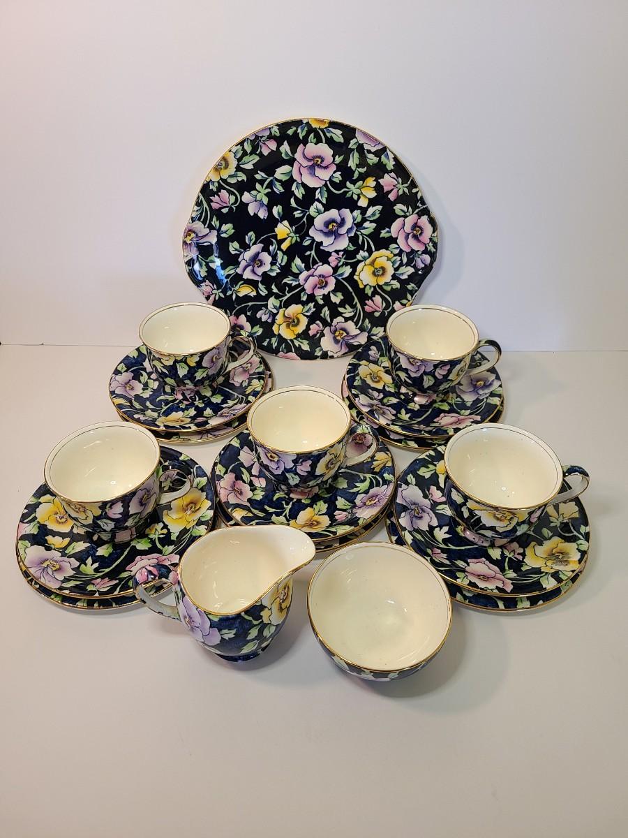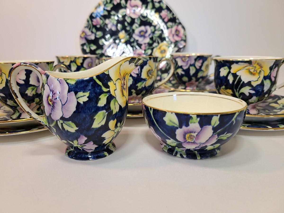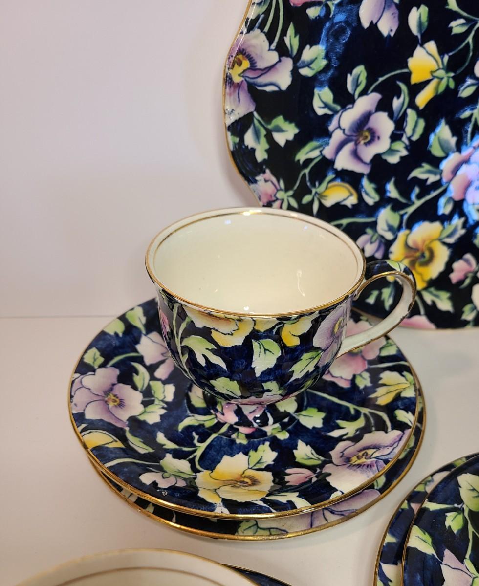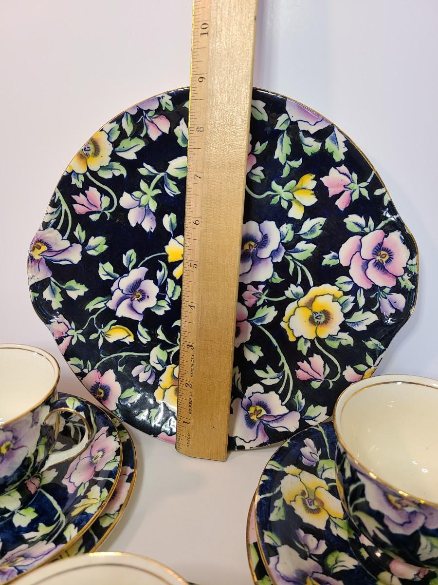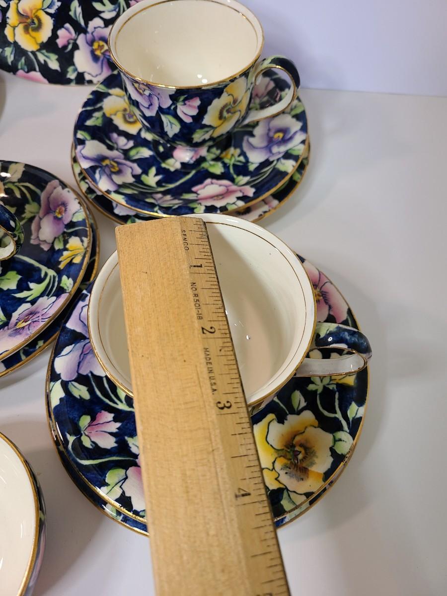 Gorgeous set of teacups, platter and service pieces. This is an older set and hard to find, shows minor wear normal with age and use. This is navy blue, not black. Fun for everyday use, or decor! Please see all pictures as they are the best representation of the items. The pictures show condition, measurements if taken, and what is included in the lot. Due to the large amount that we photograph and the time frame, we are not always able to take measurements. All items unless noted, are pre-owned and have been used. If you purchased furniture, you must bring help. We do not allow one person to carry large furniture out on their own. Bring help, tools and a truck for the safety of our client’s homes, and your personal safety. Any damages that result to the property including walls, and floors due to moving of the furniture will be charged to the buyer. Company policy. Thank you.