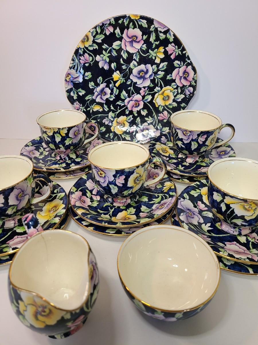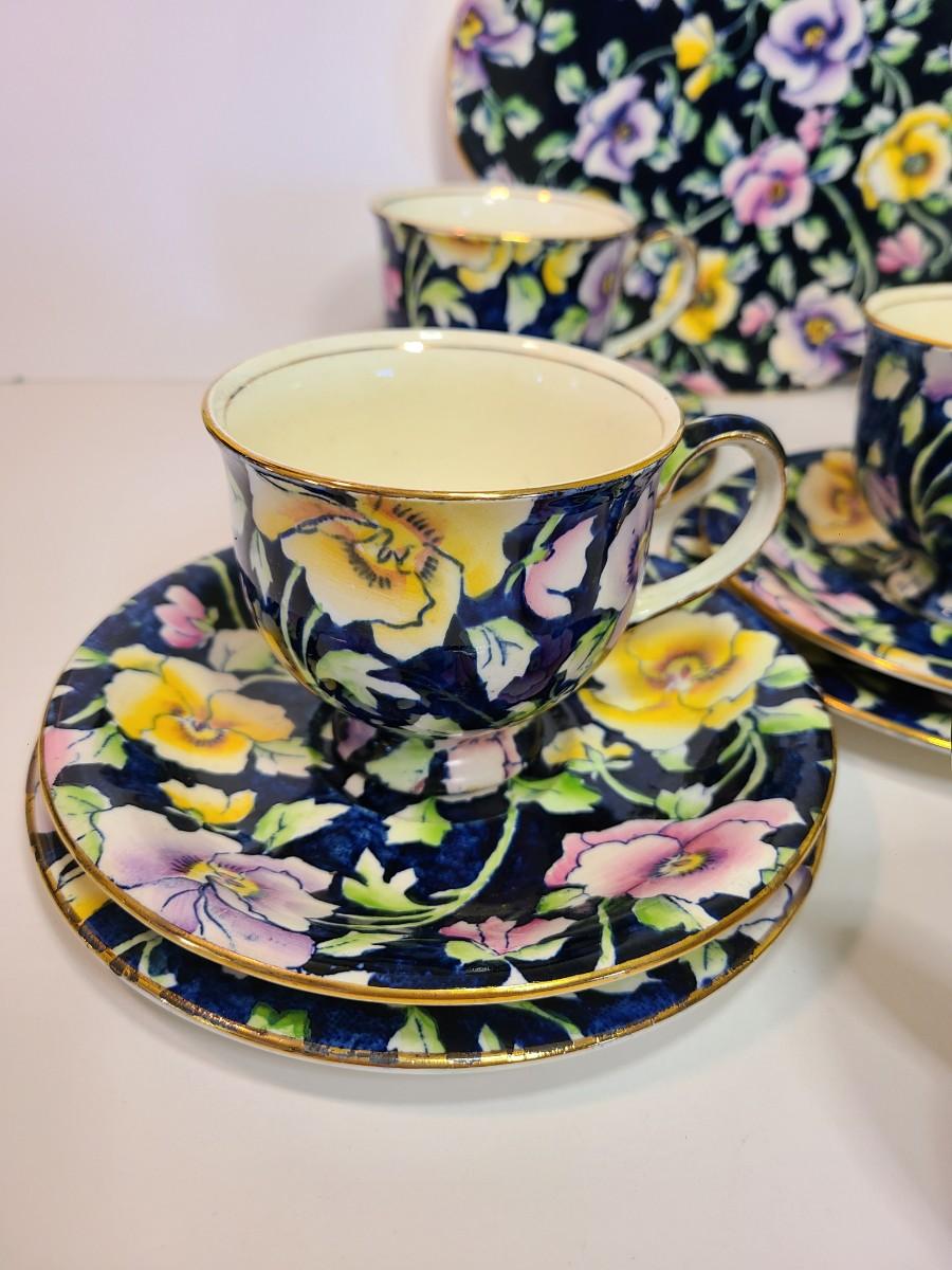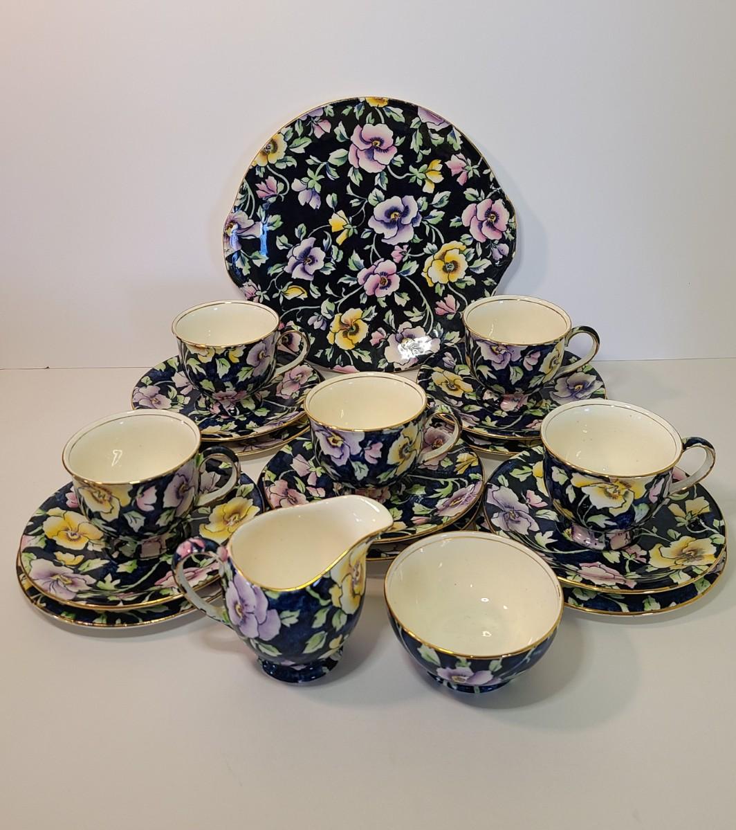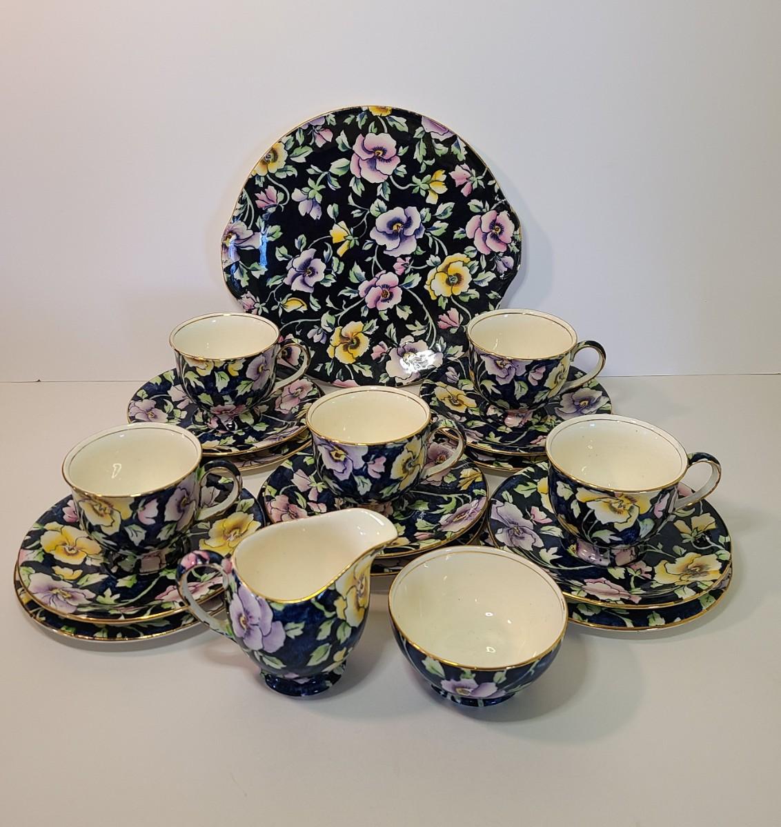 Gorgeous set of teacups, platter and service pieces. This is an older set and hard to find, shows minor wear normal with age and use. This is navy blue, not black. Fun for everyday use, or decor! Please see all pictures as they are the best representation of the items. The pictures show condition, measurements if taken, and what is included in the lot. Due to the large amount that we photograph and the time frame, we are not always able to take measurements. All items unless noted, are pre-owned and have been used. If you purchased furniture, you must bring help. We do not allow one person to carry large furniture out on their own. Bring help, tools and a truck for the safety of our client’s homes, and your personal safety. Any damages that result to the property including walls, and floors due to moving of the furniture will be charged to the buyer. Company policy. Thank you.