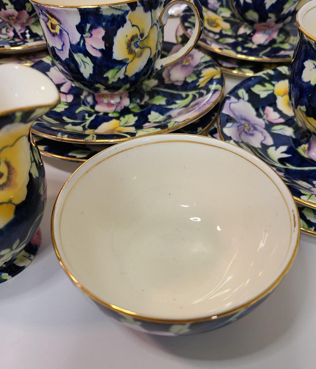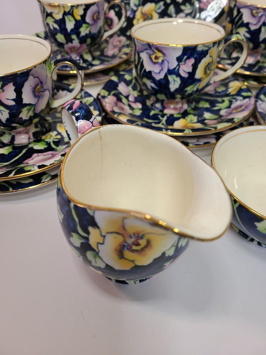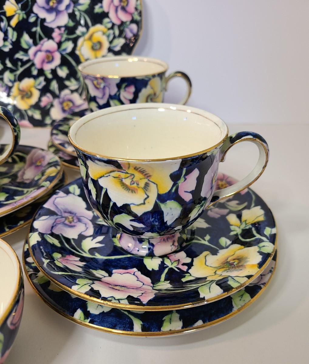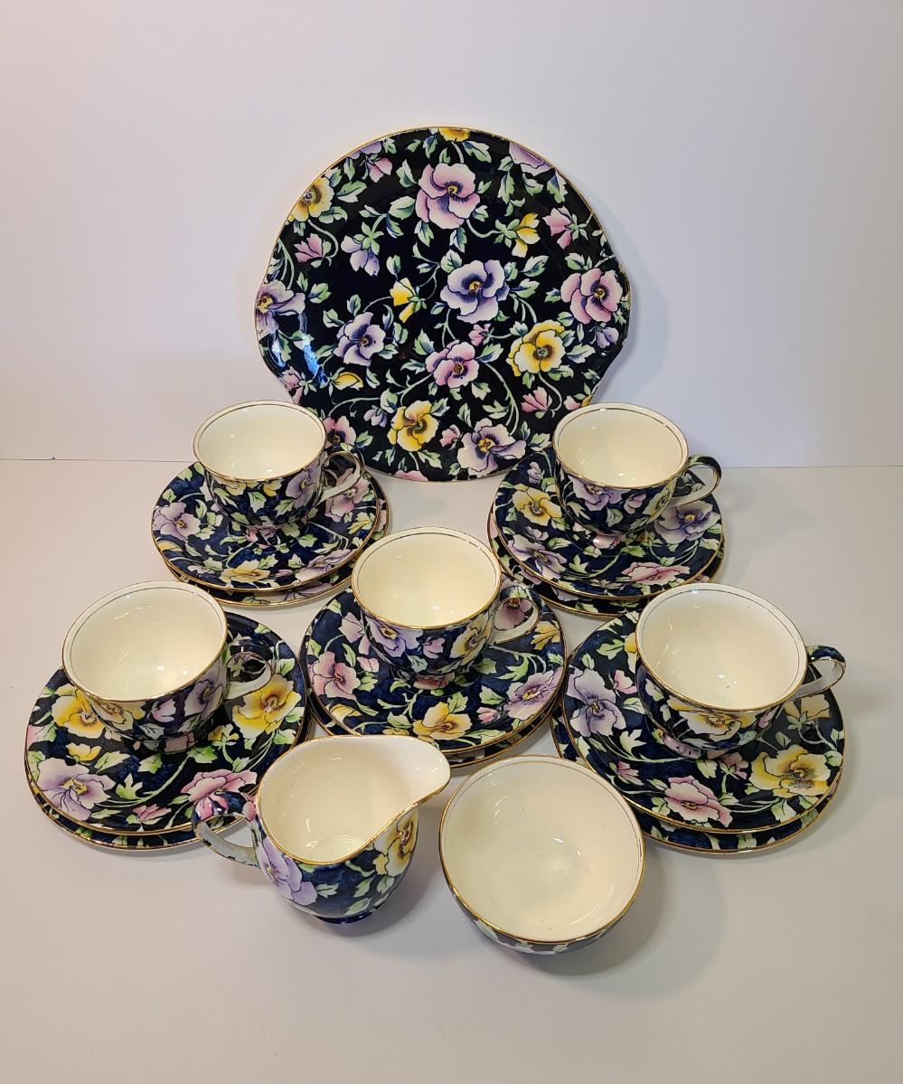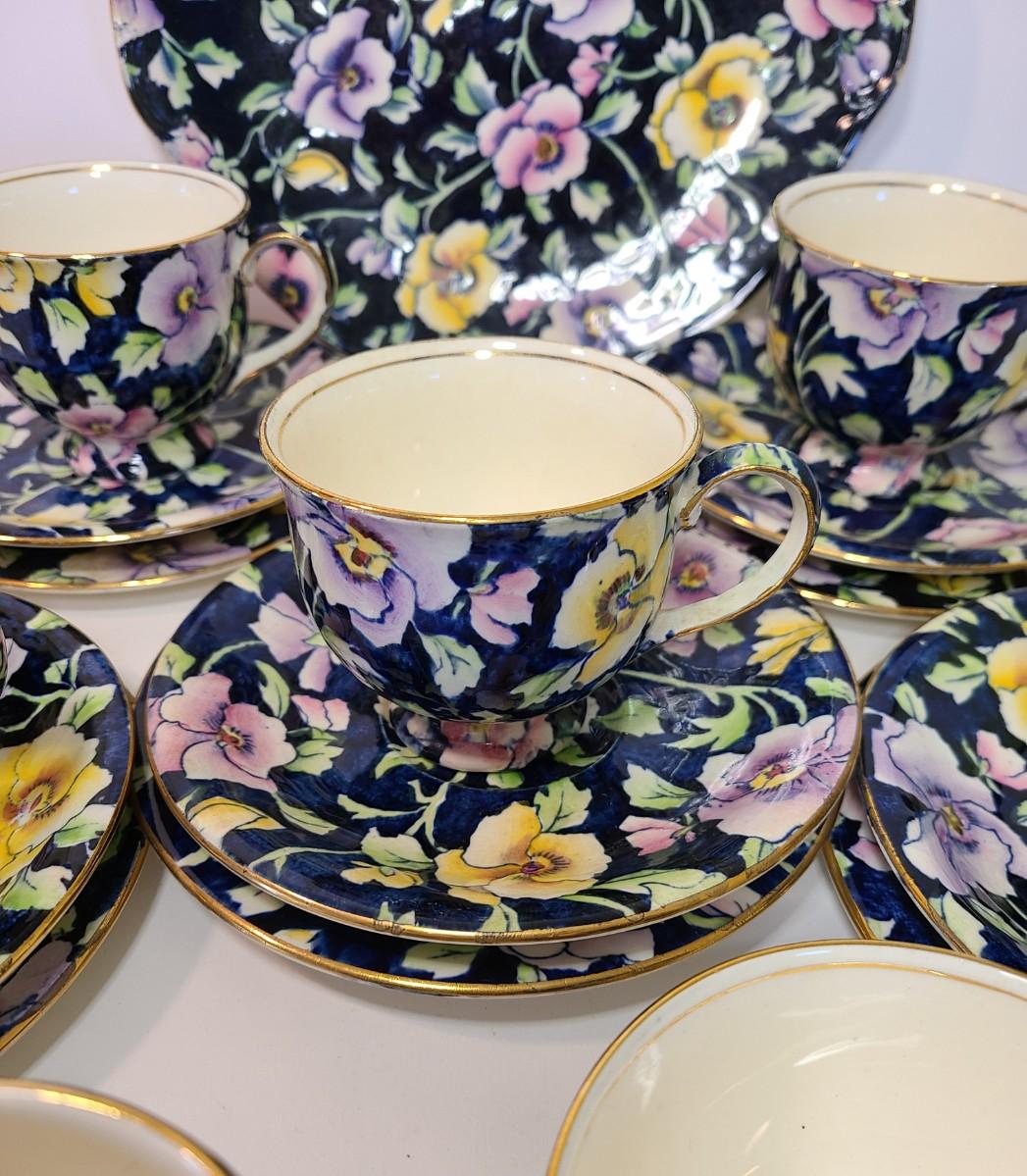 Gorgeous set of teacups, platter and service pieces. This is an older set and hard to find, shows minor wear normal with age and use. This is navy blue, not black. Fun for everyday use, or decor! Please see all pictures as they are the best representation of the items. The pictures show condition, measurements if taken, and what is included in the lot. Due to the large amount that we photograph and the time frame, we are not always able to take measurements. All items unless noted, are pre-owned and have been used. If you purchased furniture, you must bring help. We do not allow one person to carry large furniture out on their own. Bring help, tools and a truck for the safety of our client’s homes, and your personal safety. Any damages that result to the property including walls, and floors due to moving of the furniture will be charged to the buyer. Company policy. Thank you.