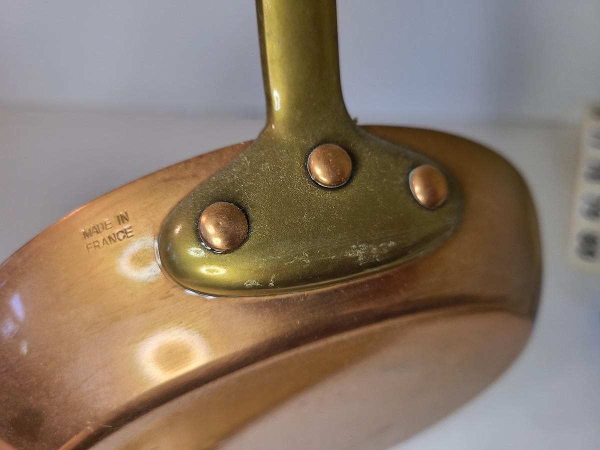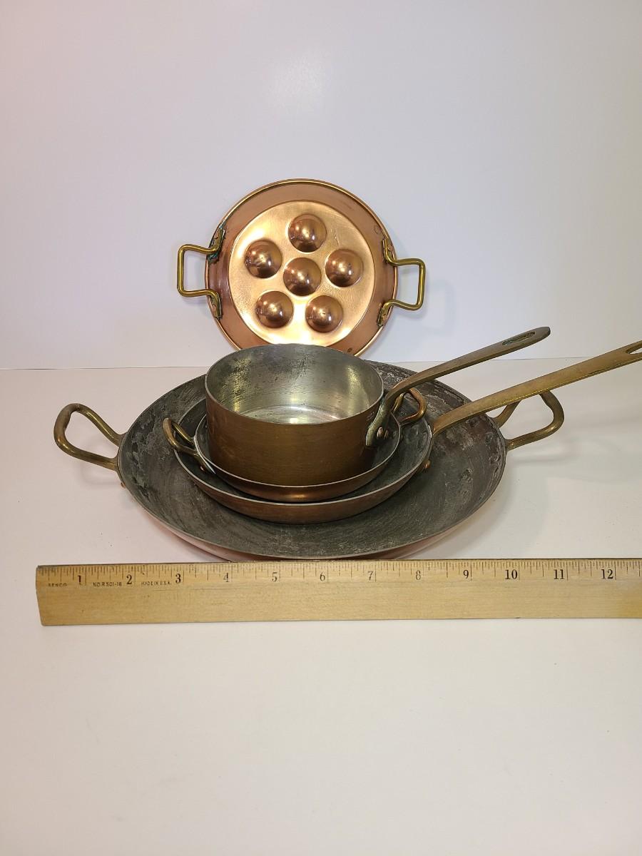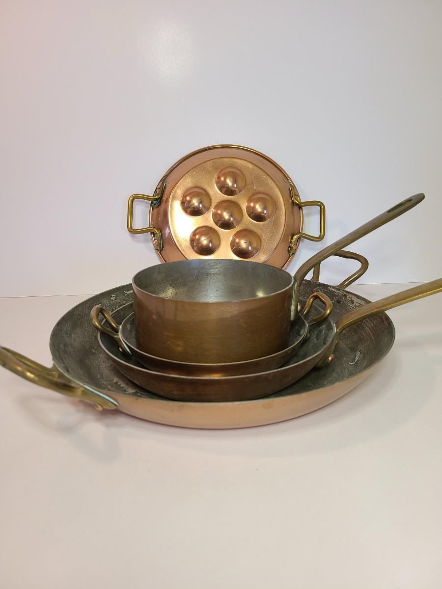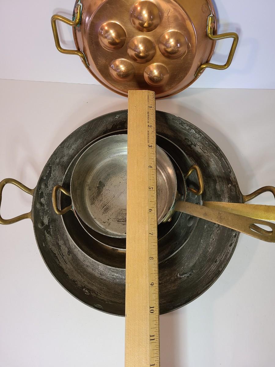 Mixed lot of made in France copper and tin pans. Please see all pictures as they are the best representation of the items. The pictures show condition, measurements if taken, and what is included in the lot. Due to the large amount that we photograph and the time frame, we are not always able to take measurements. All items unless noted, are pre-owned and have been used. If you purchased furniture, you must bring help. We do not allow one person to carry large furniture out on their own. Bring help, tools and a truck for the safety of our client’s homes, and your personal safety. Any damages that result to the property including walls, and floors due to moving of the furniture will be charged to the buyer. Company policy. Thank you.