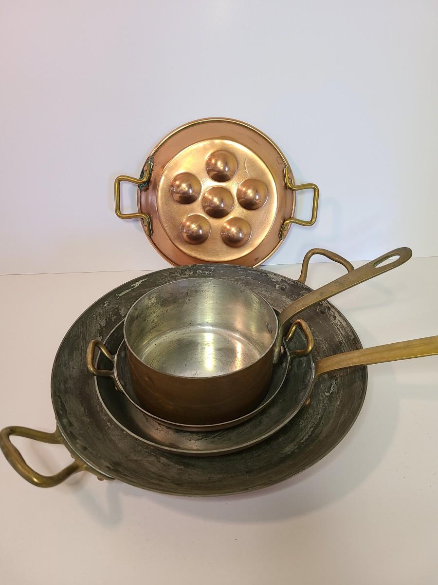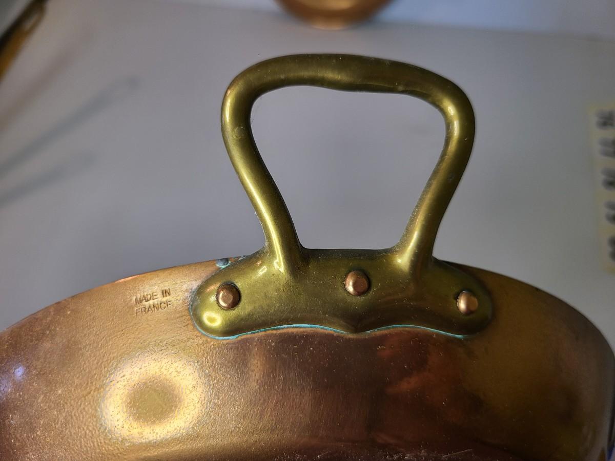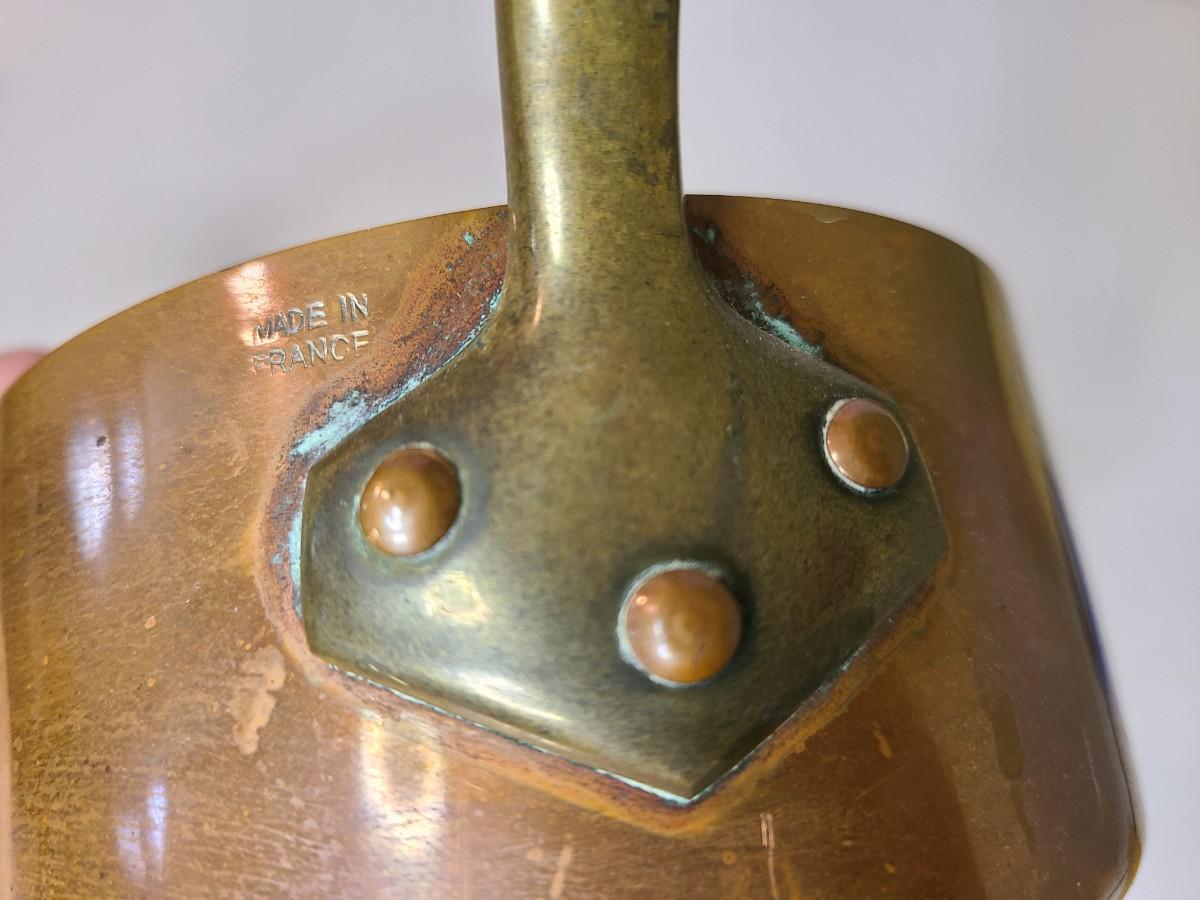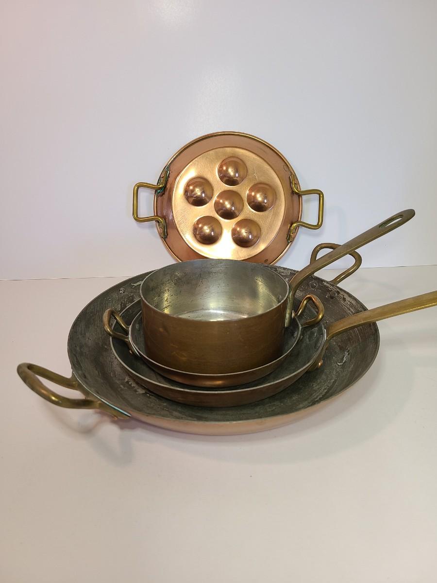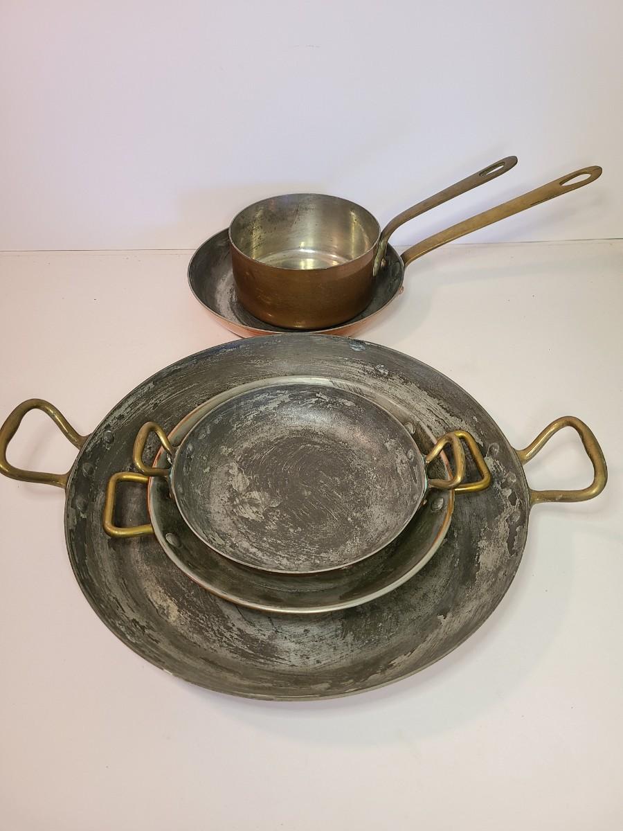 Mixed lot of made in France copper and tin pans. Please see all pictures as they are the best representation of the items. The pictures show condition, measurements if taken, and what is included in the lot. Due to the large amount that we photograph and the time frame, we are not always able to take measurements. All items unless noted, are pre-owned and have been used. If you purchased furniture, you must bring help. We do not allow one person to carry large furniture out on their own. Bring help, tools and a truck for the safety of our client’s homes, and your personal safety. Any damages that result to the property including walls, and floors due to moving of the furniture will be charged to the buyer. Company policy. Thank you.