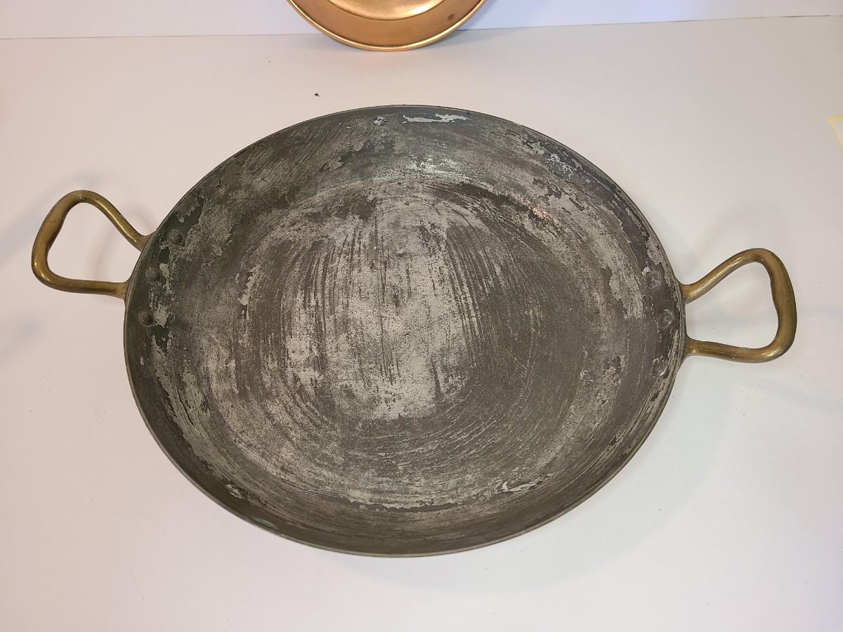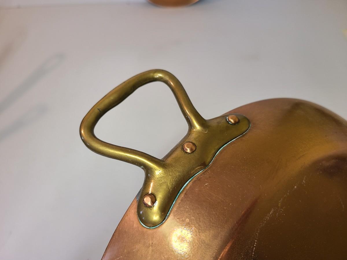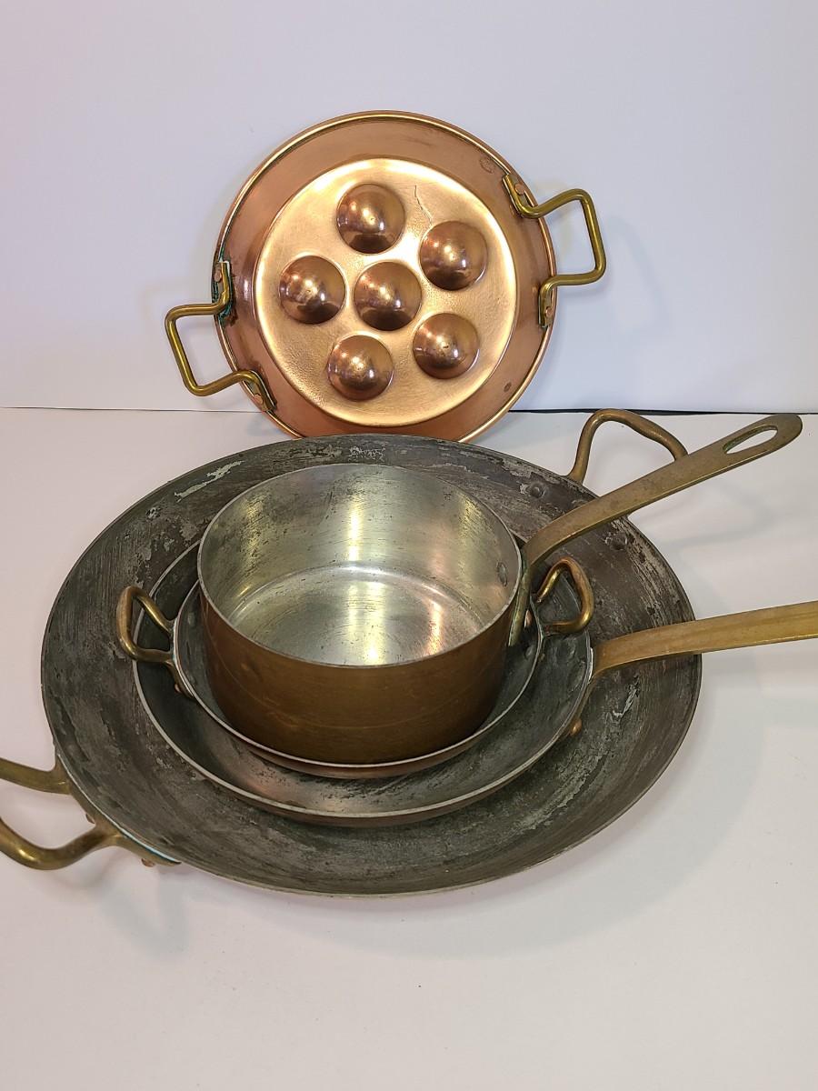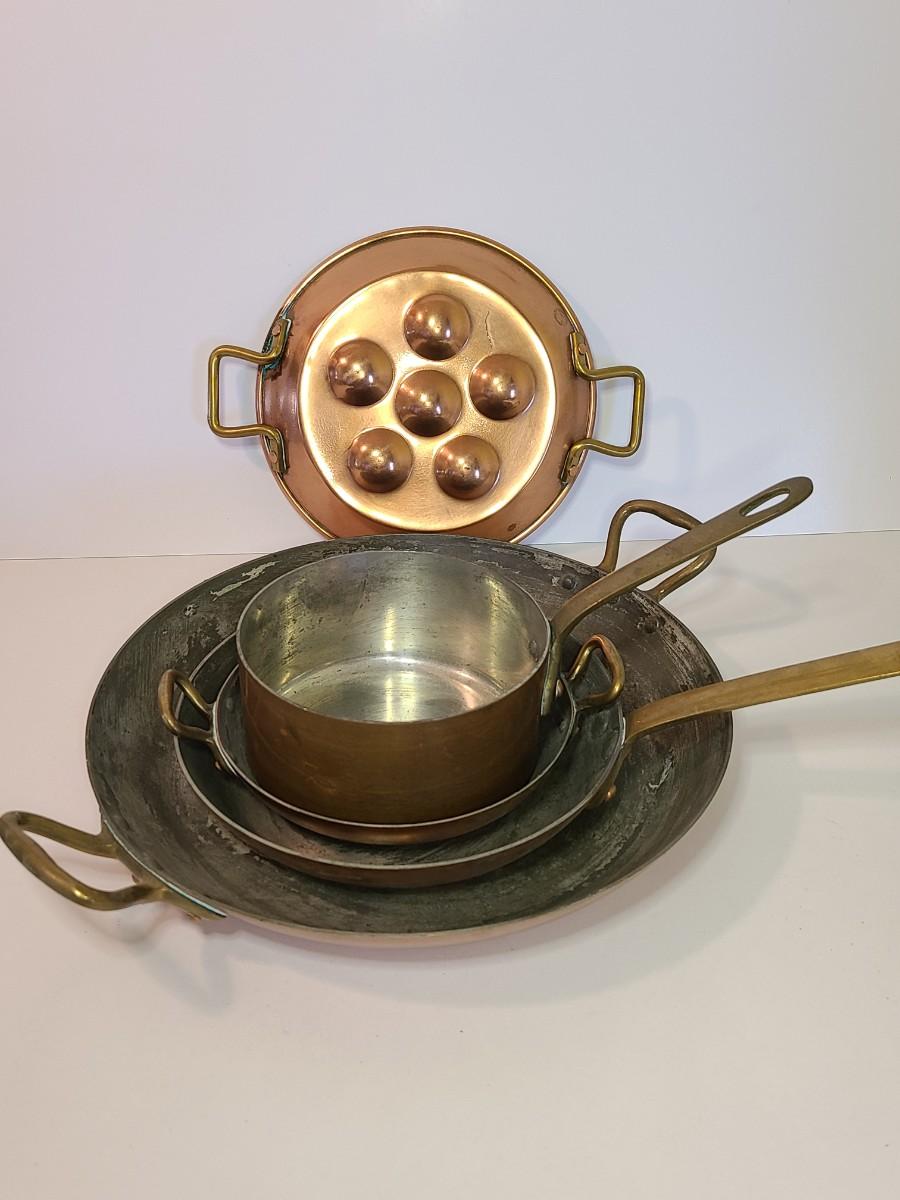 Mixed lot of made in France copper and tin pans. Please see all pictures as they are the best representation of the items. The pictures show condition, measurements if taken, and what is included in the lot. Due to the large amount that we photograph and the time frame, we are not always able to take measurements. All items unless noted, are pre-owned and have been used. If you purchased furniture, you must bring help. We do not allow one person to carry large furniture out on their own. Bring help, tools and a truck for the safety of our client’s homes, and your personal safety. Any damages that result to the property including walls, and floors due to moving of the furniture will be charged to the buyer. Company policy. Thank you.