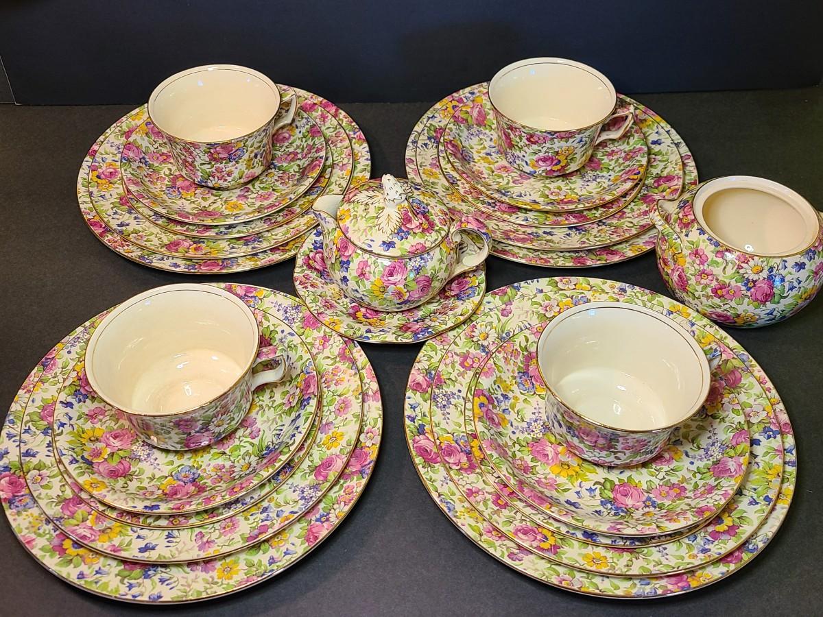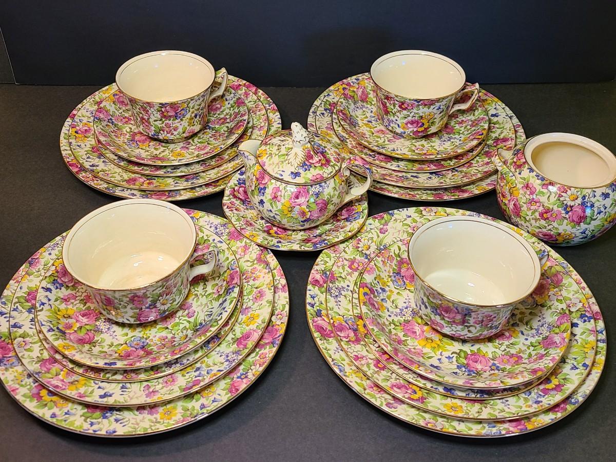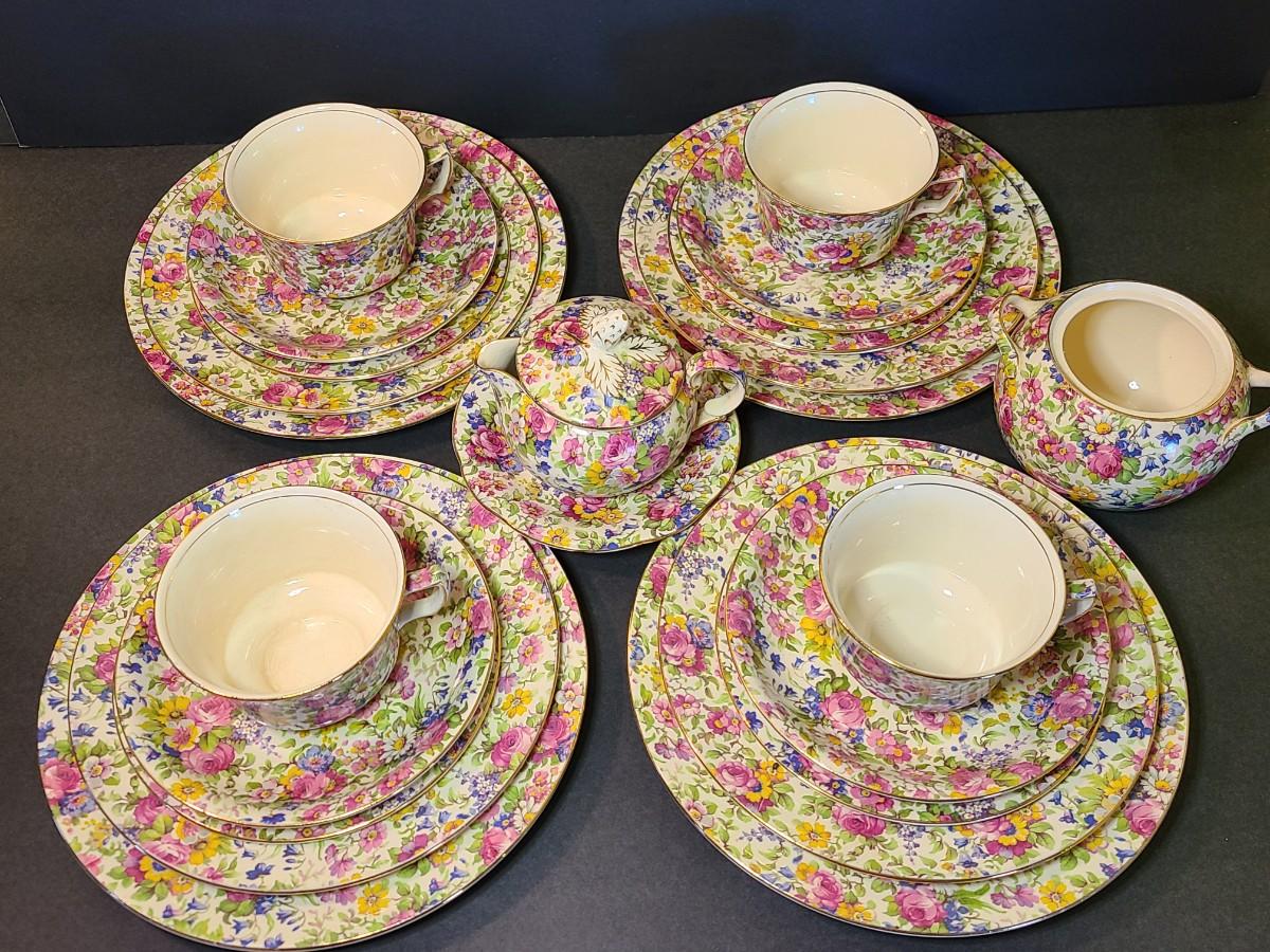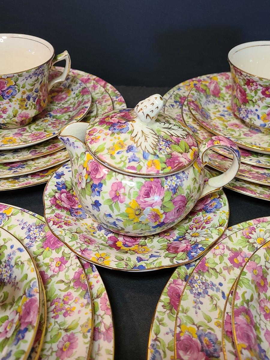 LOT 72: Royal Winton "Summertime" Chintz Tea Service for Four