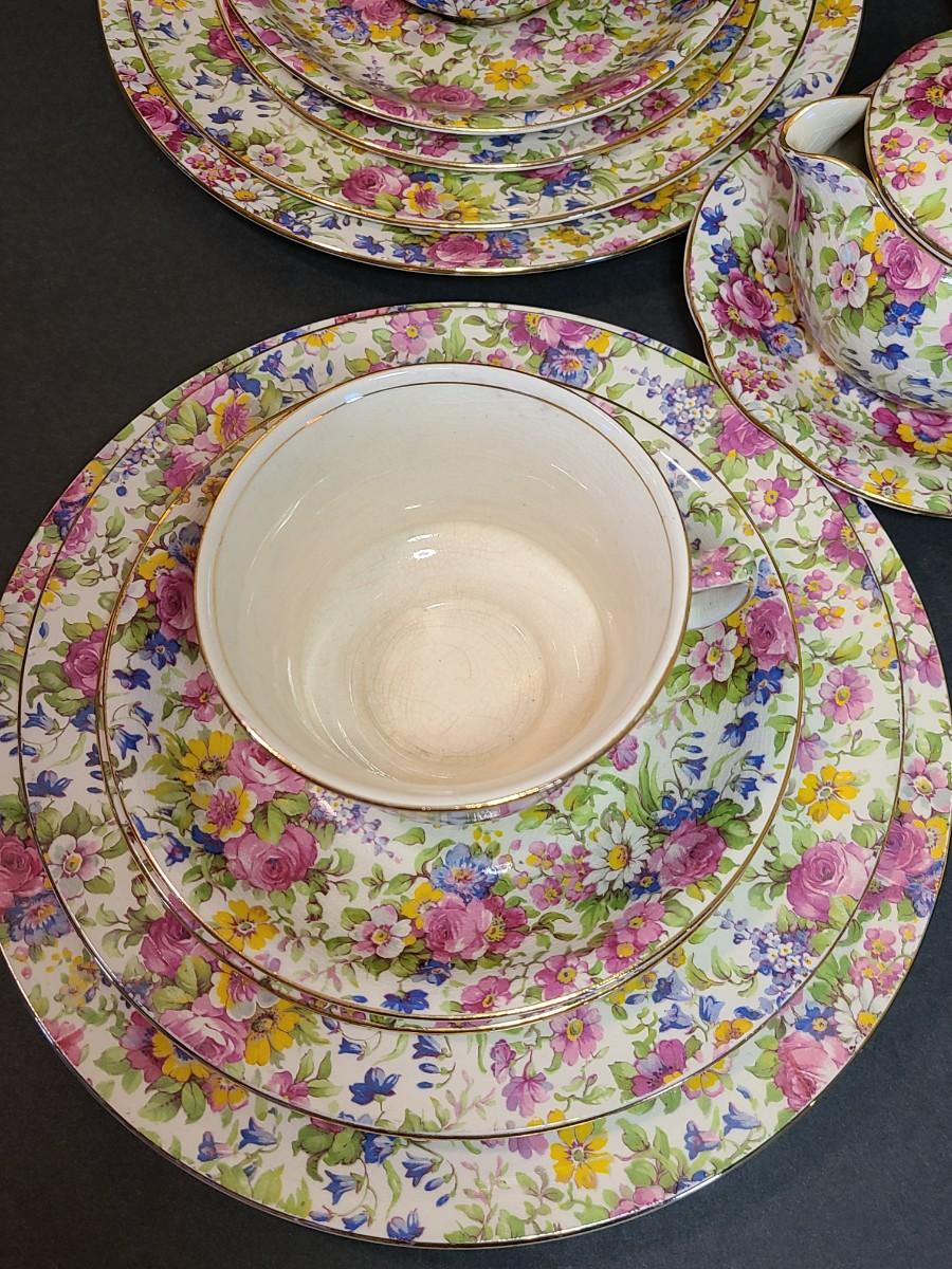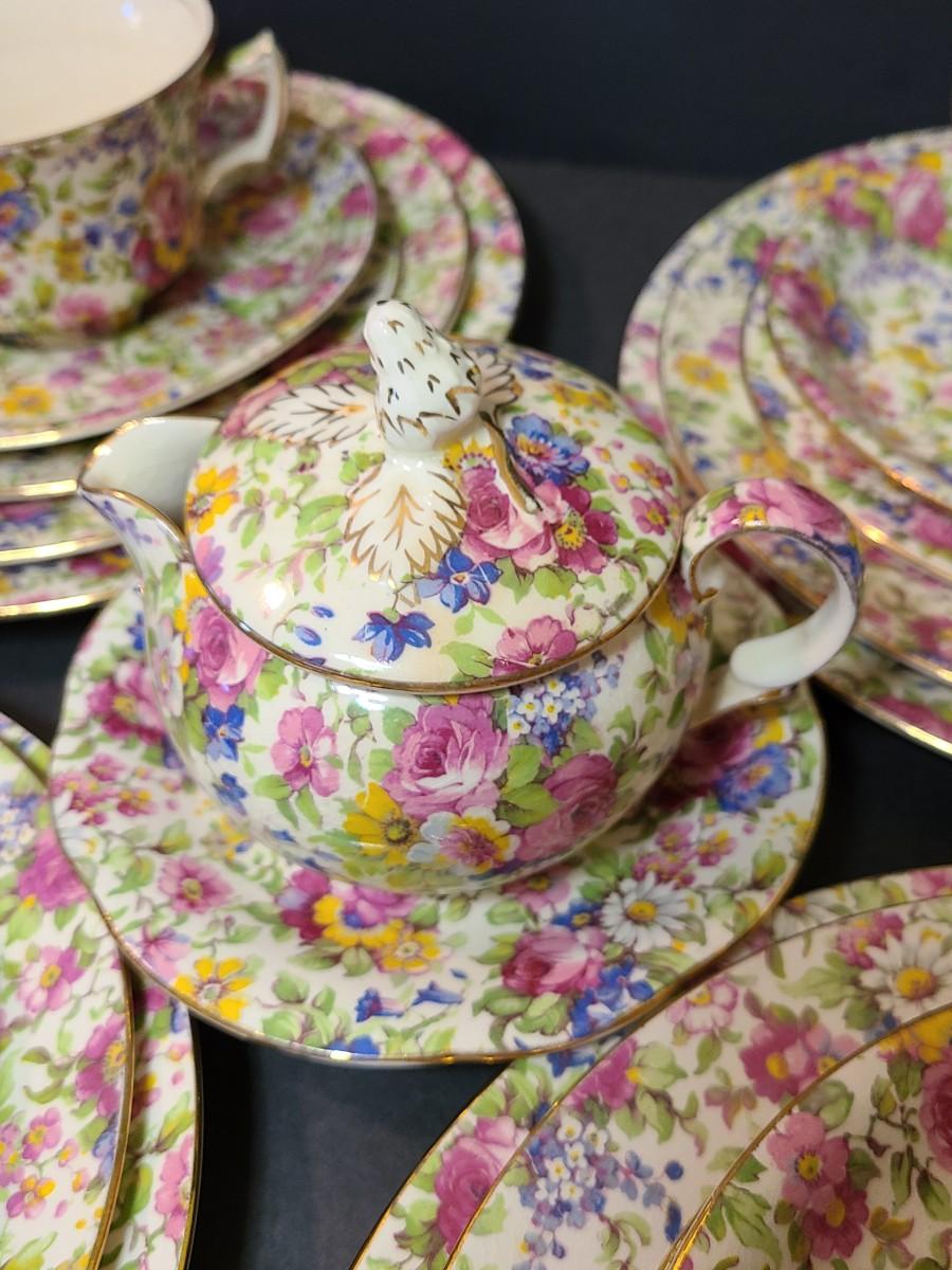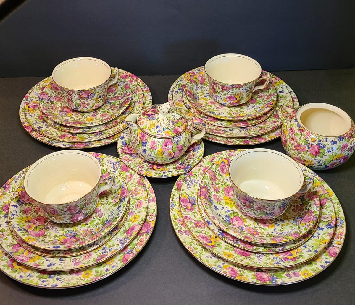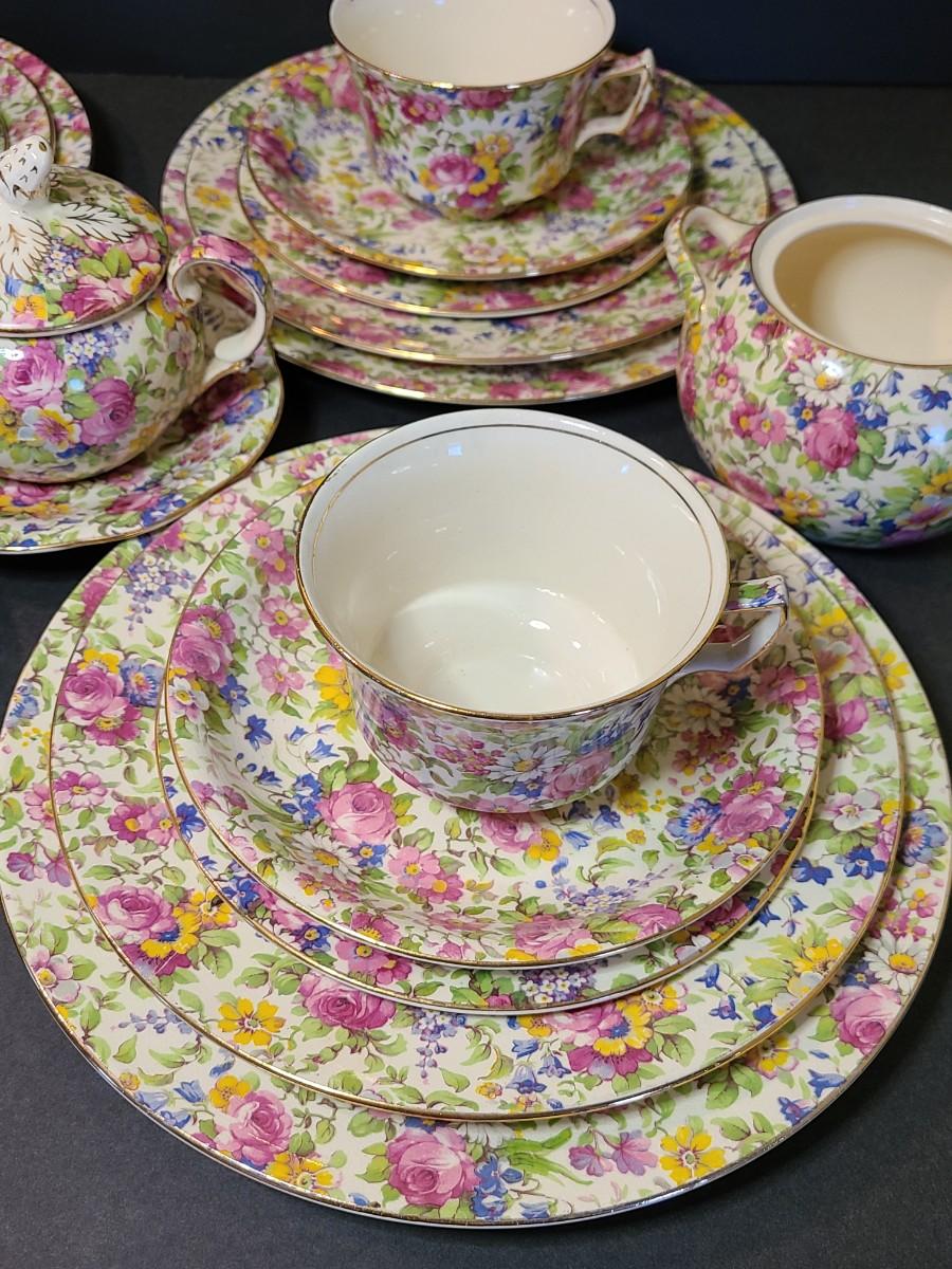 LOT 72: Royal Winton "Summertime" Chintz Tea Service for Four