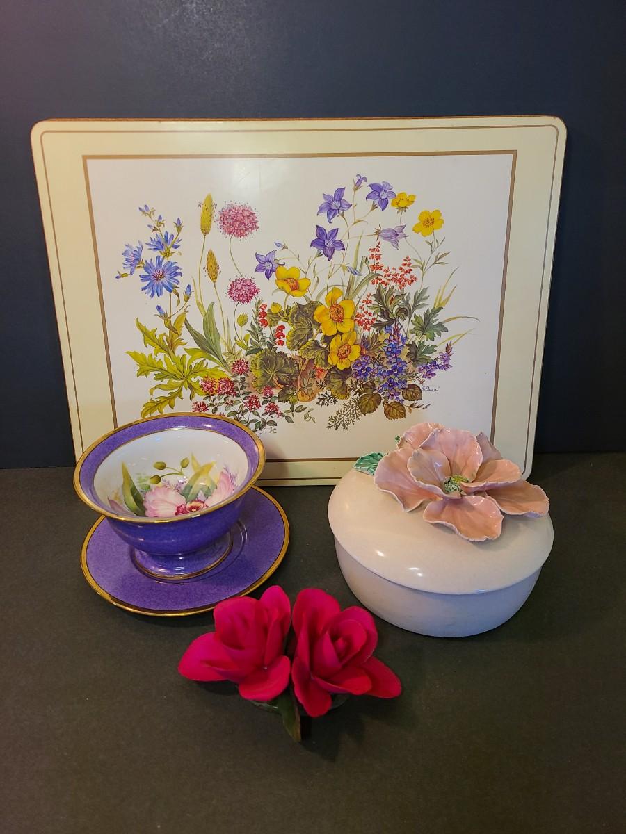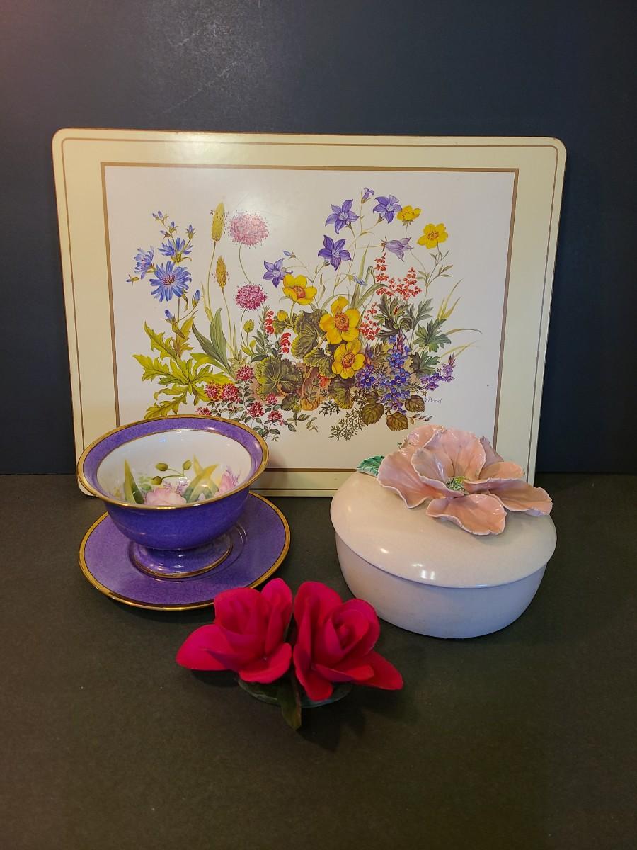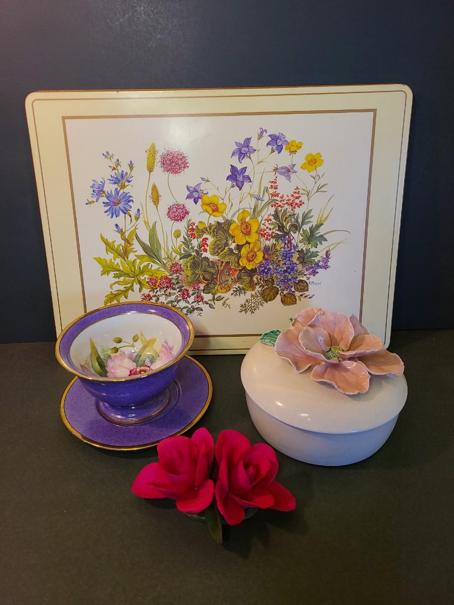 LOT 73: Floral Placemats, Vintage Ceramic Vanity Box, and More