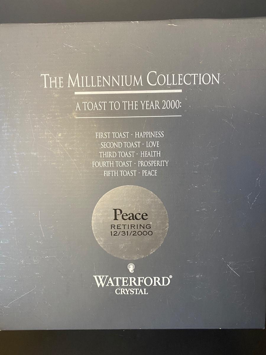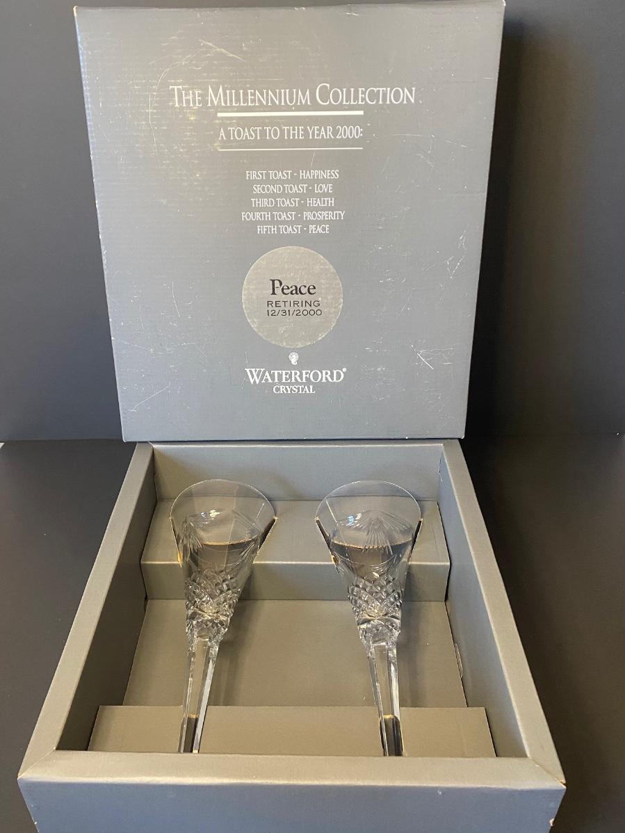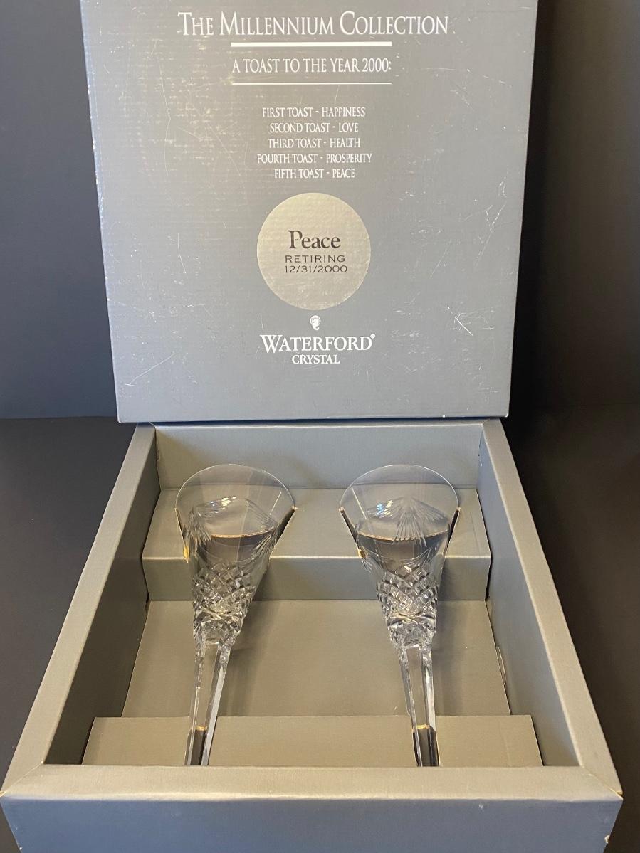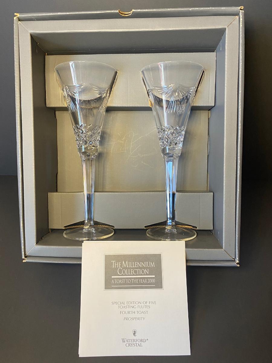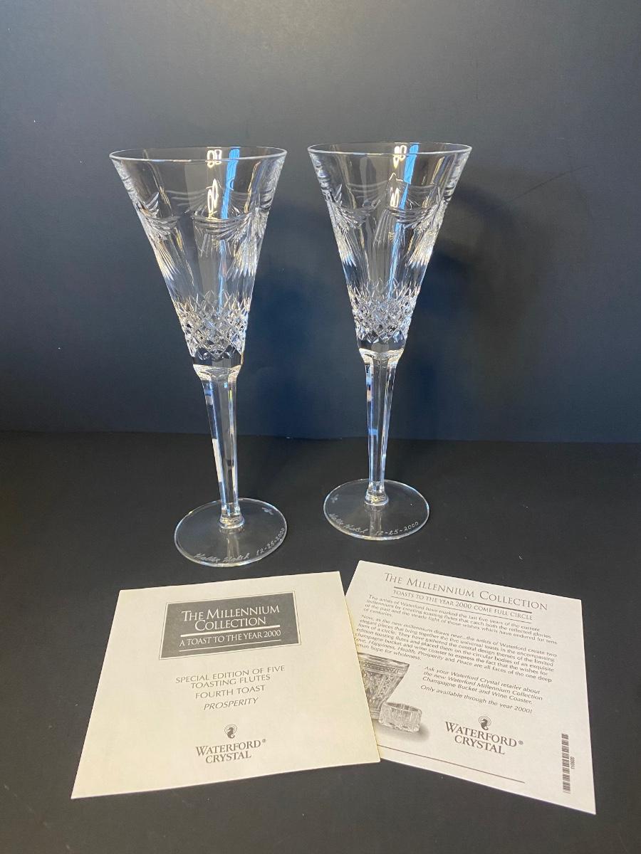 Set of Waterford Crystal new in box. “Prosperity” Toasting flutes from the Millennium Collection. Signed by Walter Walsh. Please see all pictures as they are the best representation of the items. The pictures show condition, measurements if taken, and what is included in the lot. Due to the large amount that we photograph and the time frame, we are not always able to take measurements. All items unless noted, are pre-owned and have been used. If you purchased furniture, you must bring help. We do not allow one person to carry large furniture out on their own. Bring help, tools and a truck for the safety of our client’s homes, and your personal safety. Any damages that result to the property including walls, and floors due to moving of the furniture will be charged to the buyer. Company policy. Thank you.