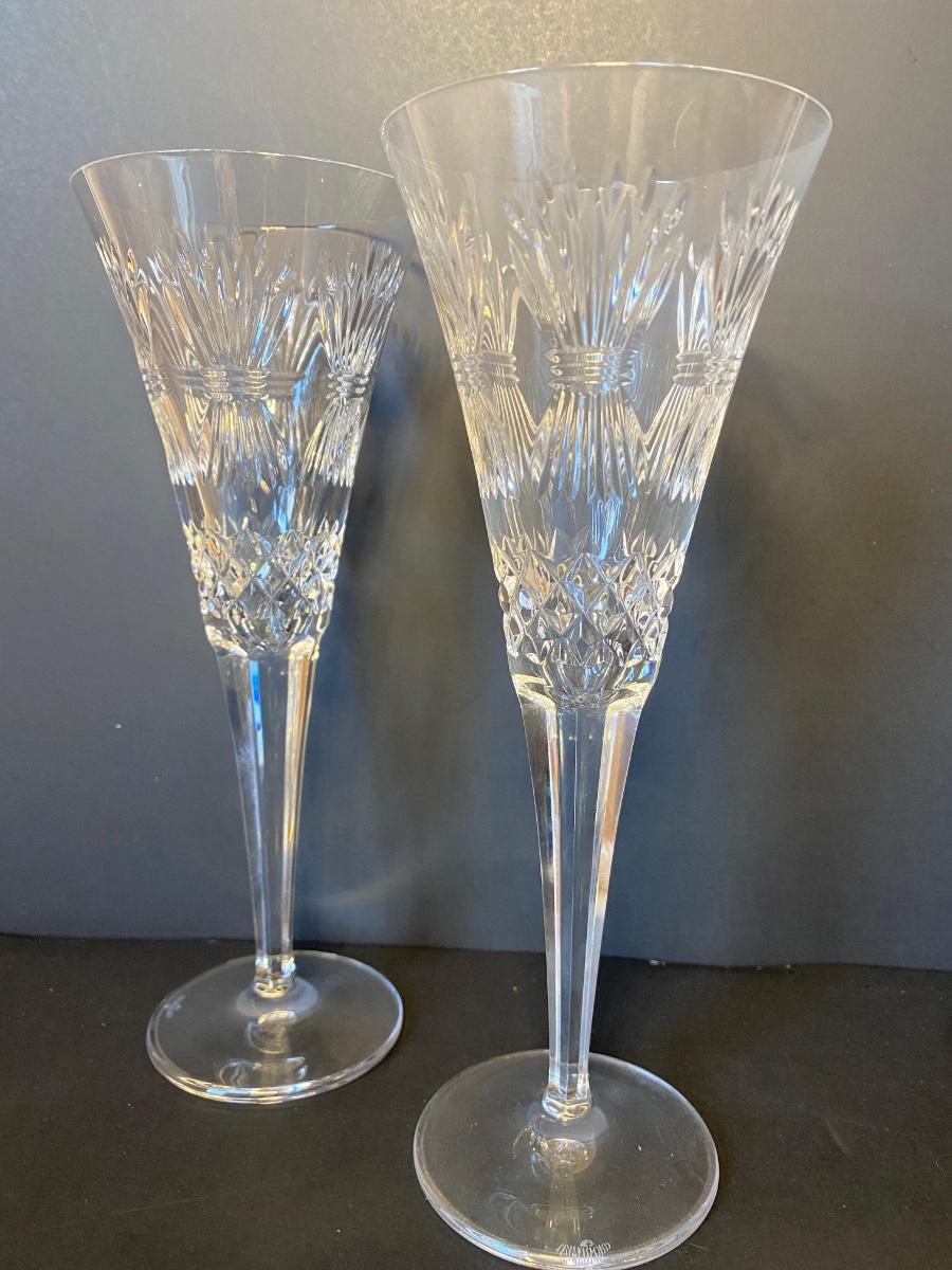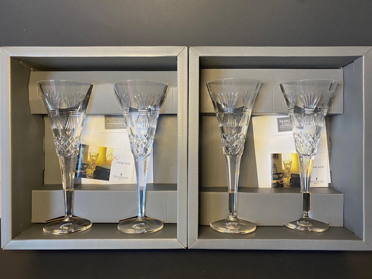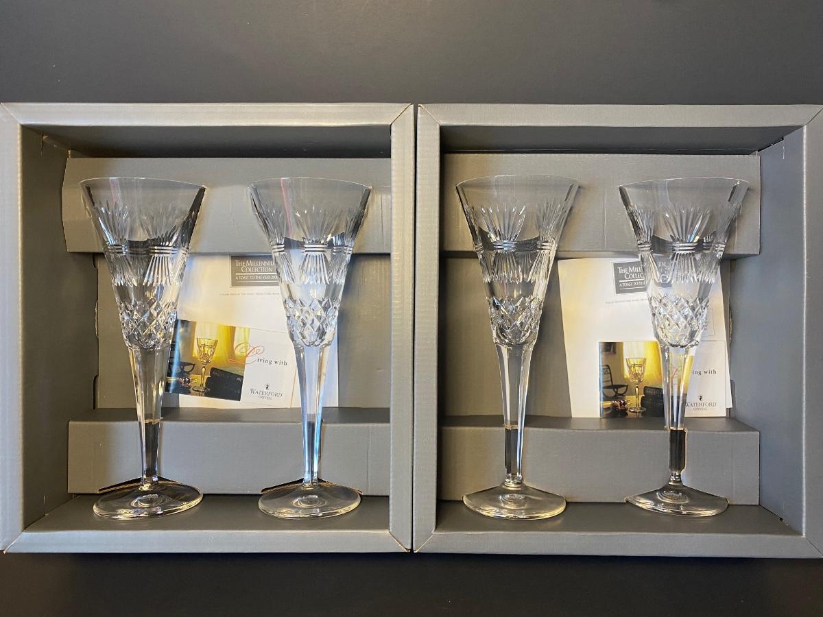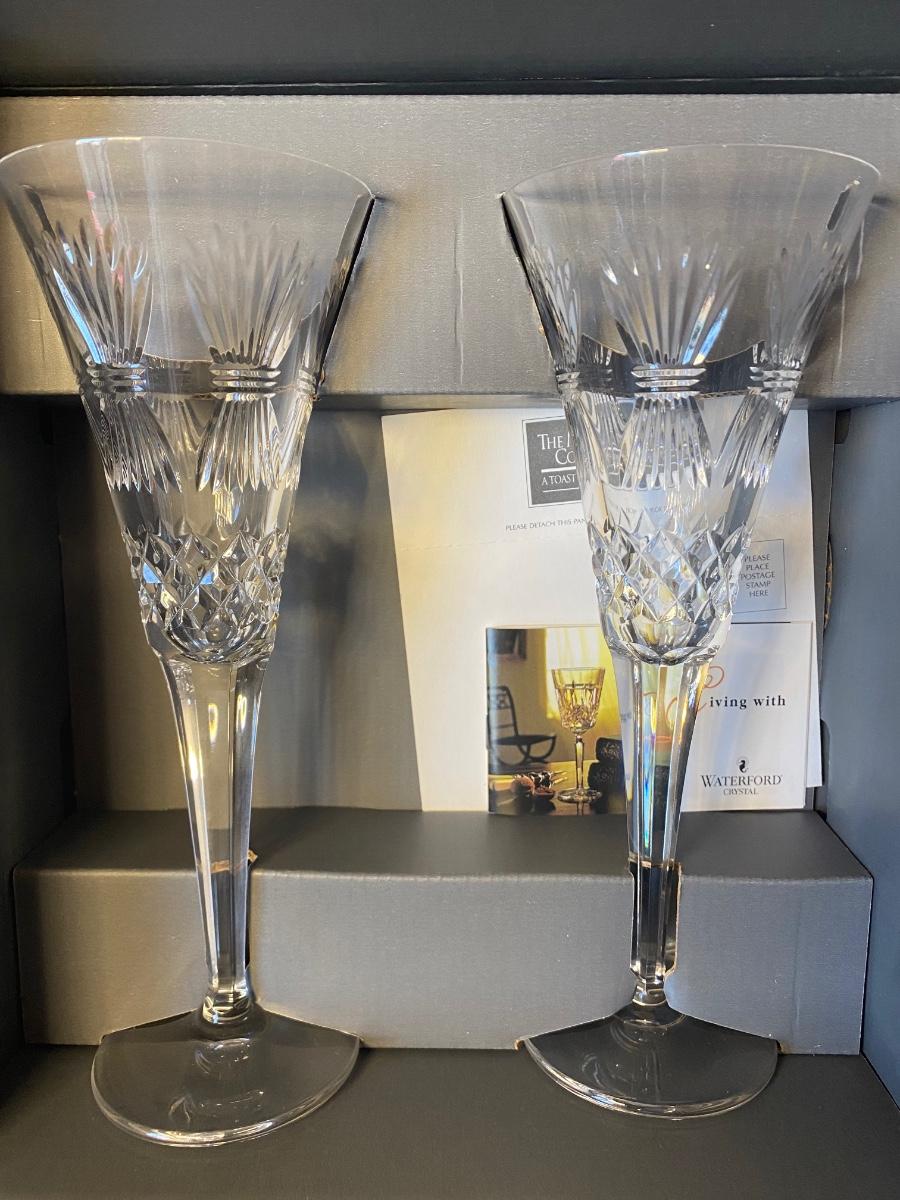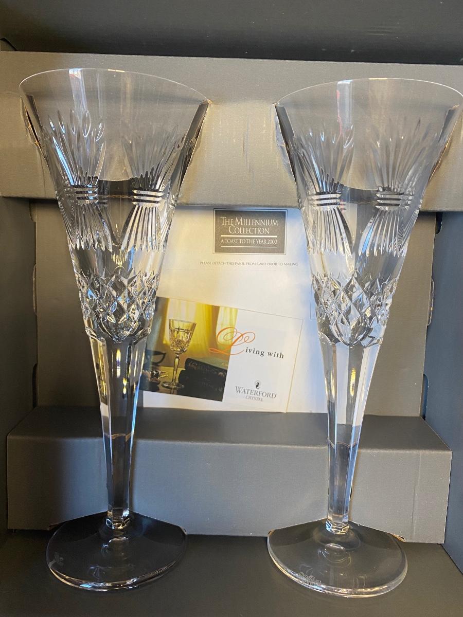 Two sets of toasting flutes new in box. Waterford Crystal “Prosperity” Millennium collection. Please see all pictures as they are the best representation of the items. The pictures show condition, measurements if taken, and what is included in the lot. Due to the large amount that we photograph and the time frame, we are not always able to take measurements. All items unless noted, are pre-owned and have been used. If you purchased furniture, you must bring help. We do not allow one person to carry large furniture out on their own. Bring help, tools and a truck for the safety of our client’s homes, and your personal safety. Any damages that result to the property including walls, and floors due to moving of the furniture will be charged to the buyer. Company policy. Thank you.