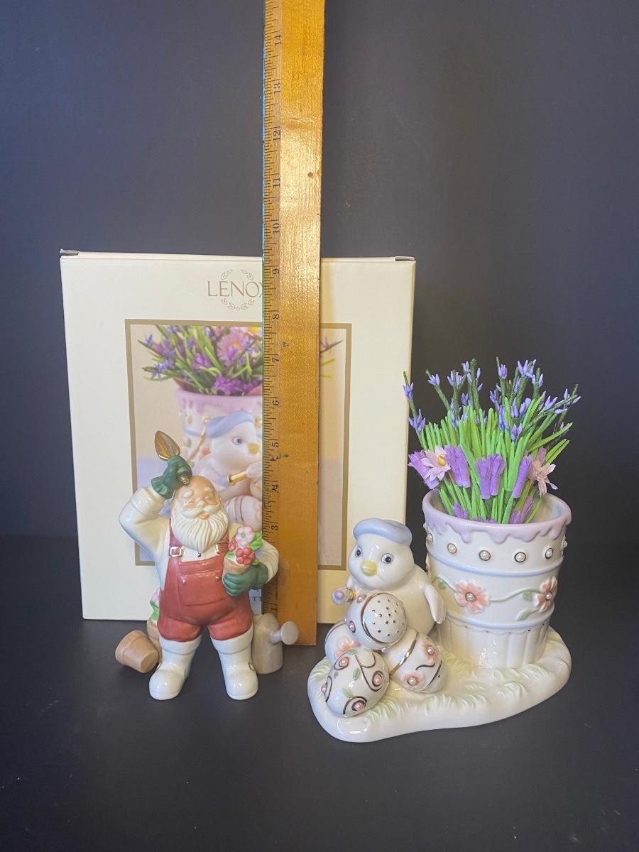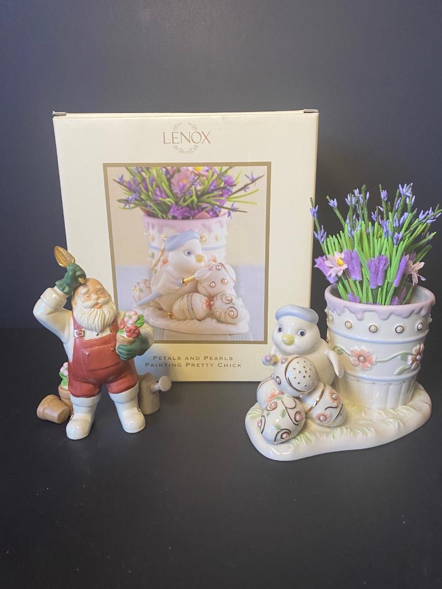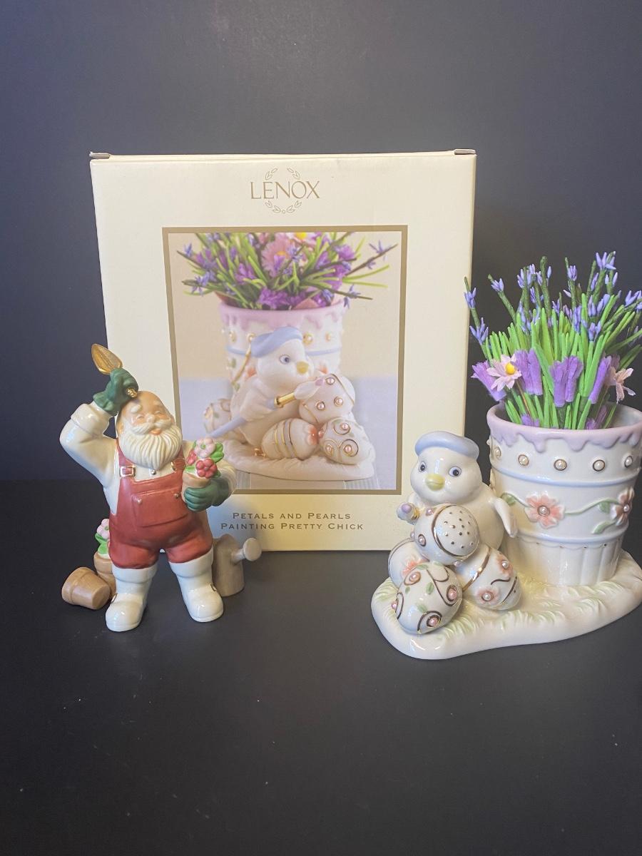 Lenox spring decor. Petals and pearls painting pretty chick vase w box. Lenox Santa Doing his spring gardening. Please see all pictures as they are the best representation of the items. The pictures show condition, measurements if taken, and what is included in the lot. Due to the large amount that we photograph and the time frame, we are not always able to take measurements. All items unless noted, are pre-owned and have been used. If you purchased furniture, you must bring help. We do not allow one person to carry large furniture out on their own. Bring help, tools and a truck for the safety of our client’s homes, and your personal safety. Any damages that result to the property including walls, and floors due to moving of the furniture will be charged to the buyer. Company policy. Thank you.
