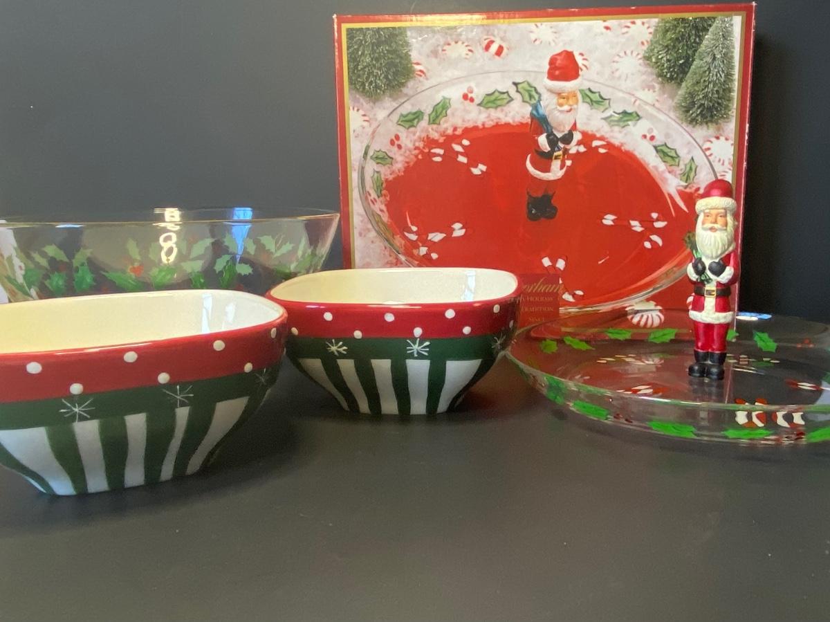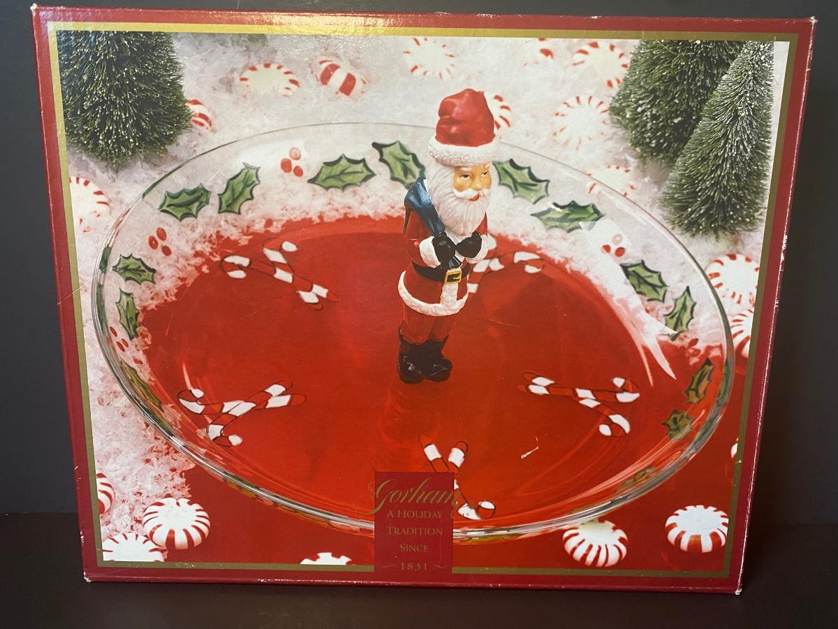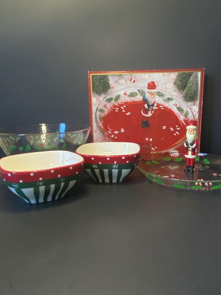 Gorham Santa serving plate w box, Messa Christmas bowls and holly trimmed glass serving bowl. Please see all pictures as they are the best representation of the items. The pictures show condition, measurements if taken, and what is included in the lot. Due to the large amount that we photograph and the time frame, we are not always able to take measurements. All items unless noted, are pre-owned and have been used. If you purchased furniture, you must bring help. We do not allow one person to carry large furniture out on their own. Bring help, tools and a truck for the safety of our client’s homes, and your personal safety. Any damages that result to the property including walls, and floors due to moving of the furniture will be charged to the buyer. Company policy. Thank you.