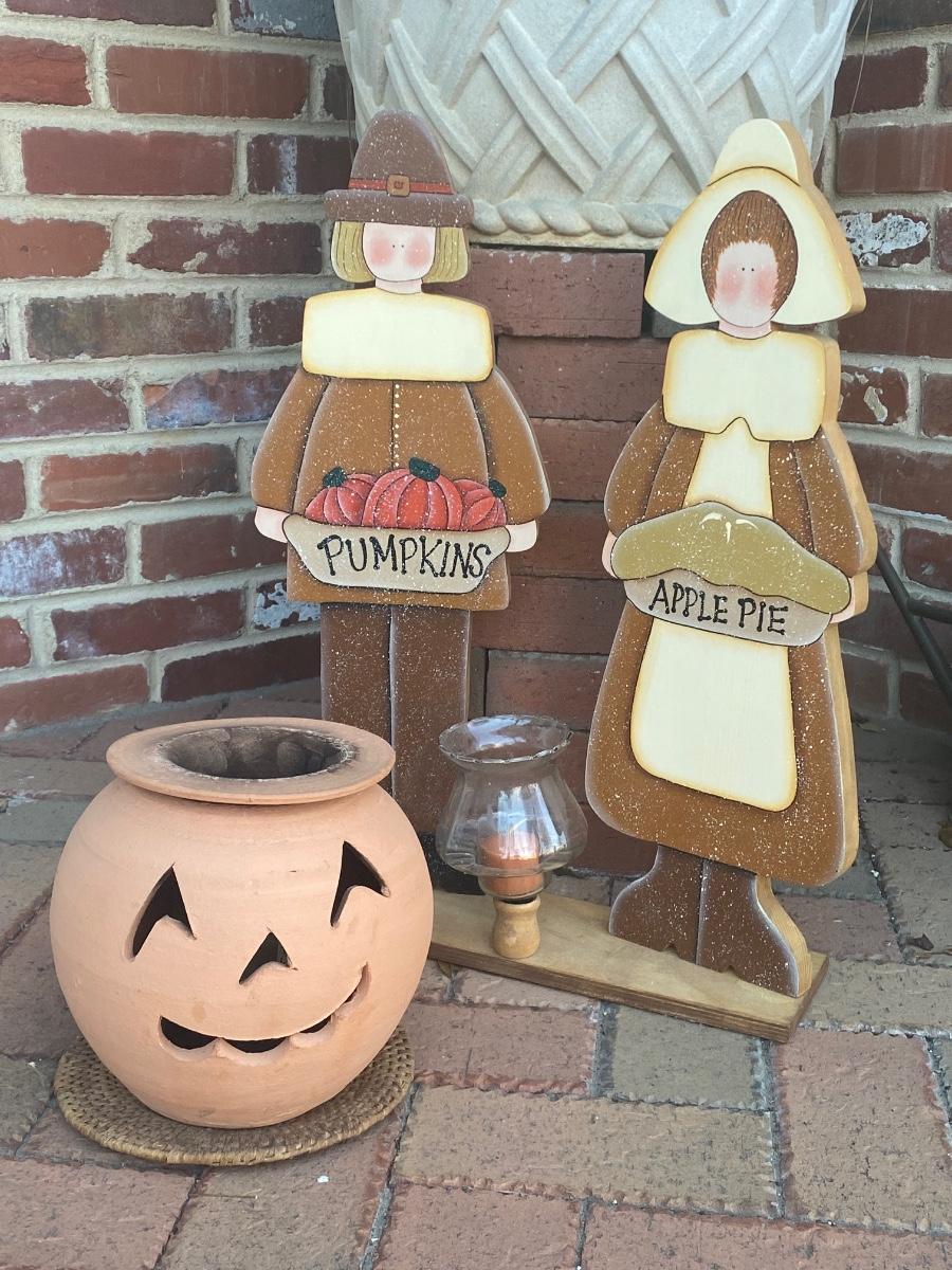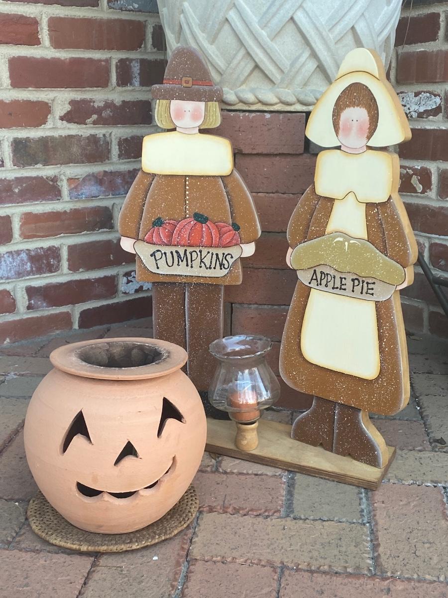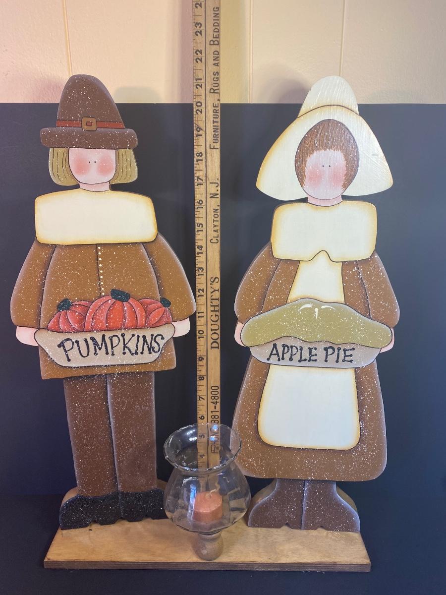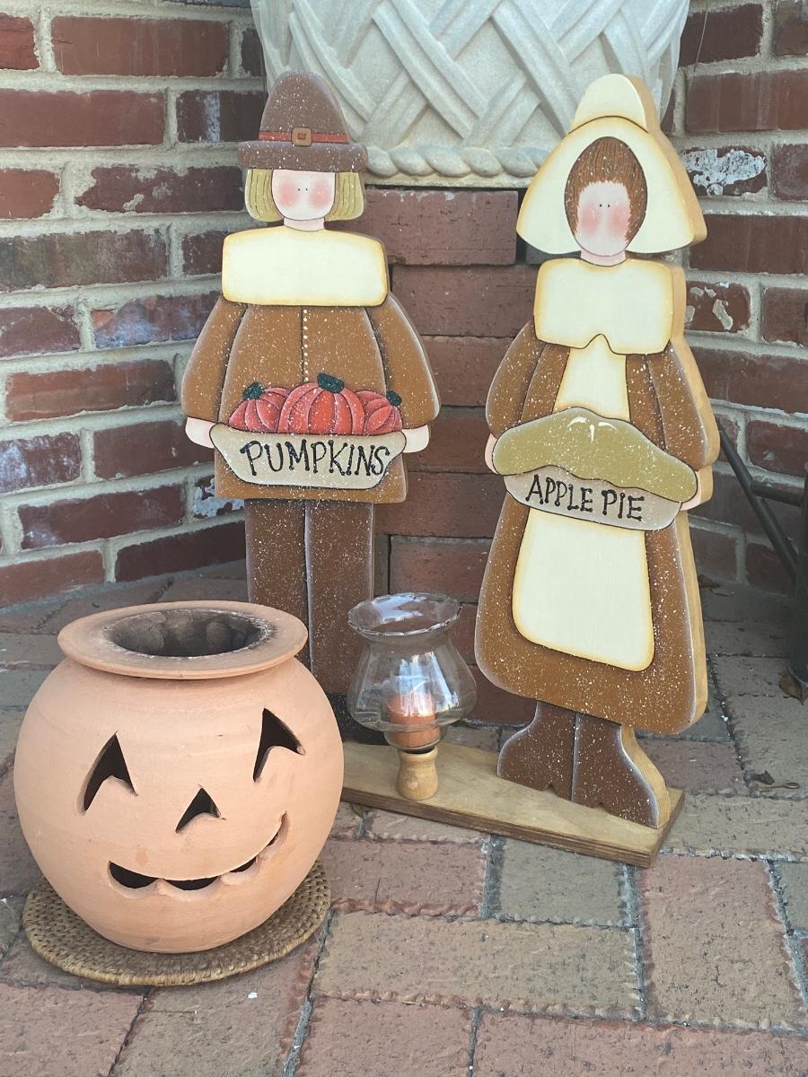 Terra-cotta pumpkin and wood pilgrims. Please see all pictures as they are the best representation of the items. The pictures show condition, measurements if taken, and what is included in the lot. Due to the large amount that we photograph and the time frame, we are not always able to take measurements. All items unless noted, are pre-owned and have been used. If you purchased furniture, you must bring help. We do not allow one person to carry large furniture out on their own. Bring help, tools and a truck for the safety of our client’s homes, and your personal safety. Any damages that result to the property including walls, and floors due to moving of the furniture will be charged to the buyer. Company policy. Thank you.