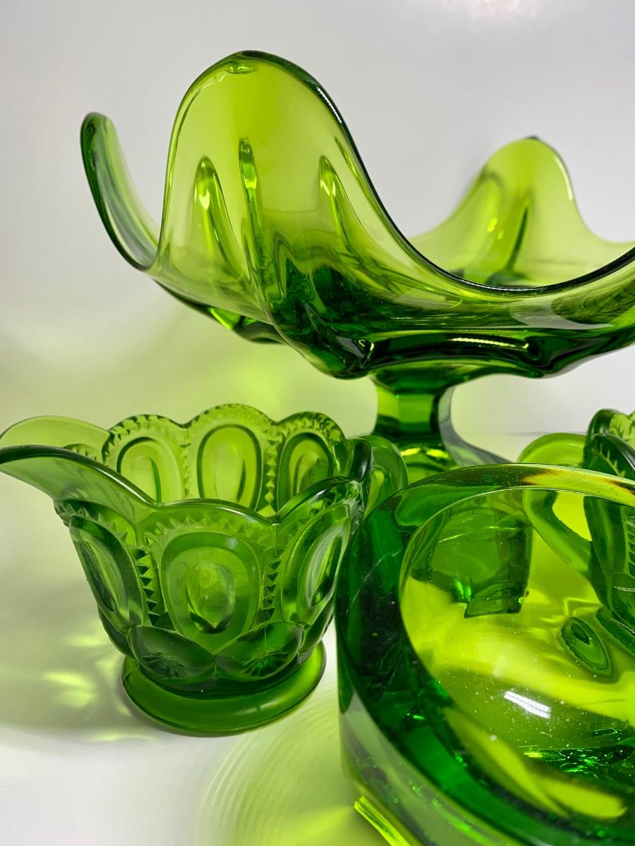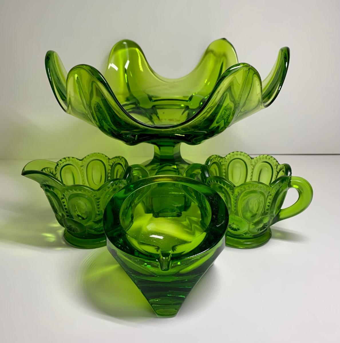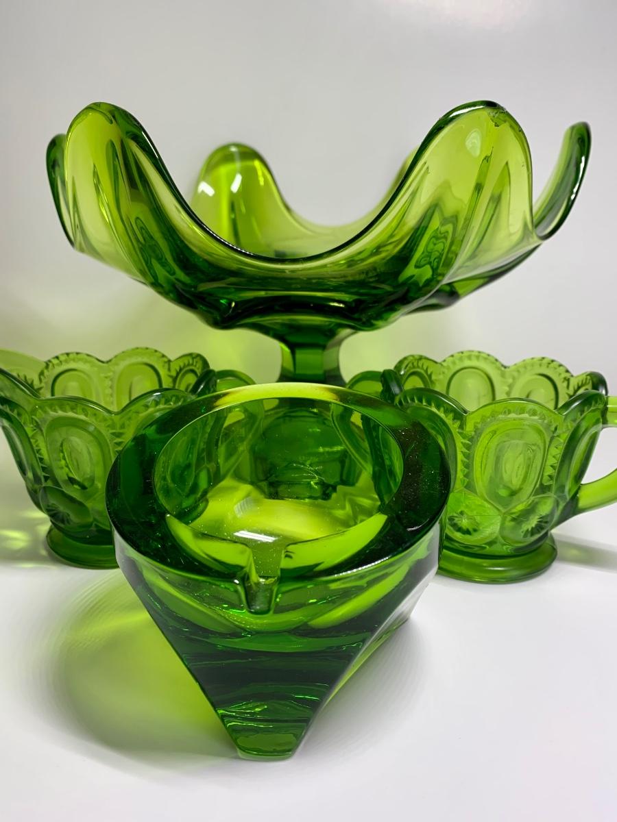 Lot 7R: Vintage Green Glass Collections: Footed Compote, Ashtray & More