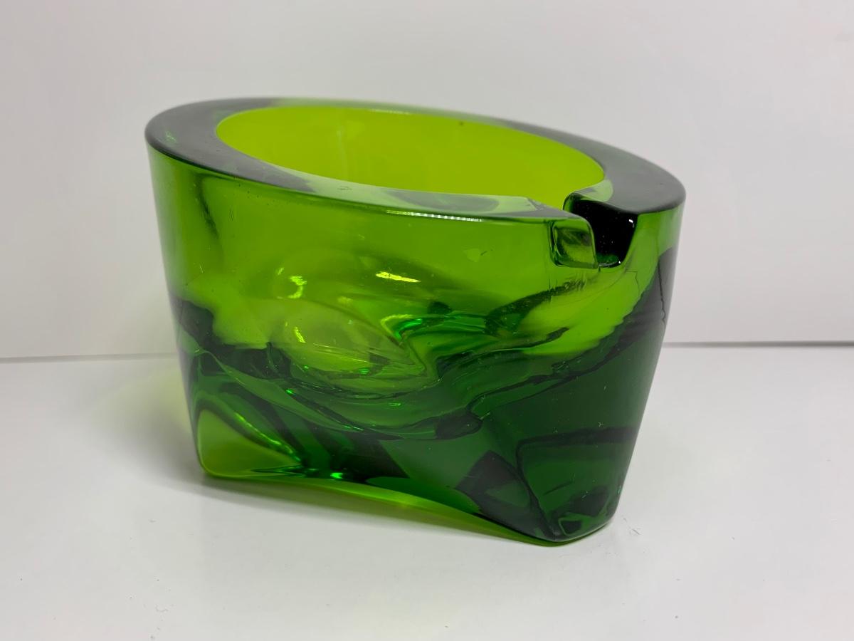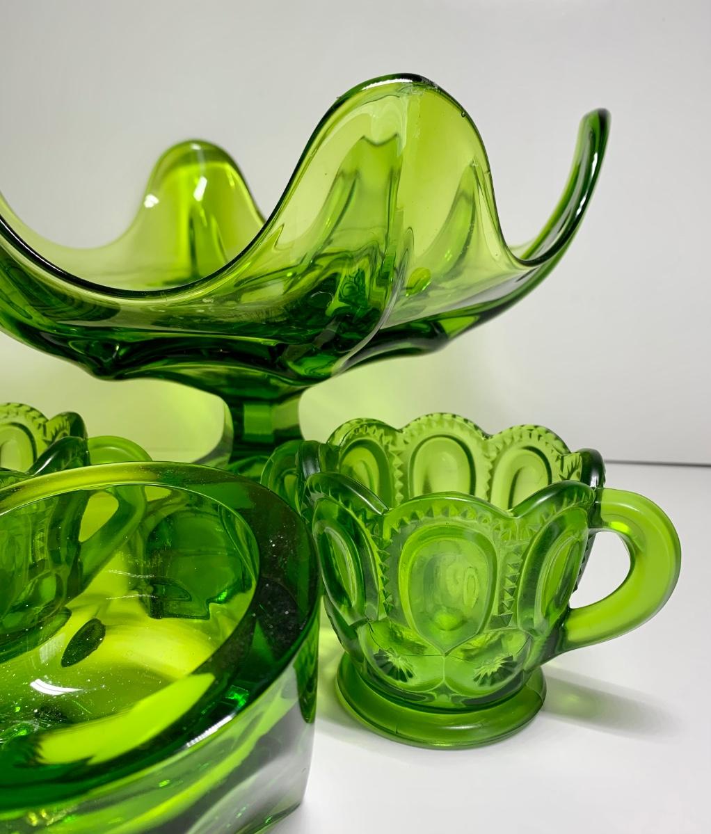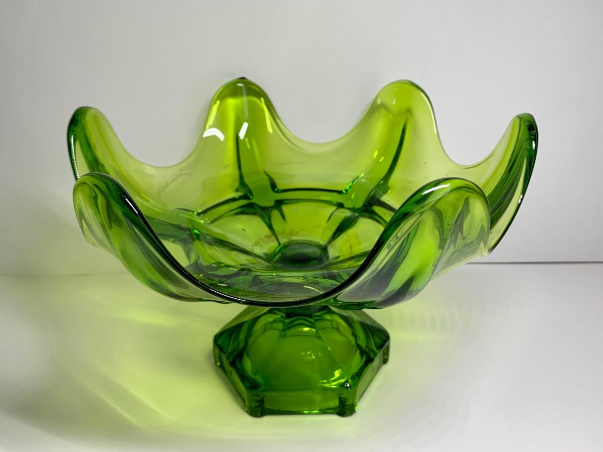 Lot 7R: Vintage Green Glass Collections: Footed Compote, Ashtray & More