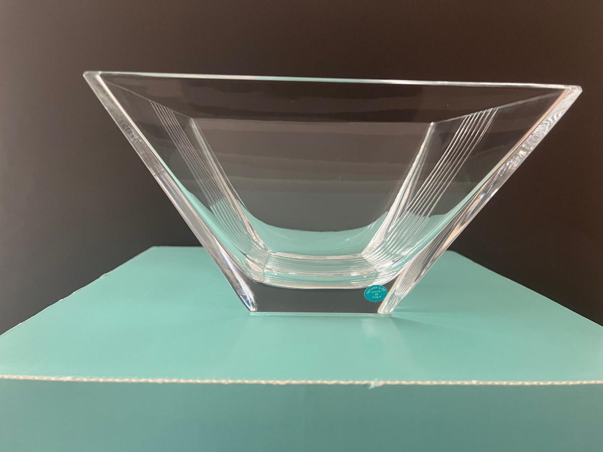 Beautiful, square crystal bowl. w/box 5”H x 10”W.