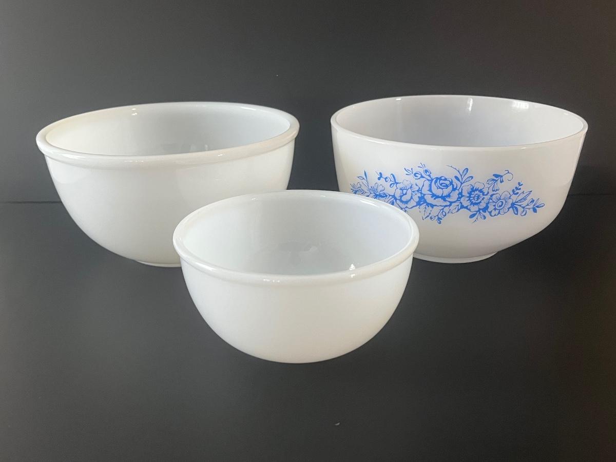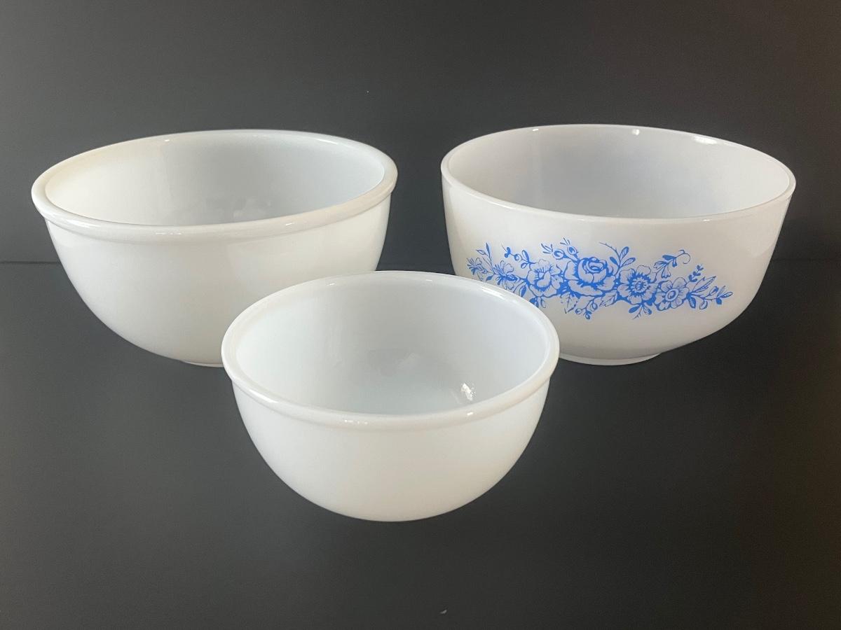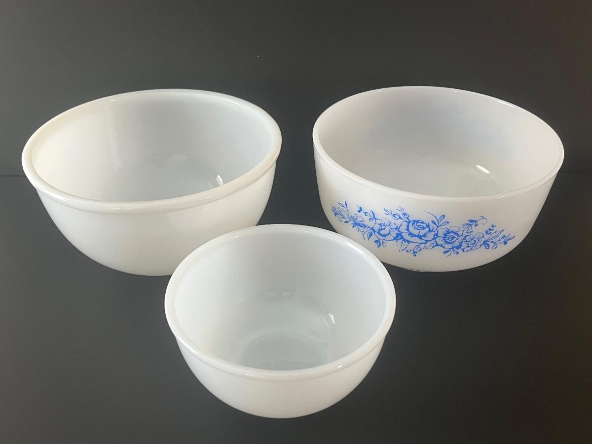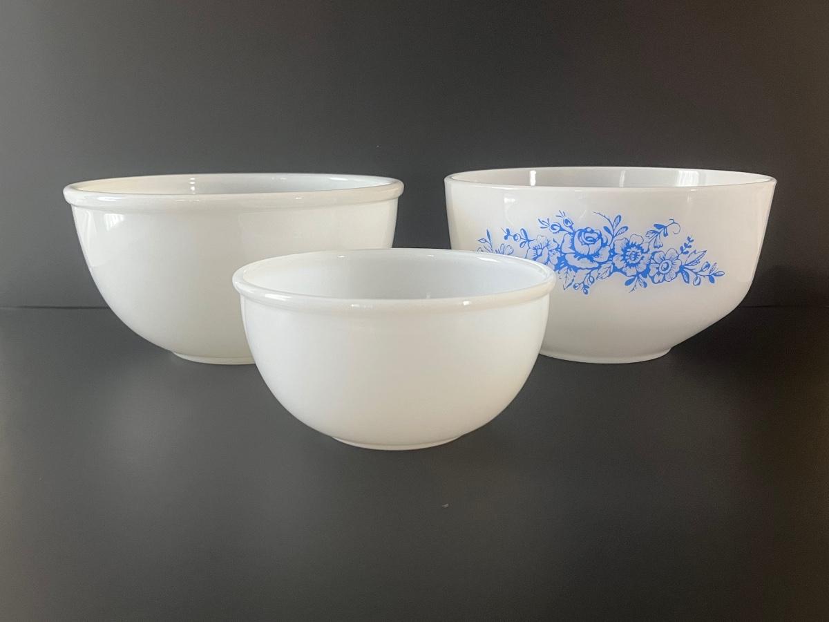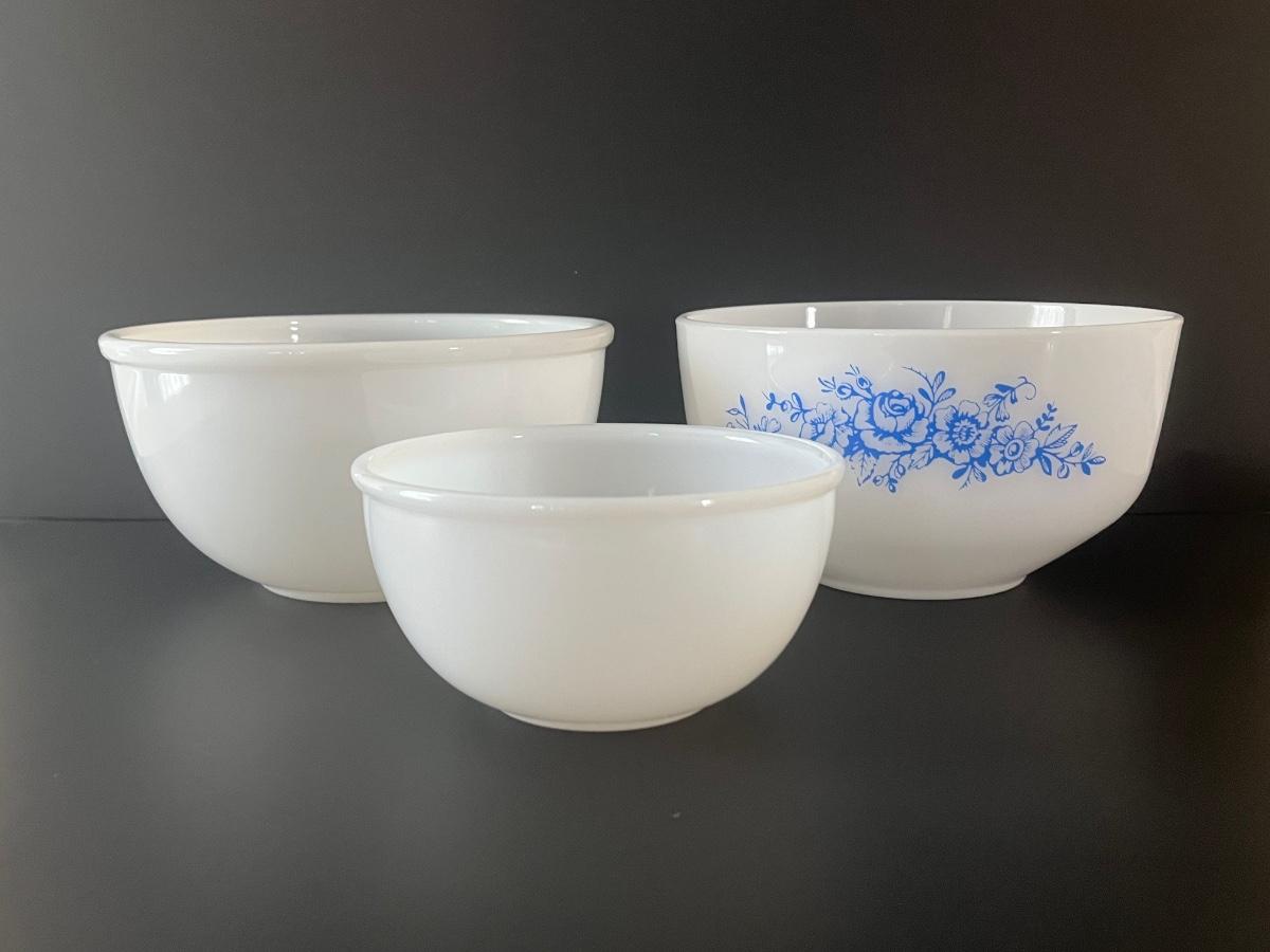Two white Anchor Hocking Mixing bowls, 1 white w/blue flowers Federal Glass mixing bowl. Please see all pictures as they are the best representation of the items. The pictures show condition, measurements if taken, and what is included in the lot. Due to the large amount that we photograph and the time frame, we are not always able to take measurements. All items unless noted, are pre-owned and have been used. If you purchased furniture, you must bring help. We do not allow one person to carry large furniture out on their own. Bring help, tools and a truck for the safety of our client’s homes, and your personal safety. Any damages that result to the property including walls, and floors due to moving of the furniture will be charged to the buyer. Company policy. Thank you.