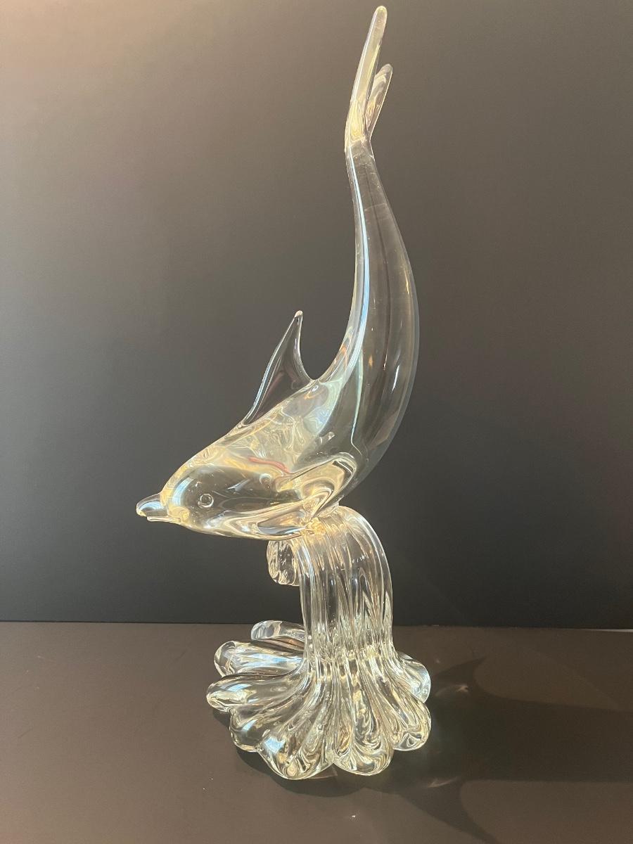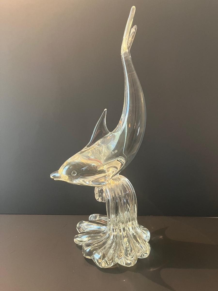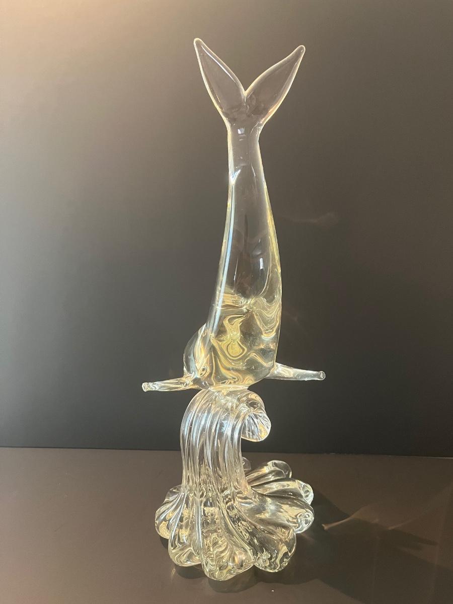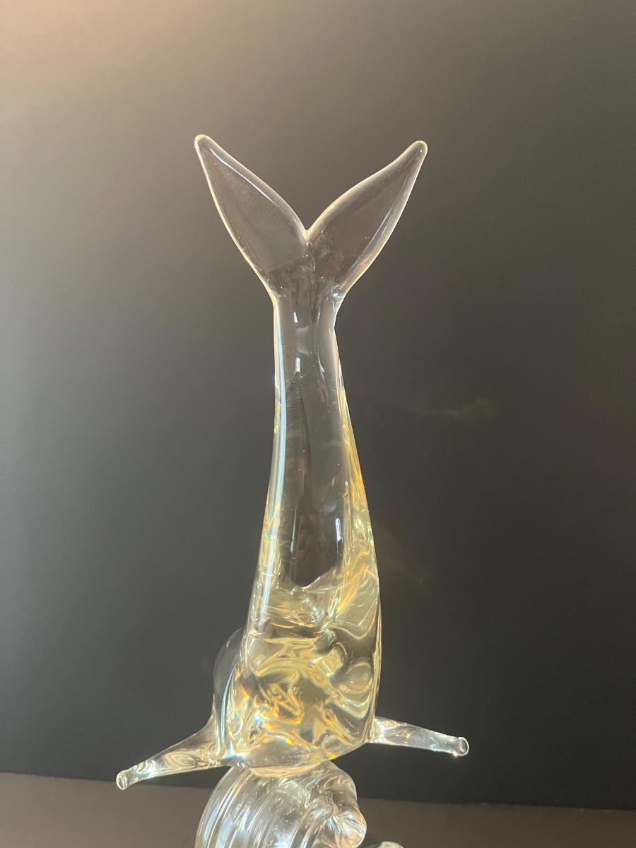 LOT 19C: Signed Vintage Murano Glass Dolphin on Wave (Large 15 inches)