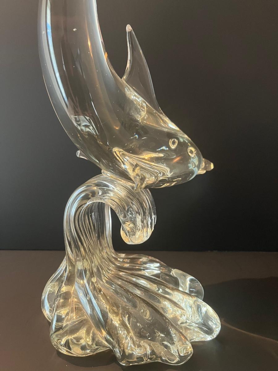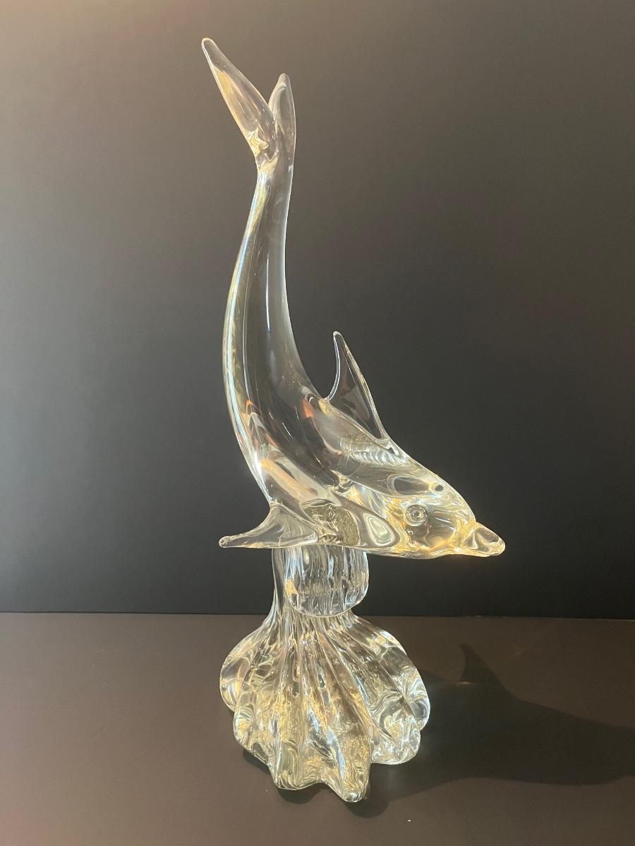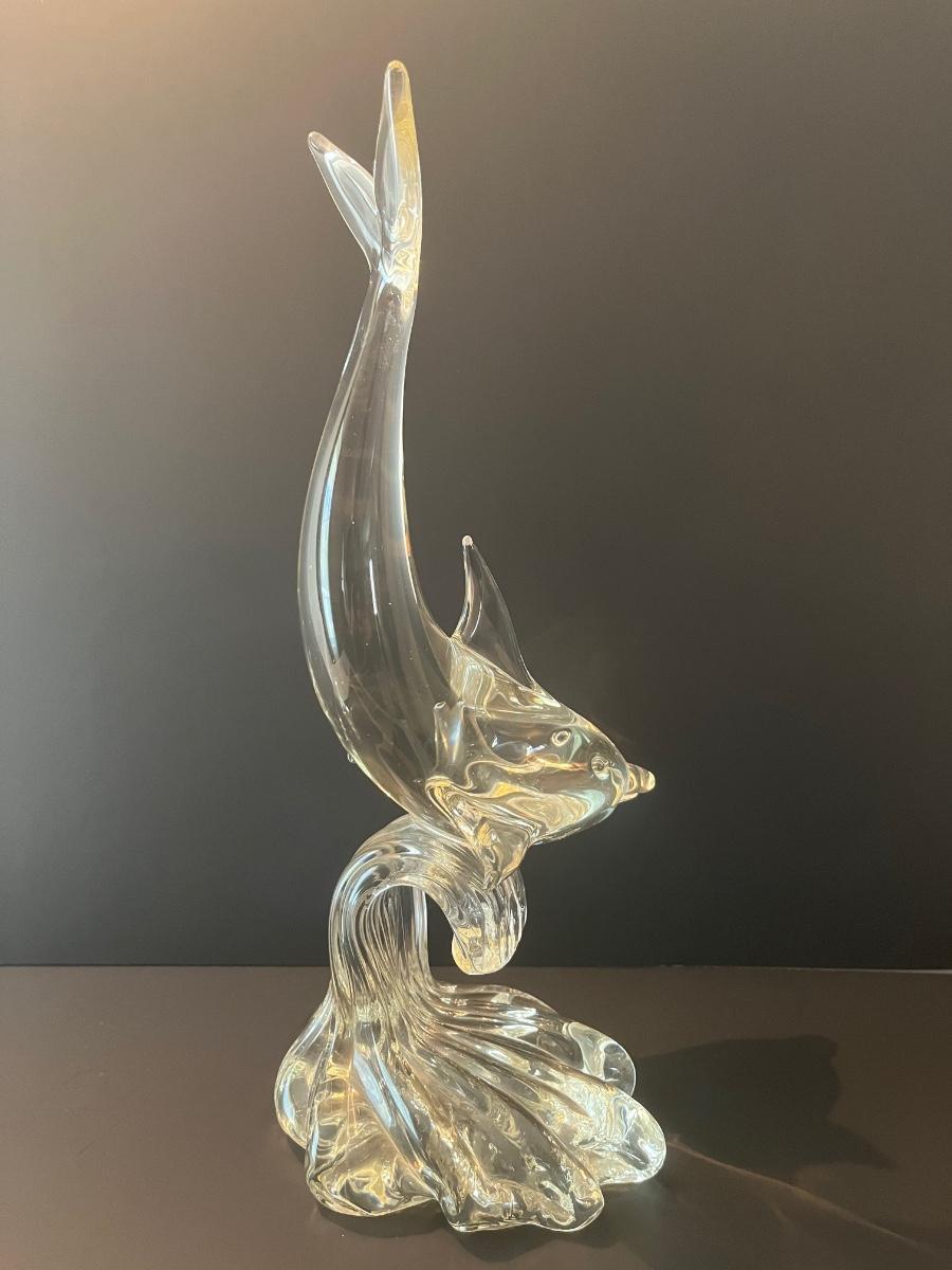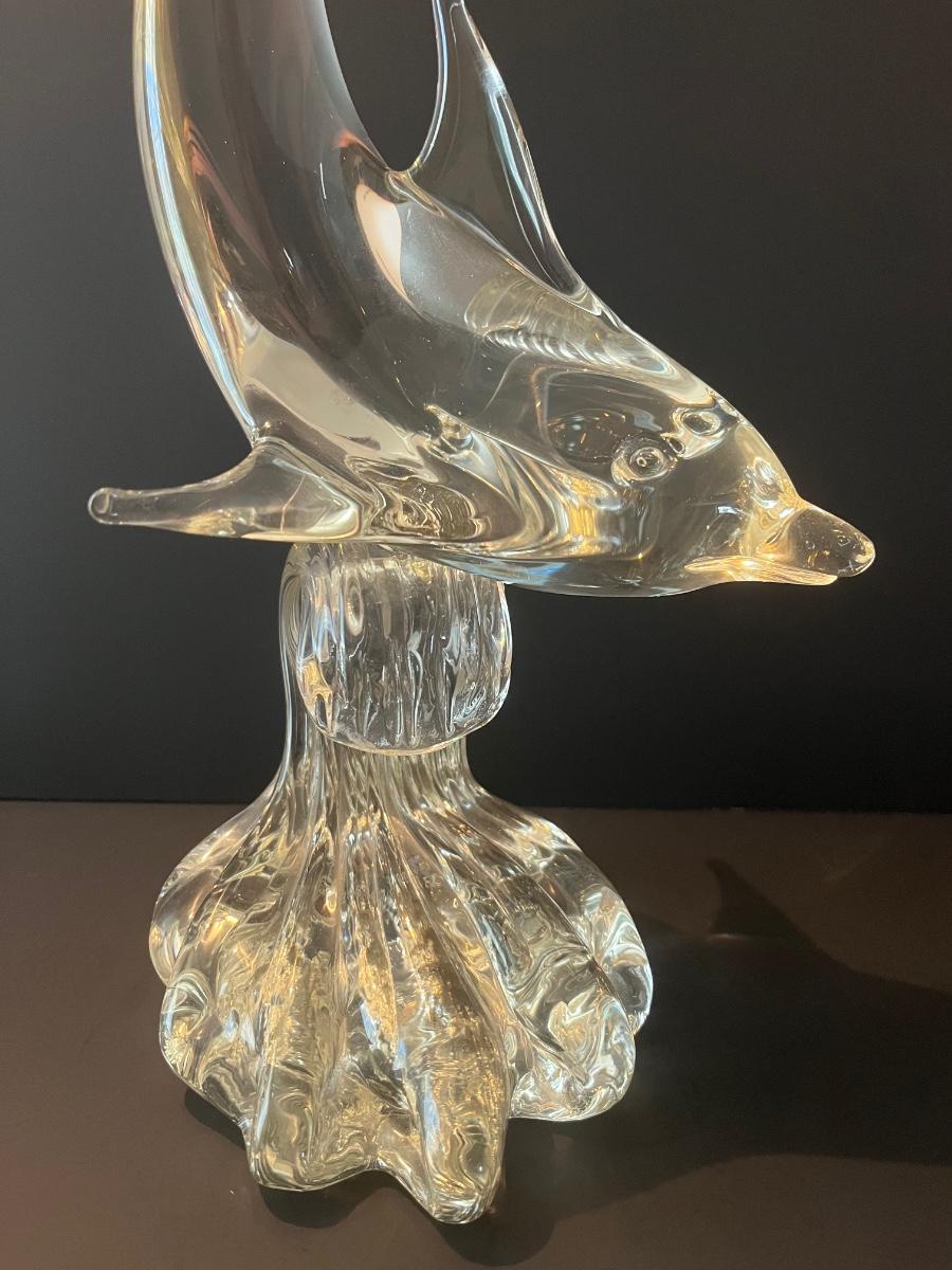 LOT 19C: Signed Vintage Murano Glass Dolphin on Wave (Large 15 inches)