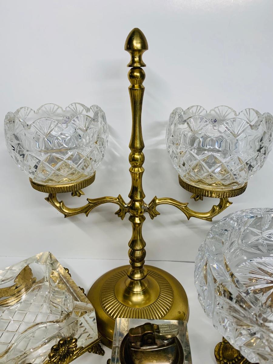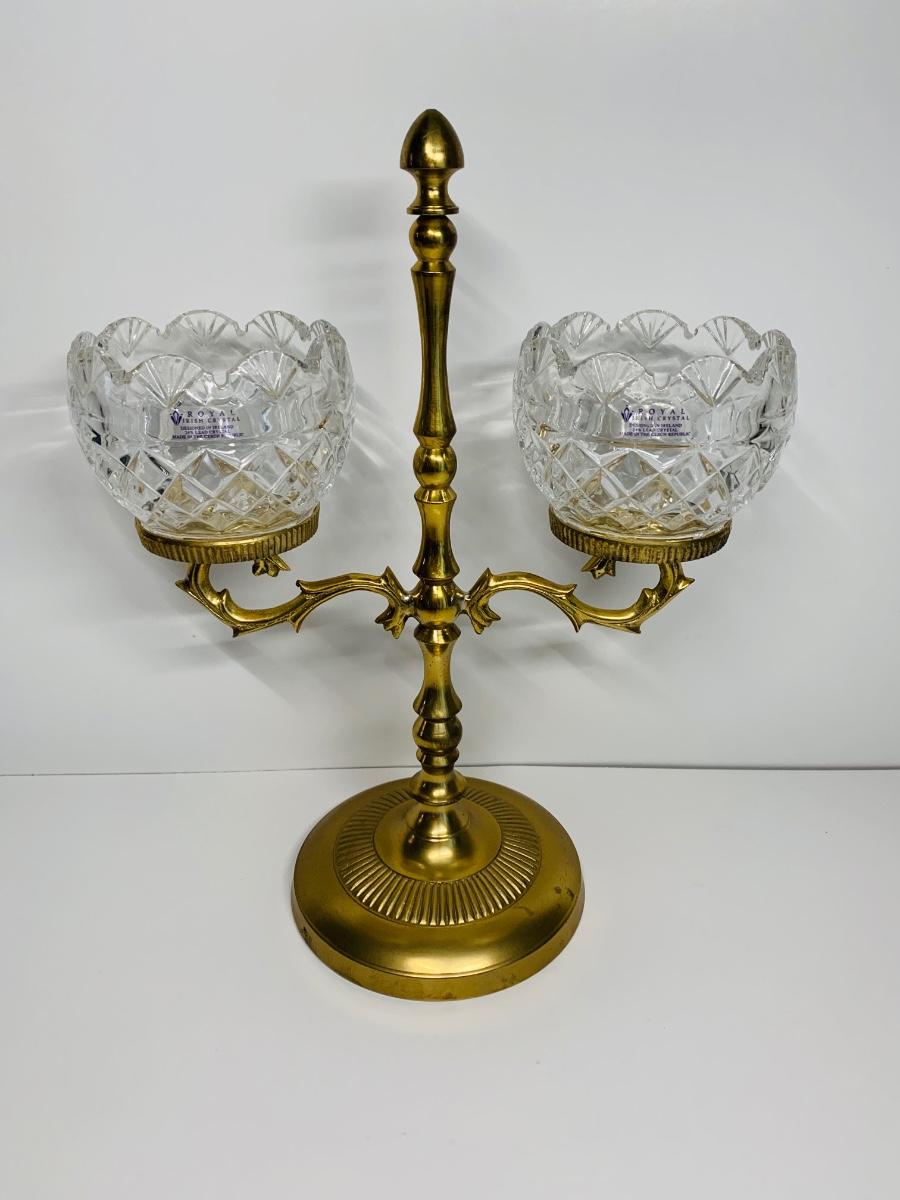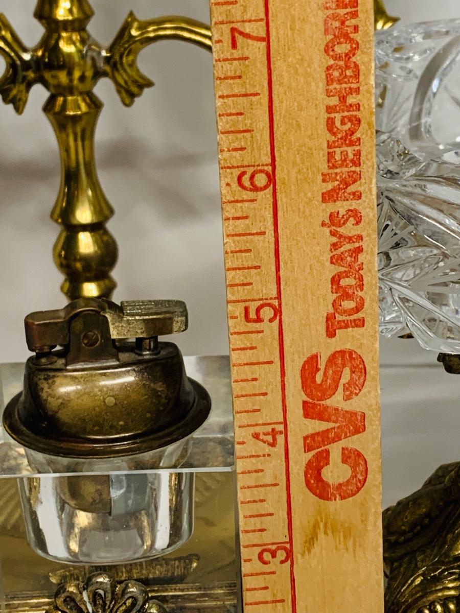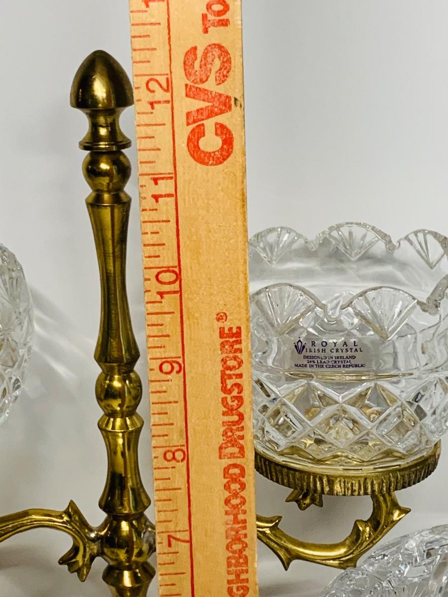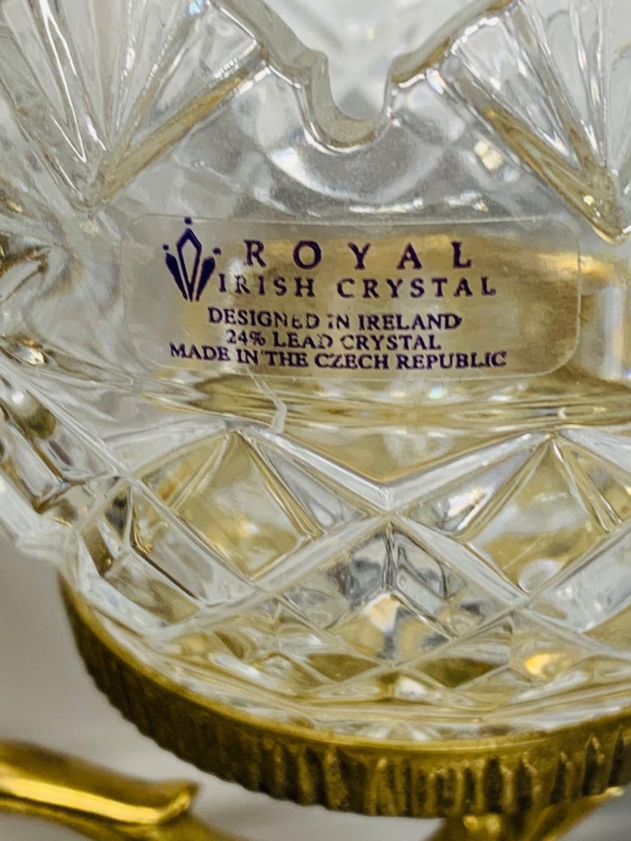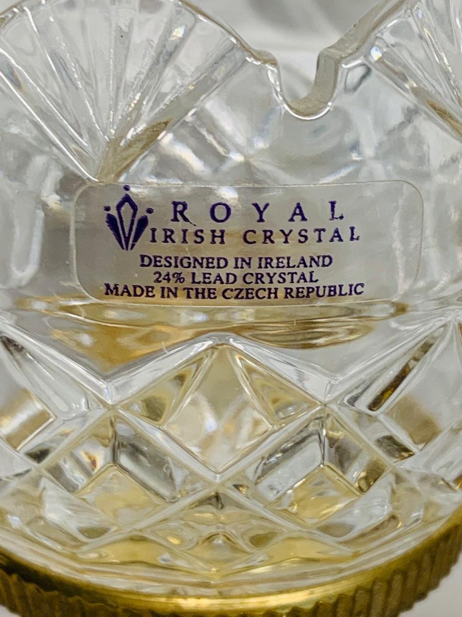 Great collection of glass & crystal including an ashtray, lighter, footed candy dish along with Royal Irish candle holders & stand. There are small flea bites on lighter bottom which are not noticeable when the lighter is in the stand.
