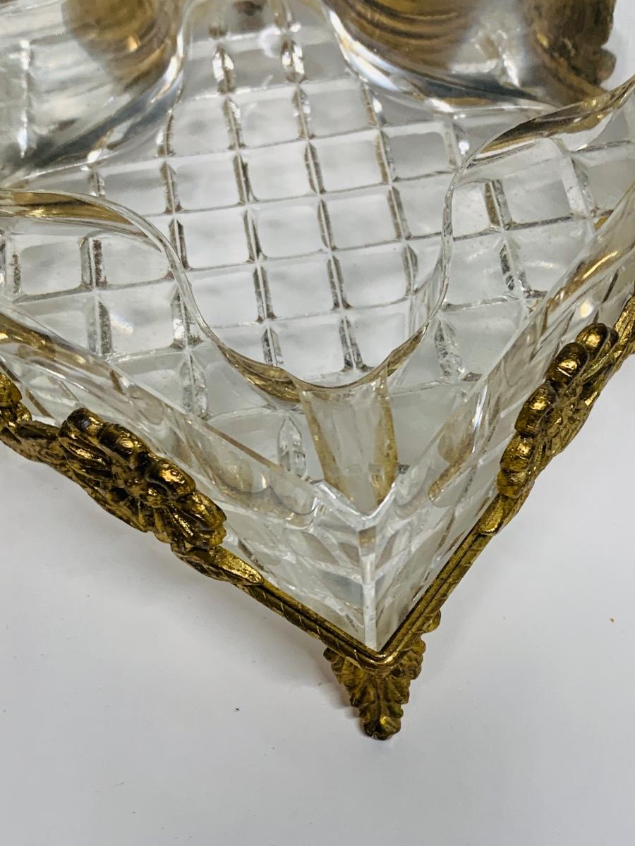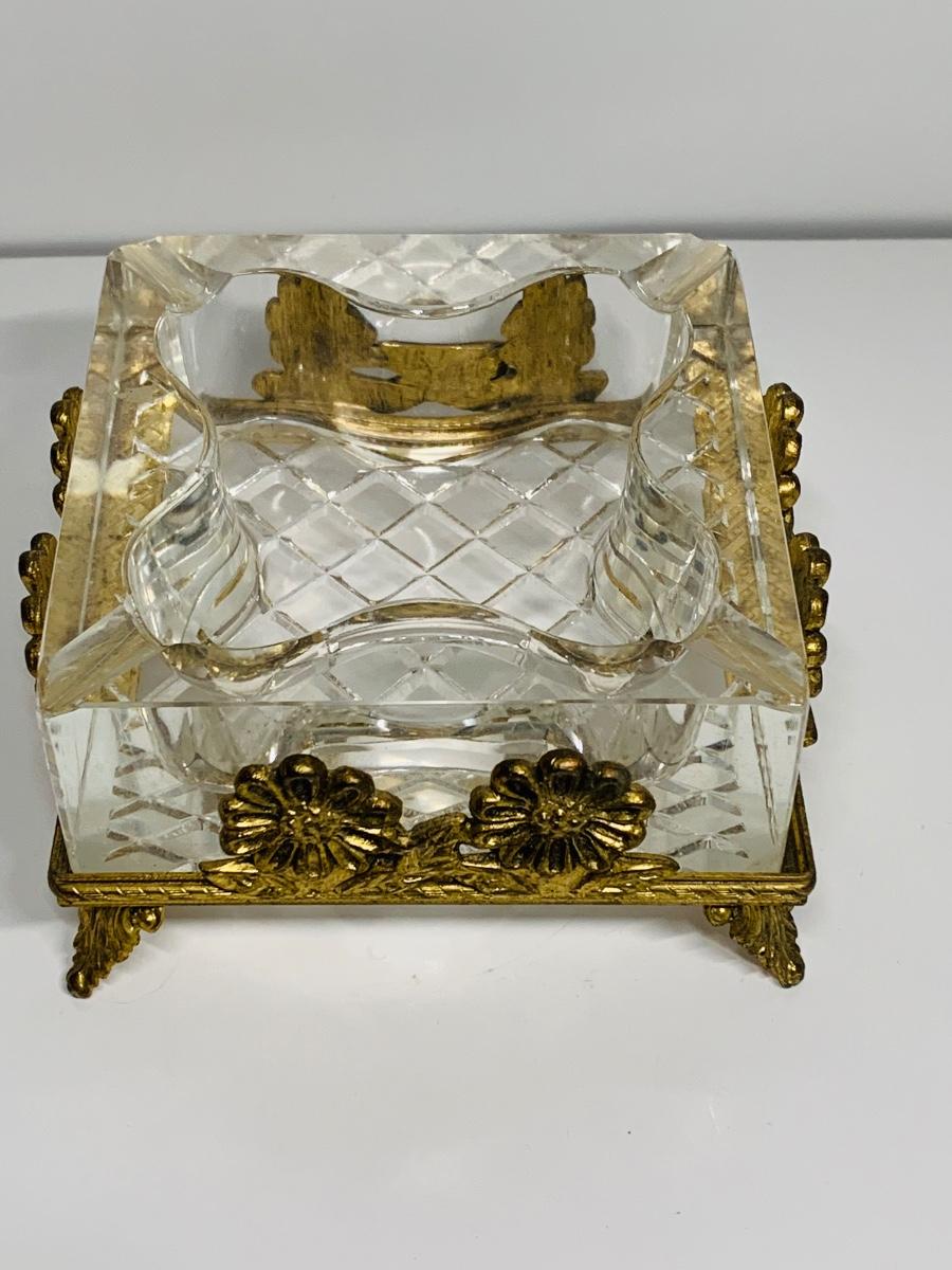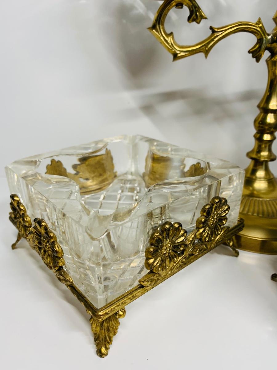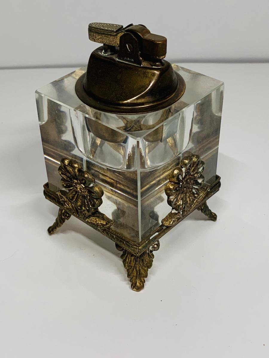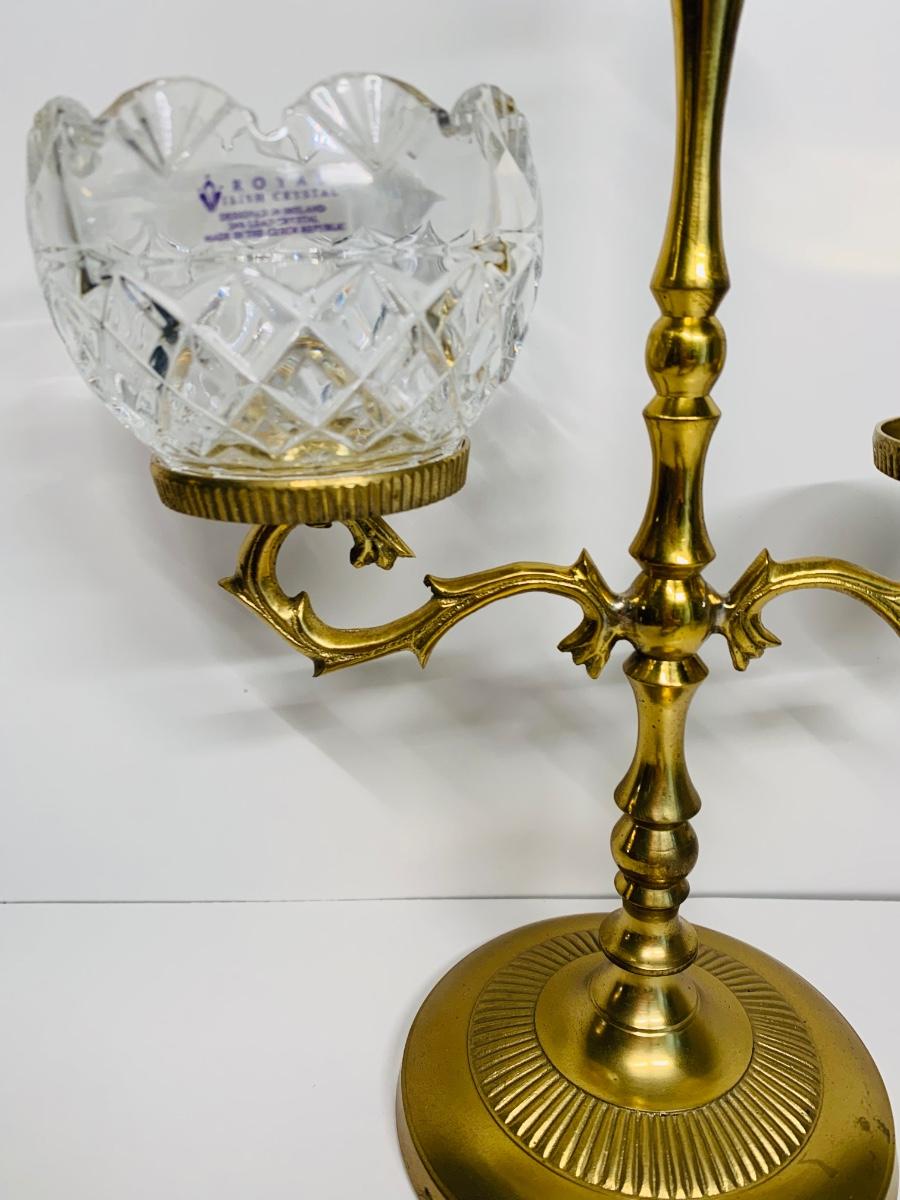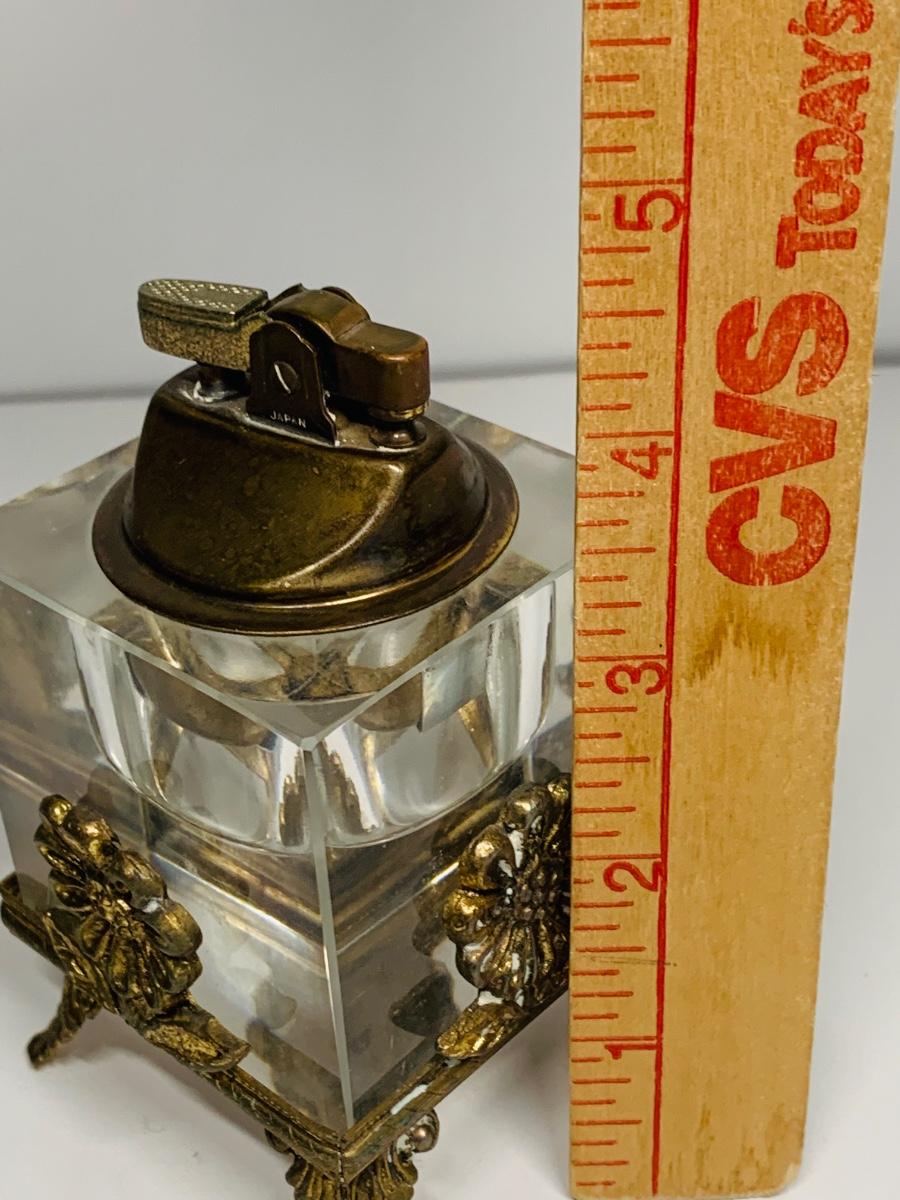 Great collection of glass & crystal including an ashtray, lighter, footed candy dish along with Royal Irish candle holders & stand. There are small flea bites on lighter bottom which are not noticeable when the lighter is in the stand.