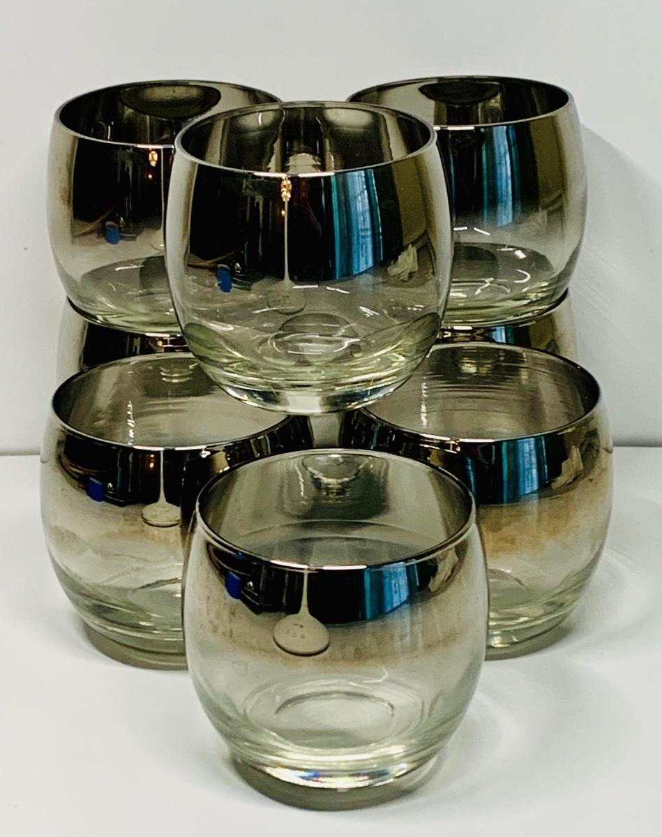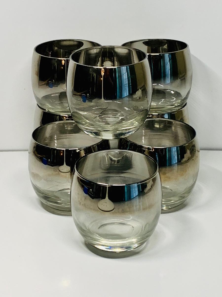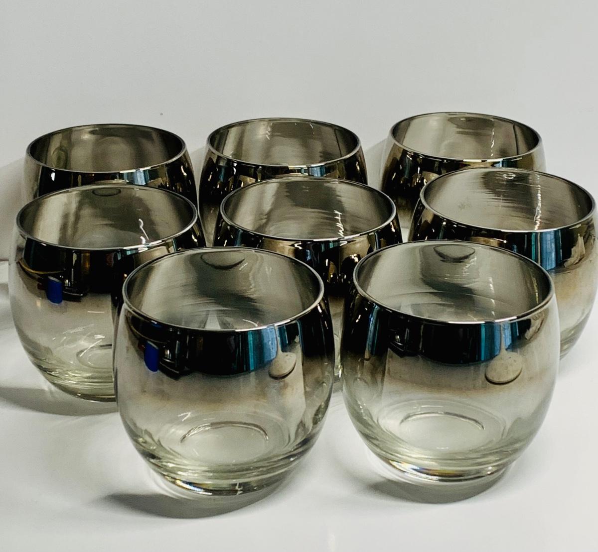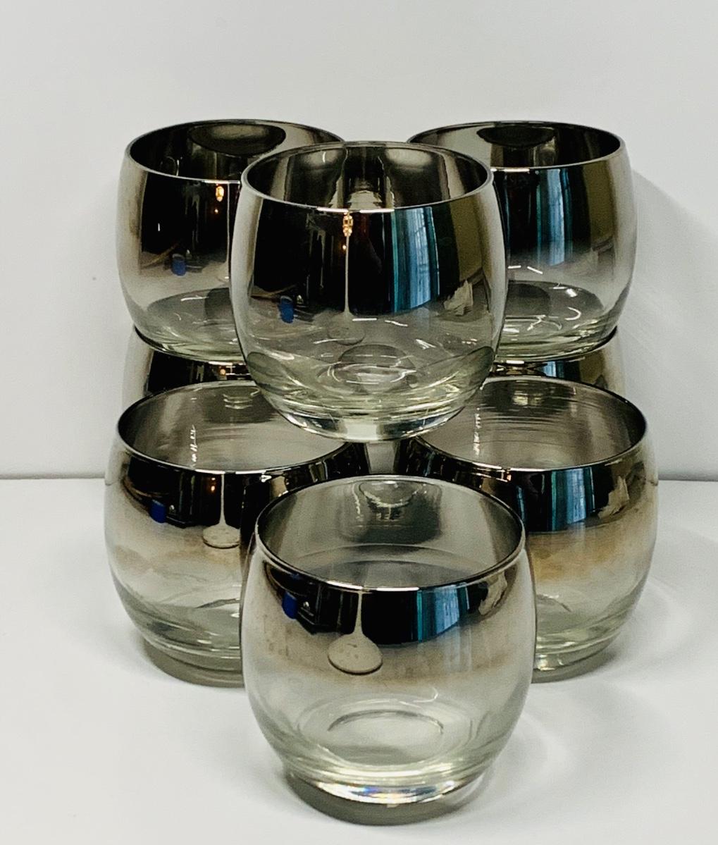 Set of 8 Vintage Silver Ombre Fade Roly Poly Old Fashioned Rocks Glasses.