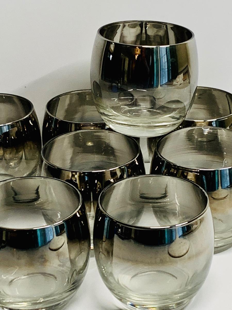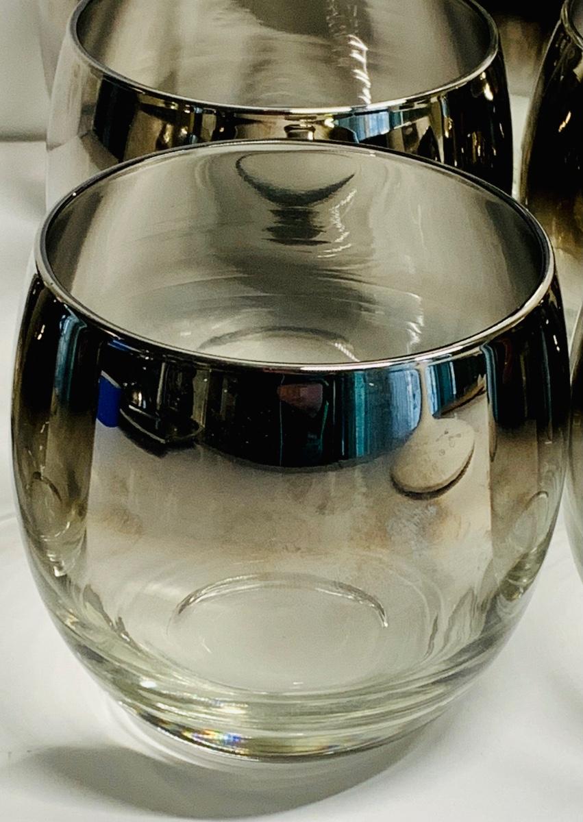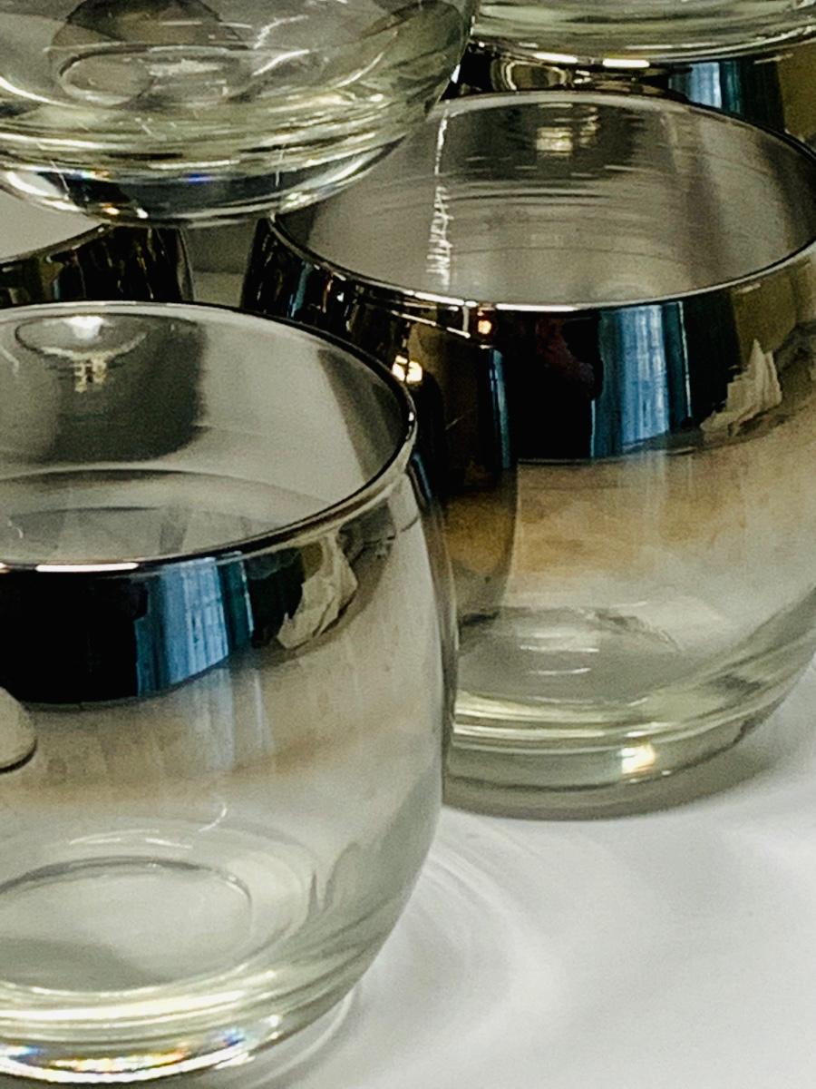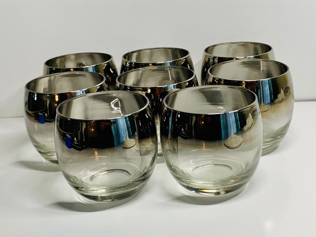 Set of 8 Vintage Silver Ombre Fade Roly Poly Old Fashioned Rocks Glasses.
