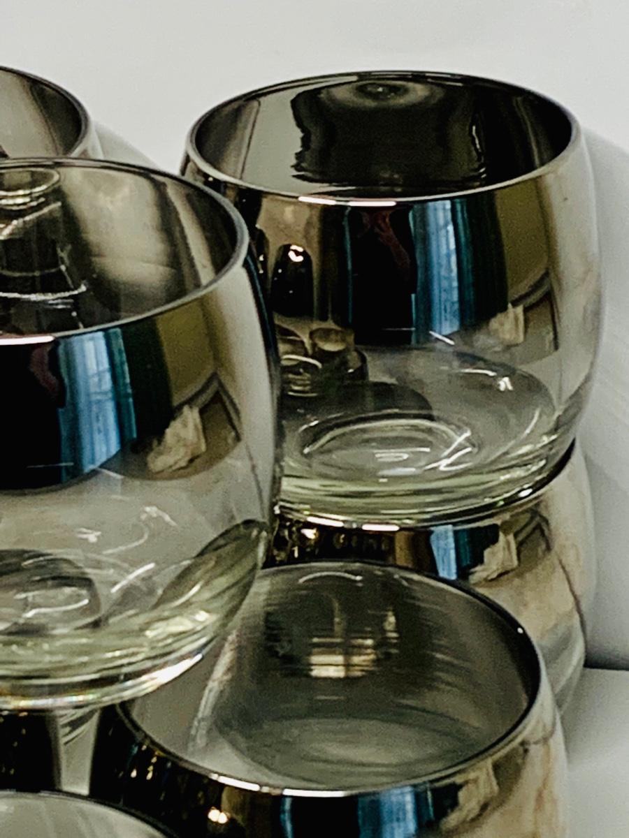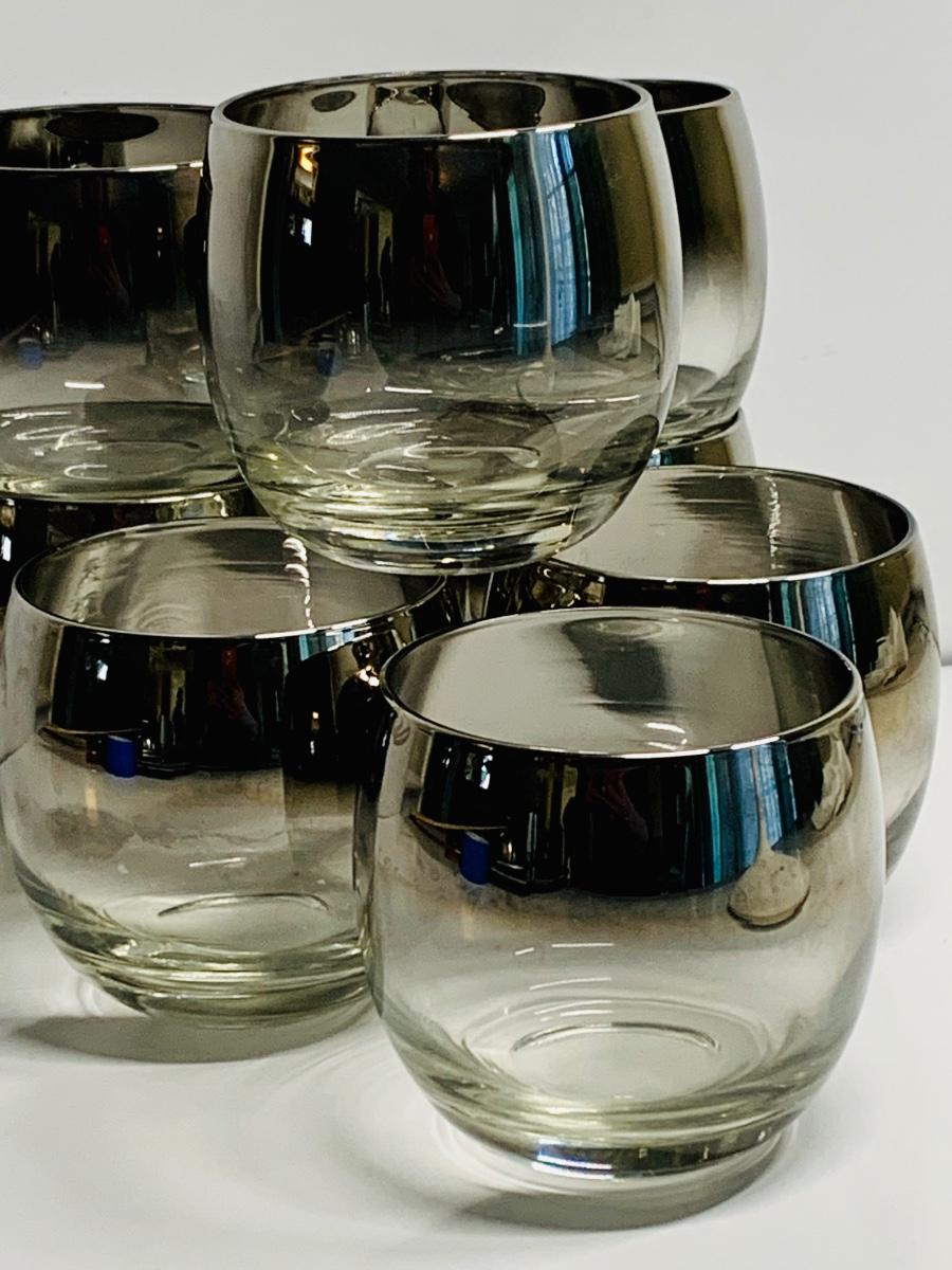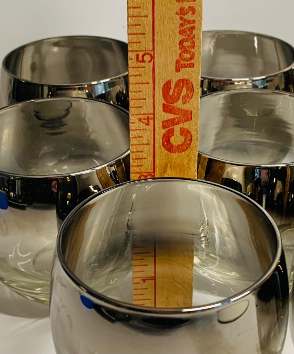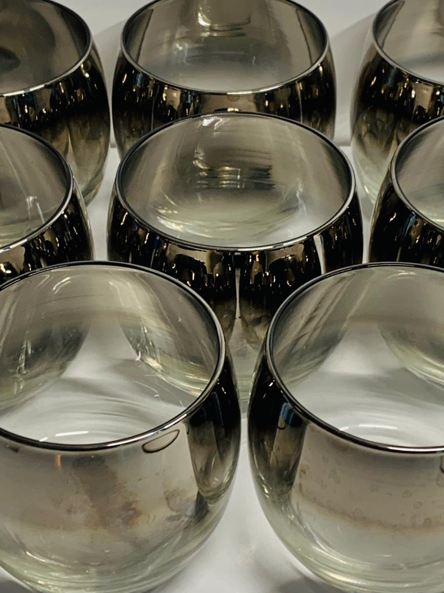 Set of 8 Vintage Silver Ombre Fade Roly Poly Old Fashioned Rocks Glasses.