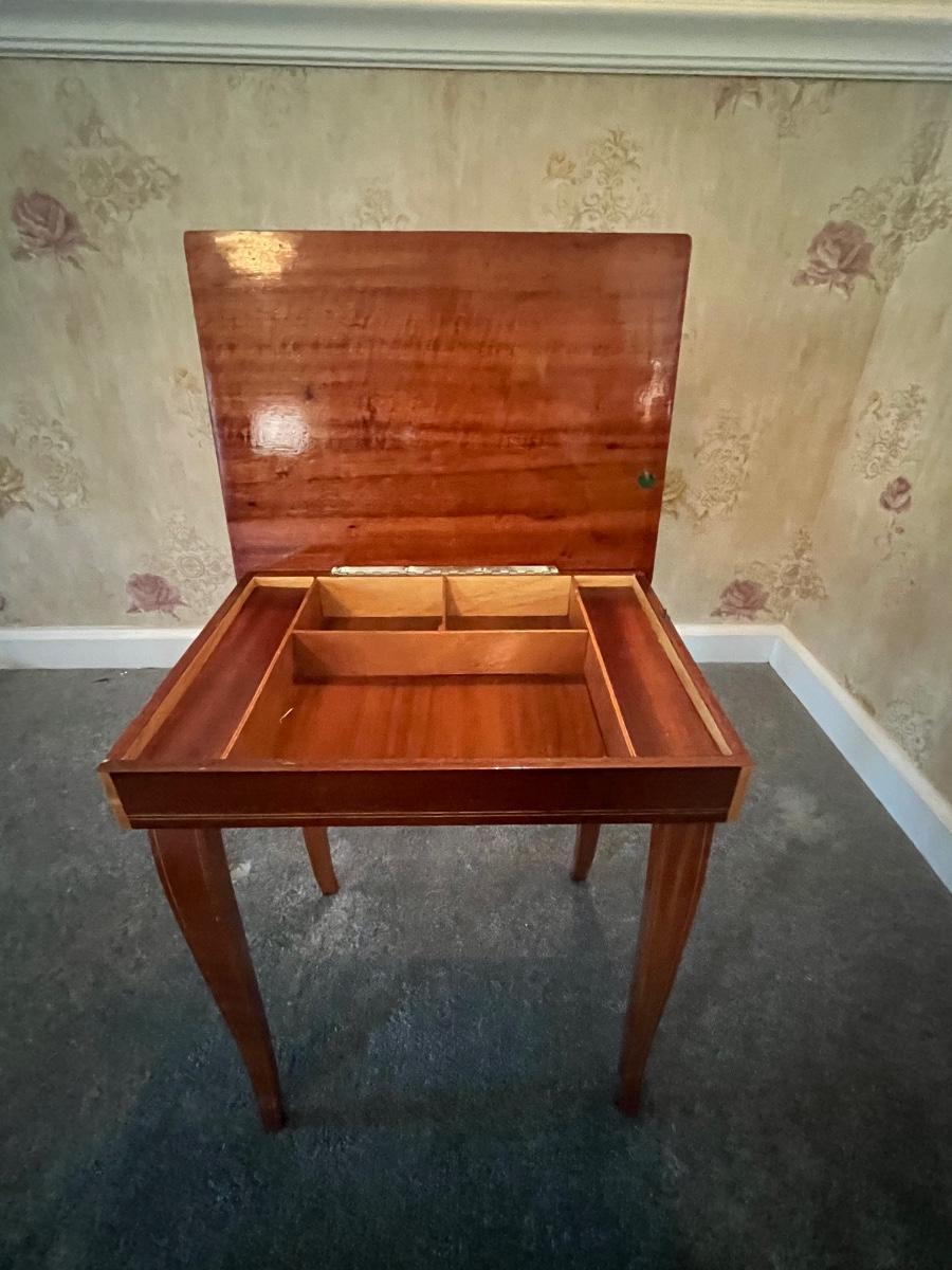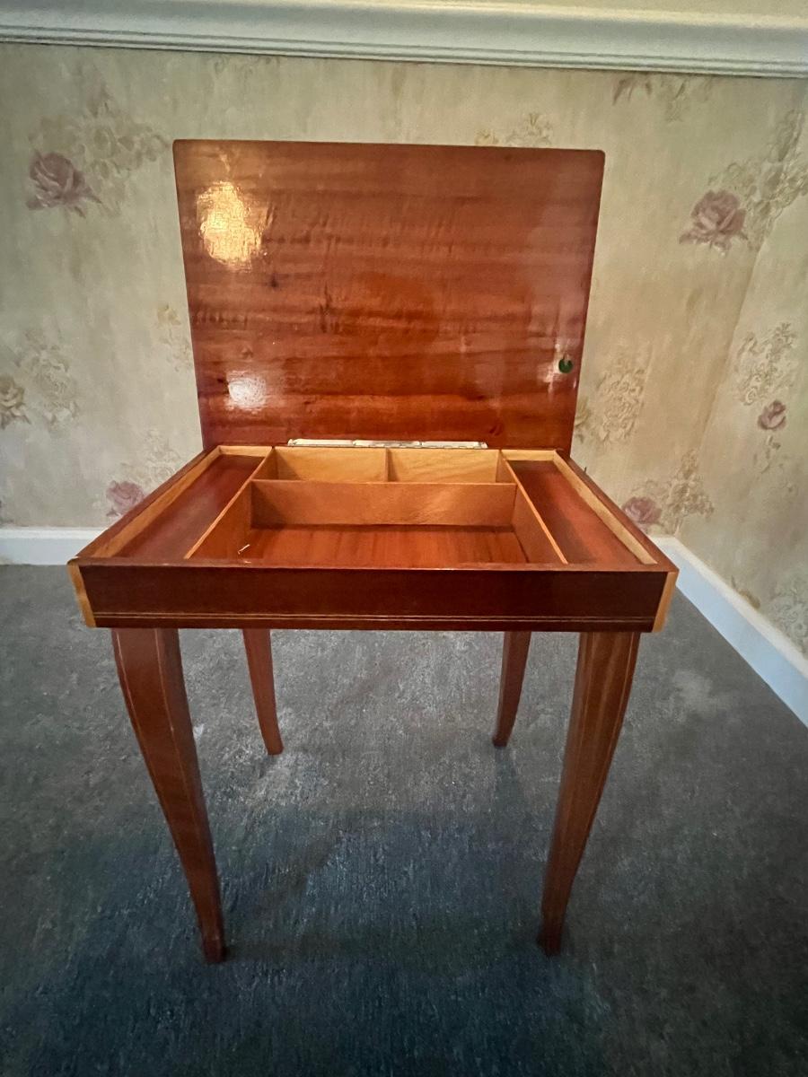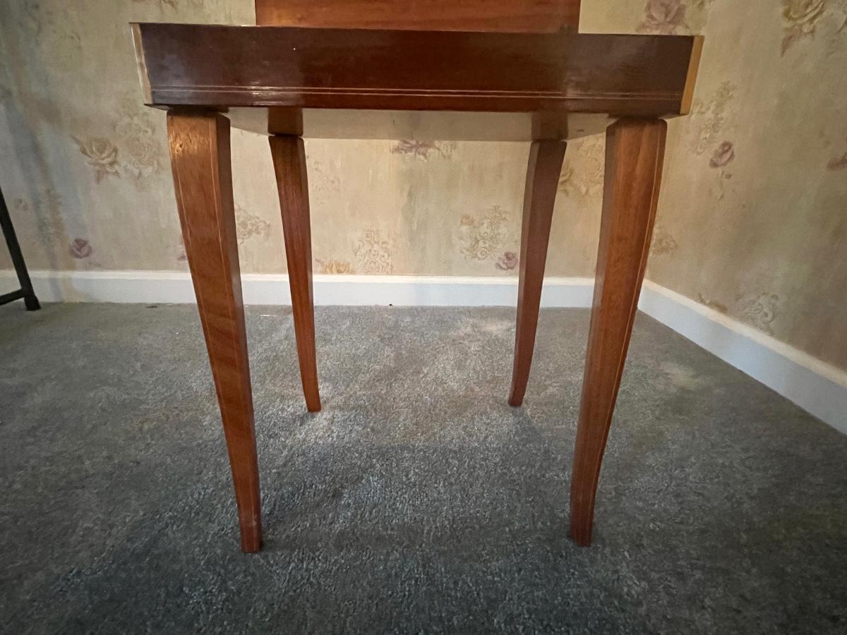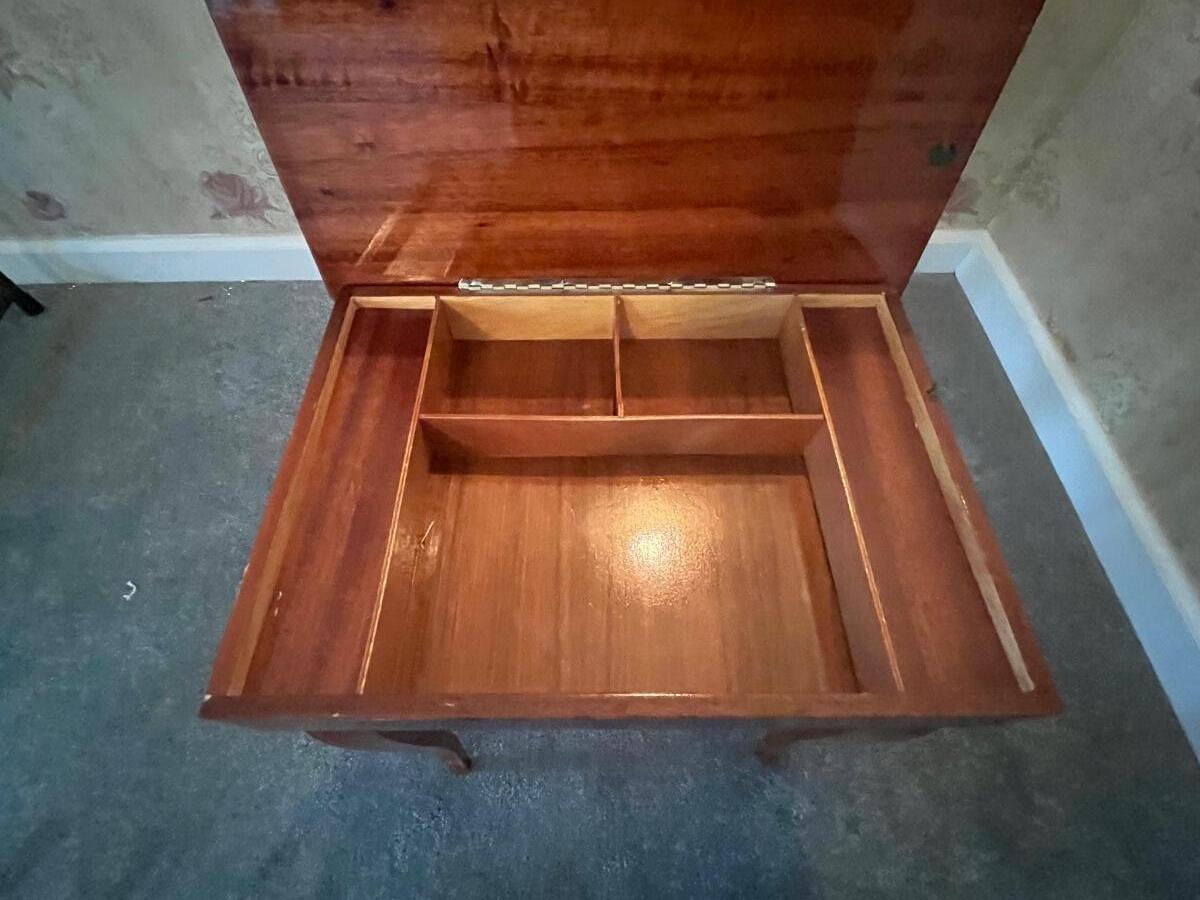 Musical jewelry box with floral inlay. This does have some minor wear to the wood as pics show. Please see all pictures as they are the best representation of the items. The pictures show condition, measurements if taken, and what is included in the lot. Due to the large amount that we photograph and the time frame, we are not always able to take measurements. All items unless noted, are pre-owned and have been used. If you purchased furniture, you must bring help. We do not allow one person to carry large furniture out on their own. Bring help, tools and a truck for the safety of our client’s homes, and your personal safety. Any damages that result to the property including walls, and floors due to moving of the furniture will be charged to the buyer. Company policy. Thank you.