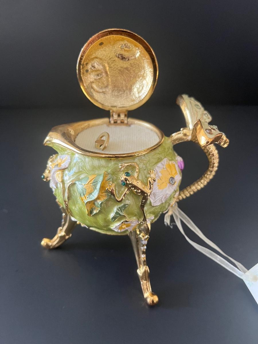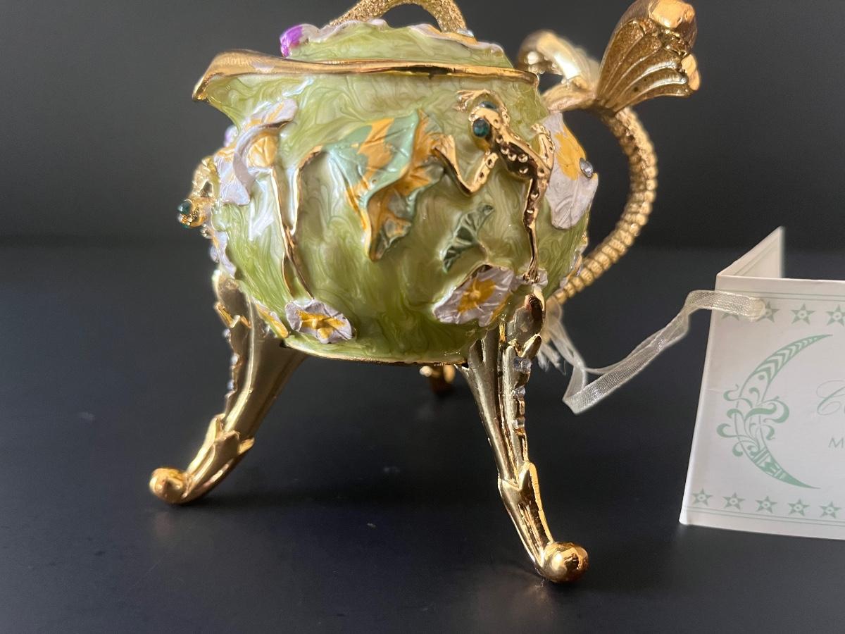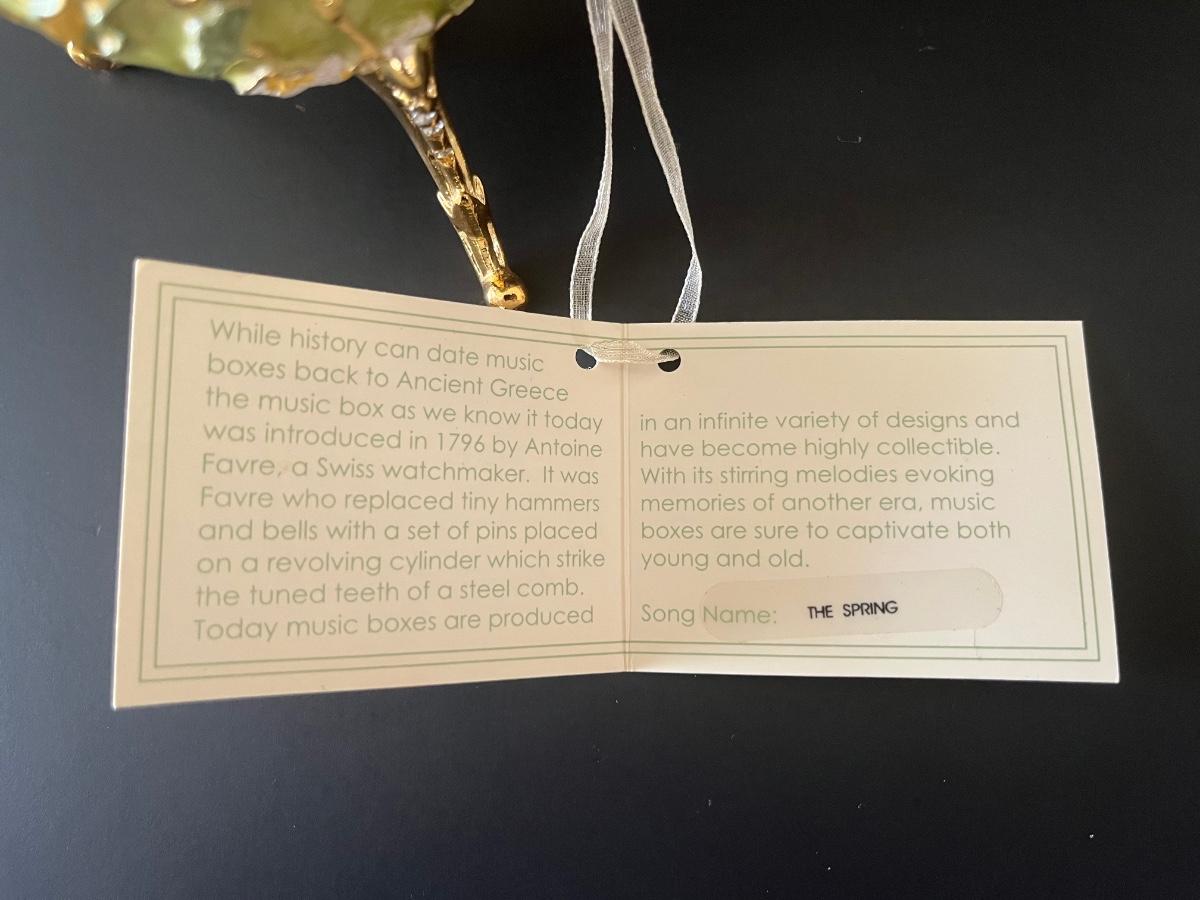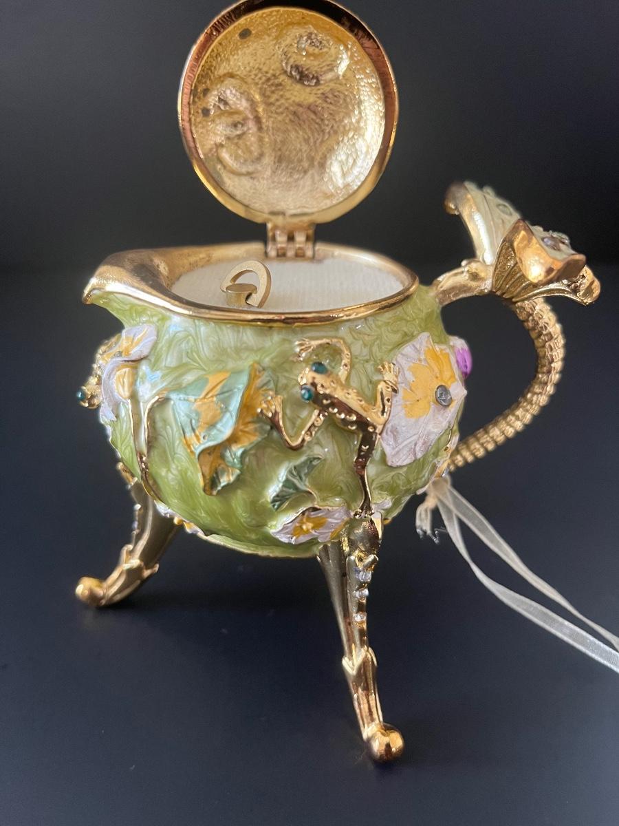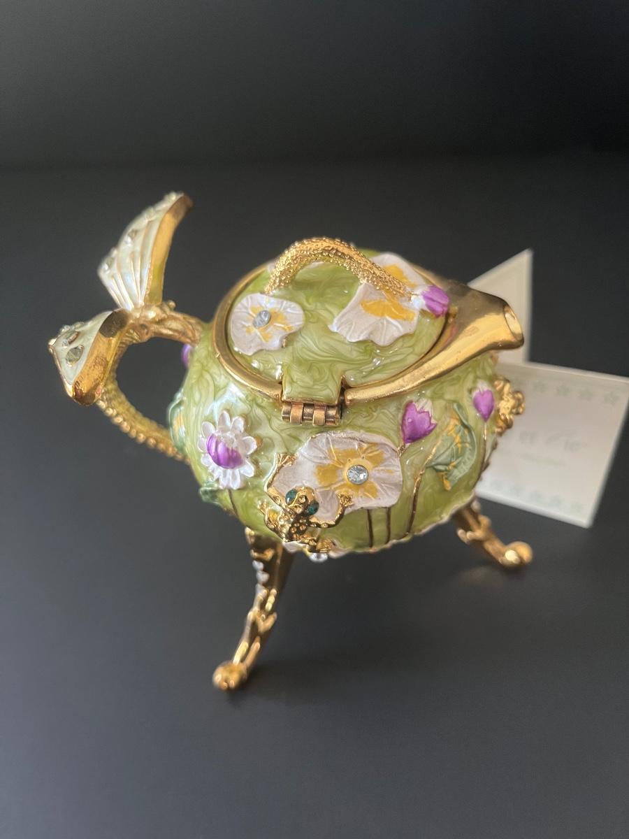 Vintage teapot music box, plays "the spring". Please see all pictures as they are the best representation of the items. The pictures show condition, measurements if taken, and what is included in the lot. Due to the large amount that we photograph and the time frame, we are not always able to take measurements. All items unless noted, are pre-owned and have been used. If you purchased furniture, you must bring help. We do not allow one person to carry large furniture out on their own. Bring help, tools and a truck for the safety of our client’s homes, and your personal safety. Any damages that result to the property including walls, and floors due to moving of the furniture will be charged to the buyer. Company policy. Thank you.