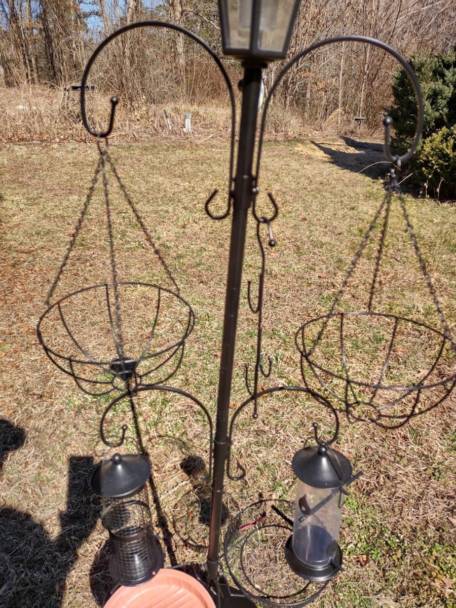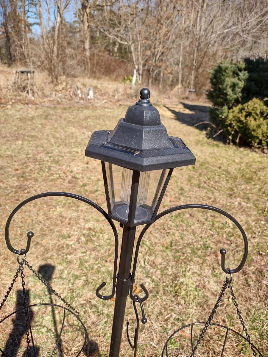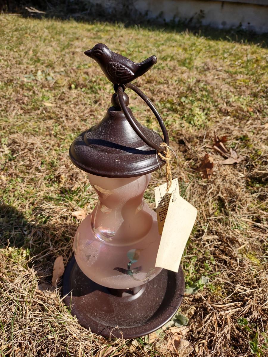 Solar Powered birdfeeder/planter stand 48" along with a blown glass bird feeder and more.