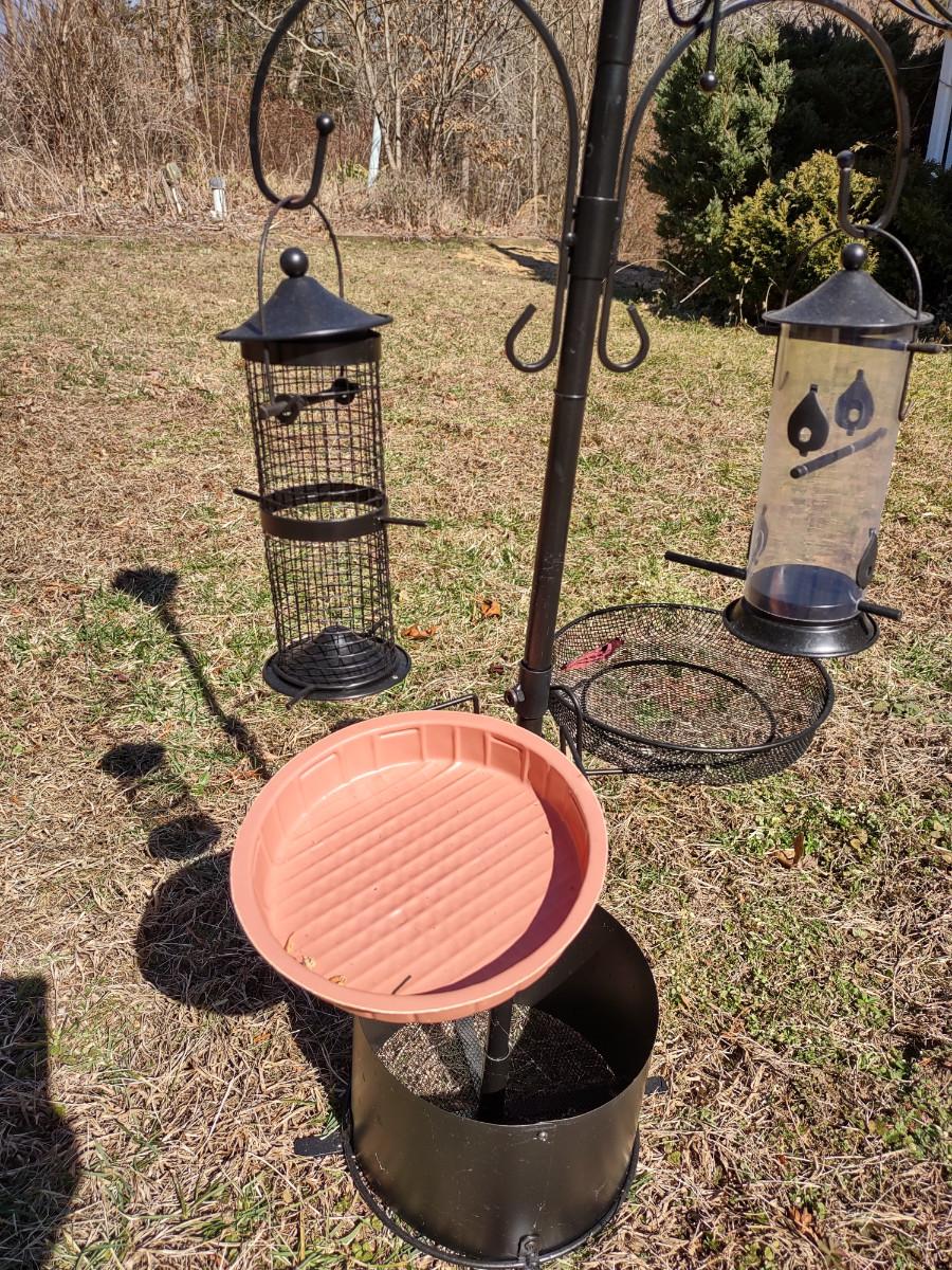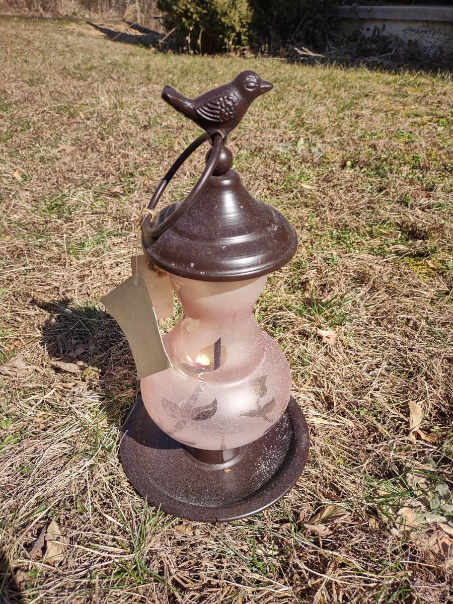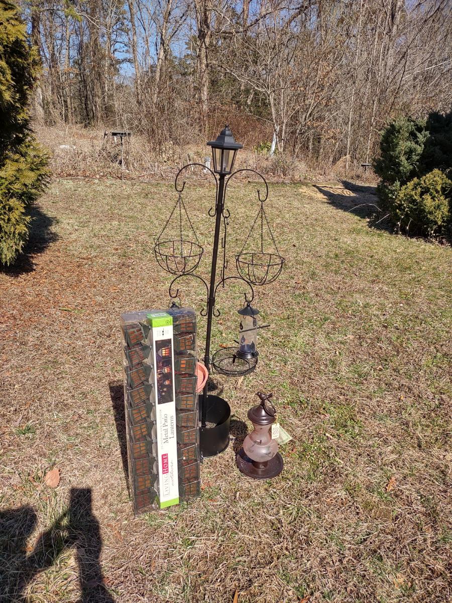 Solar Powered birdfeeder/planter stand 48" along with a blown glass bird feeder and more.